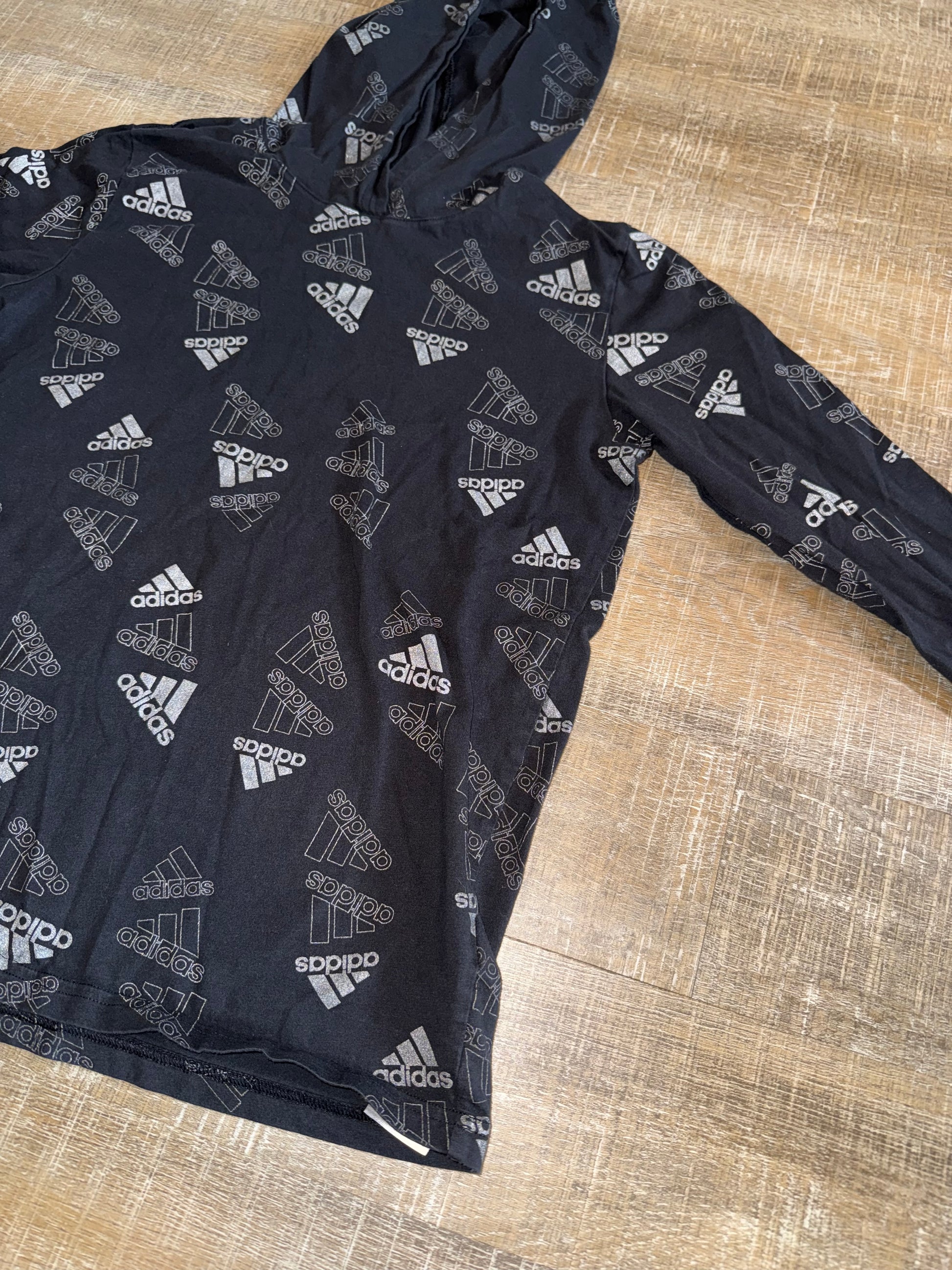 adidas (Kids XL) Black//Grey Logo Pattern Long Sleeve with Hoodie