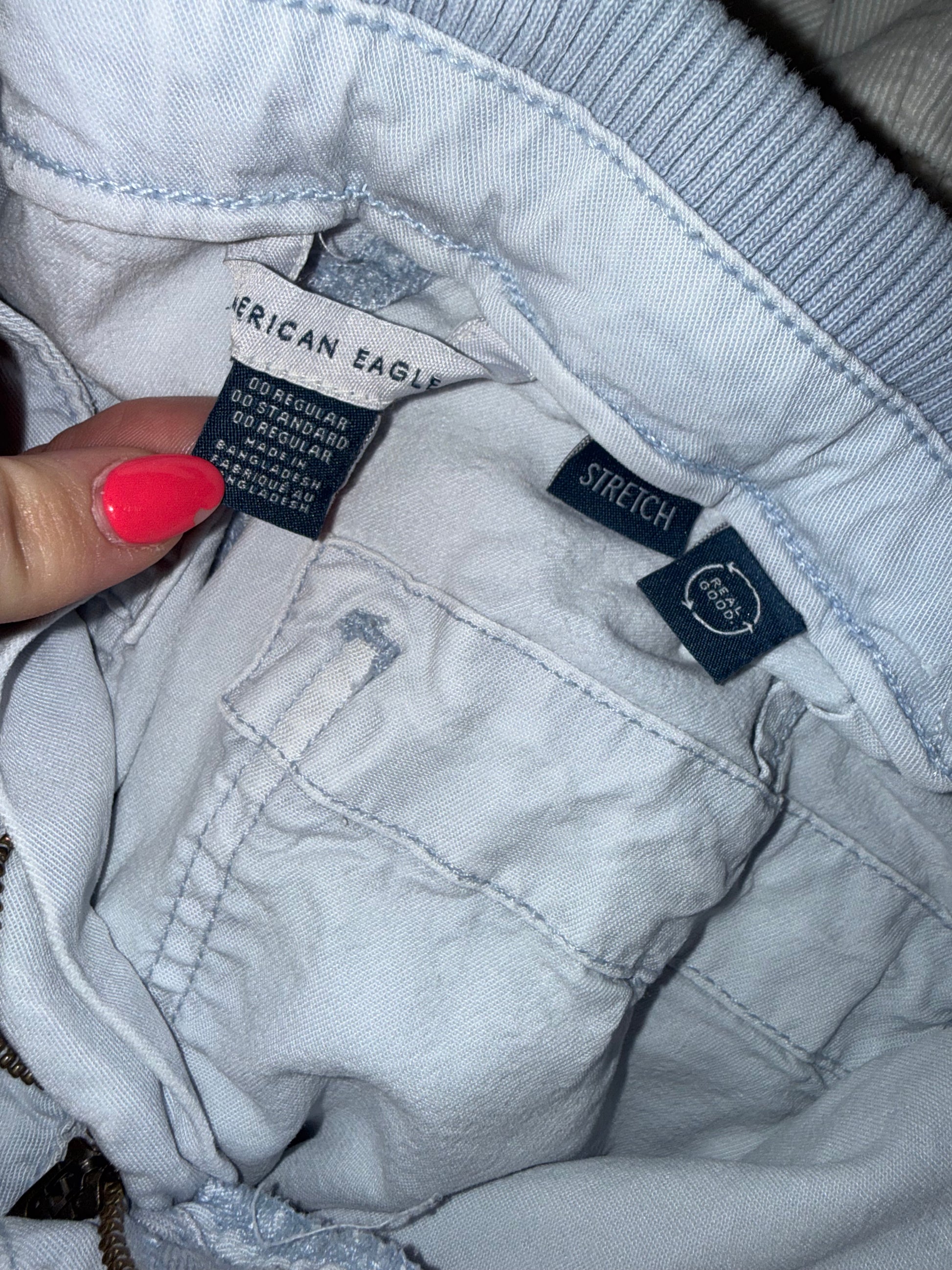 American Eagle (00) Light Blue Wide-Leg Cargo Pants with Stretch