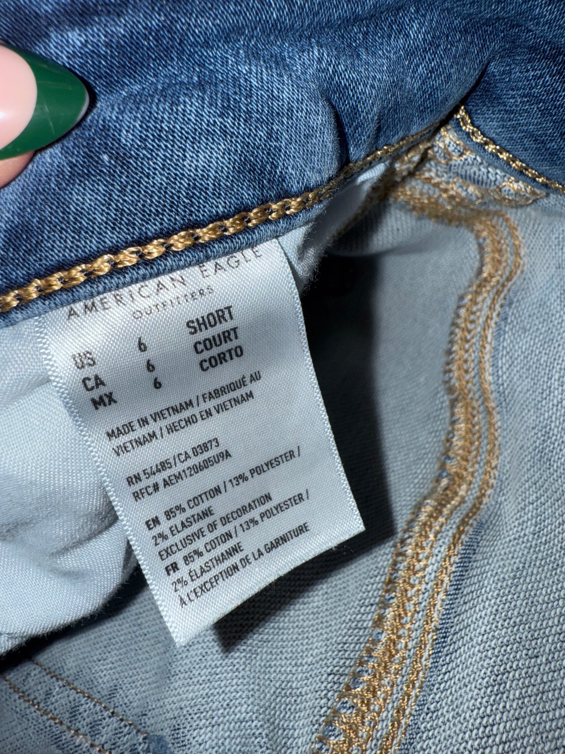 American Eagle (6 Short) Distressed Curvy Hi-Rise Jegging Denim Jeans w Stretch