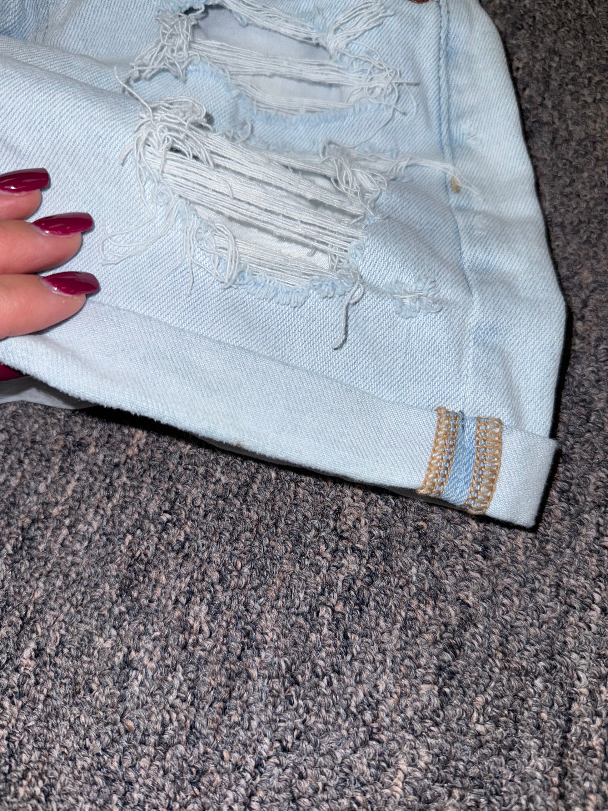 American Eagle (0) Light Wash Distressed Denim Mom Jean Shorts