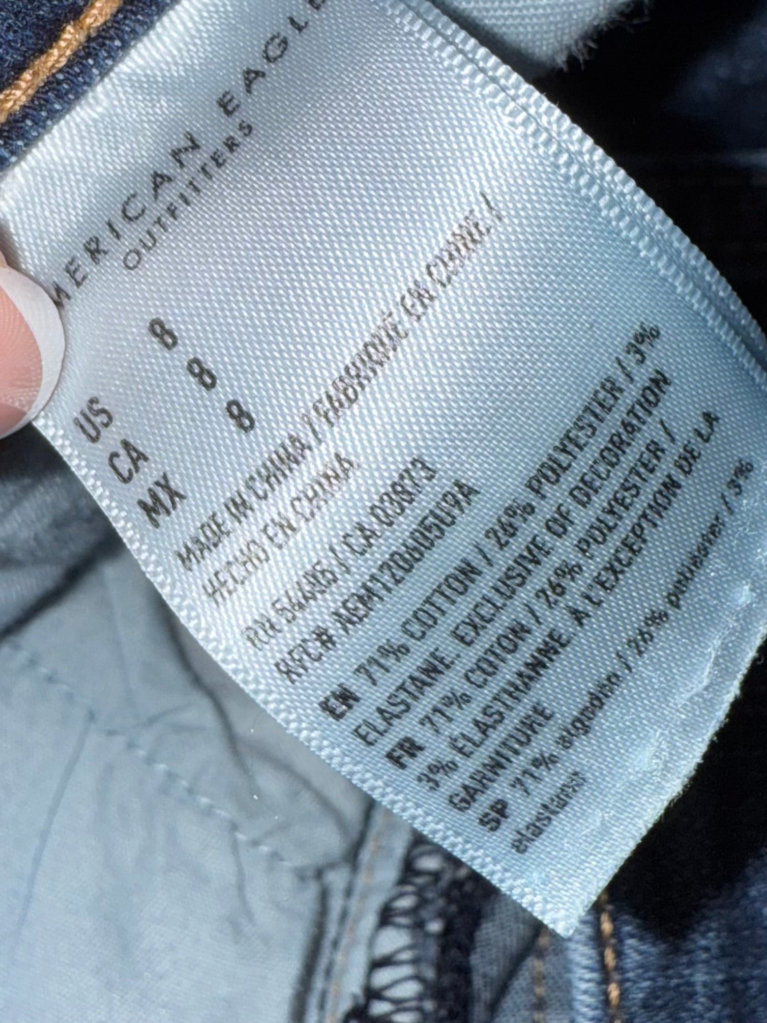 American Eagle (8) Distressed Denim Hi Rise Shortie Jean Shorts with Stretch