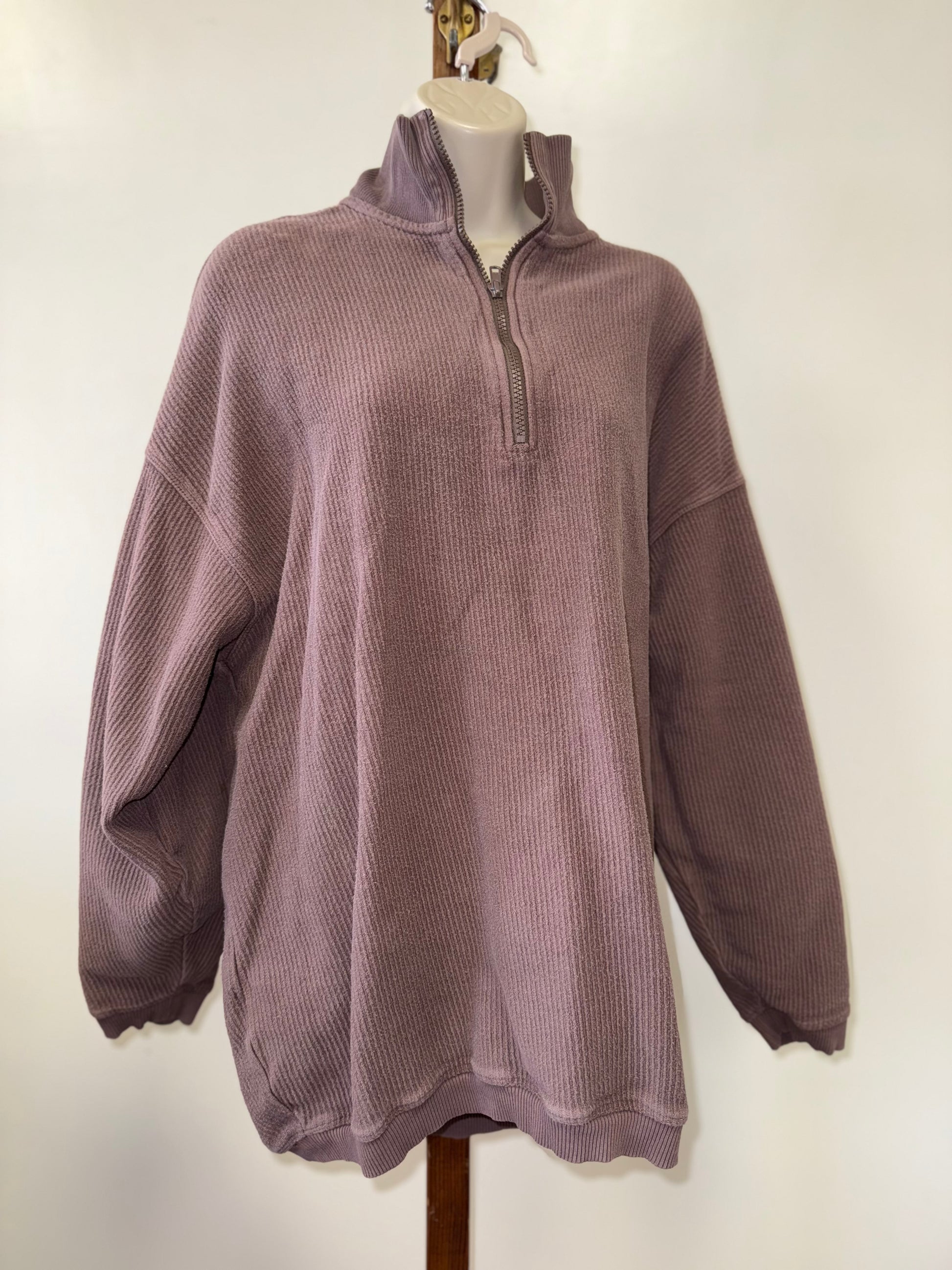 aerie (Medium) Brown Oversized Ribbed 3/4 Zip Up Pullover Sweatshirt