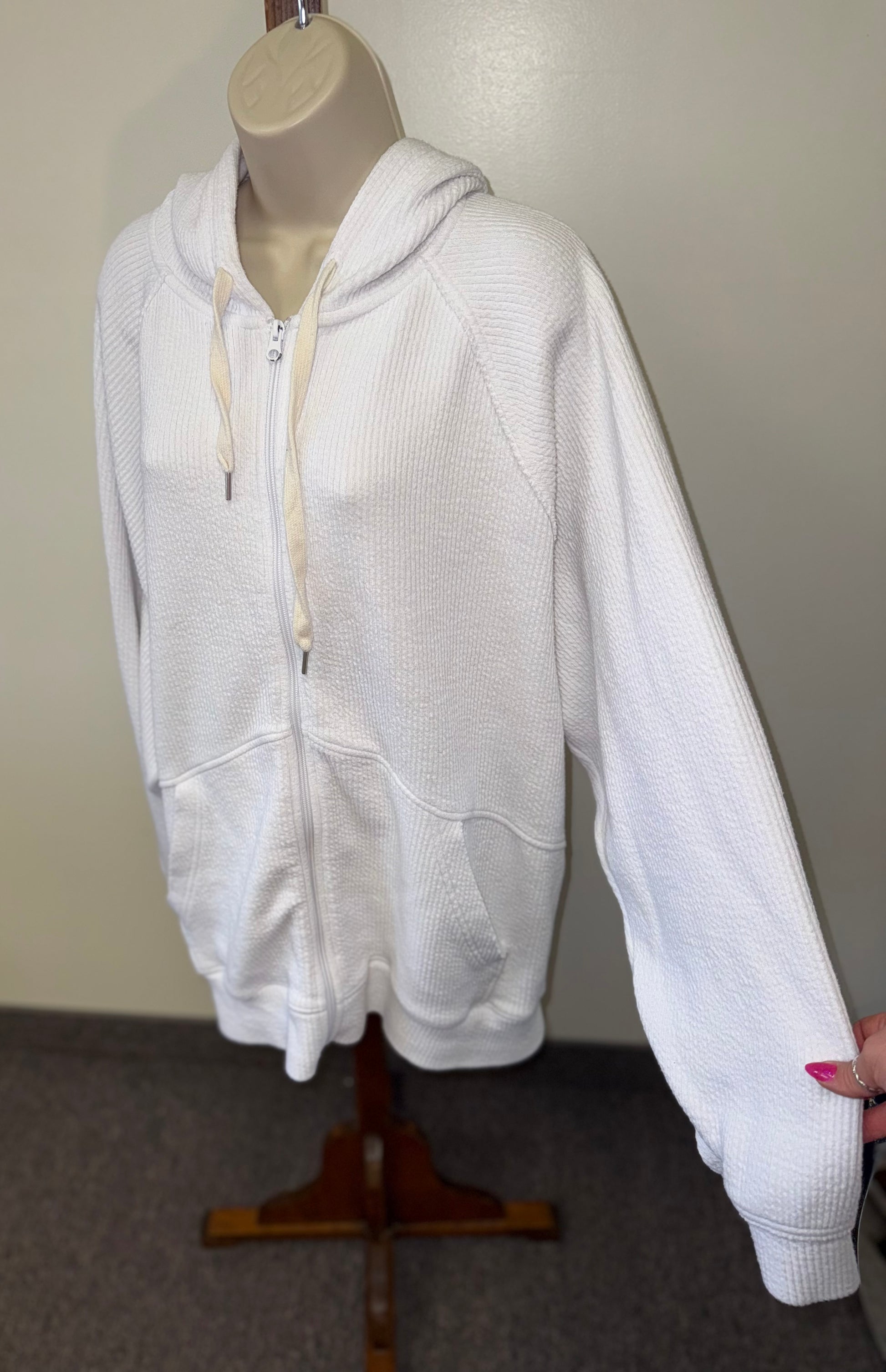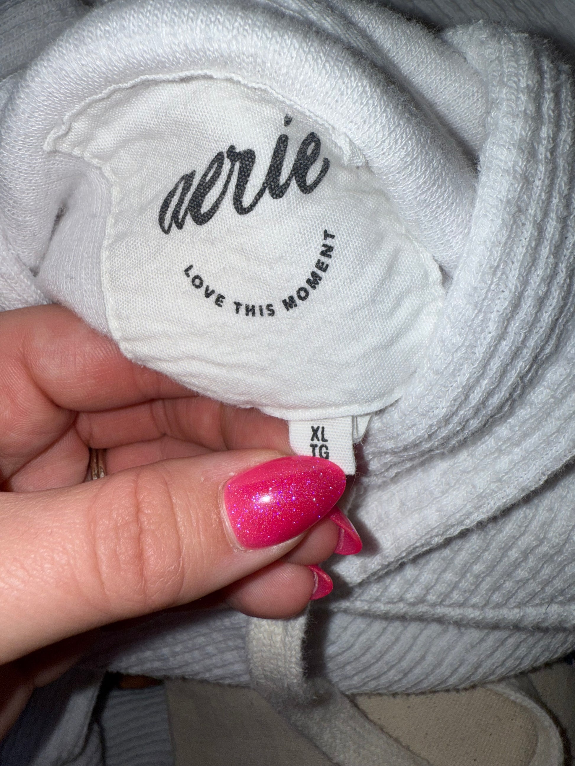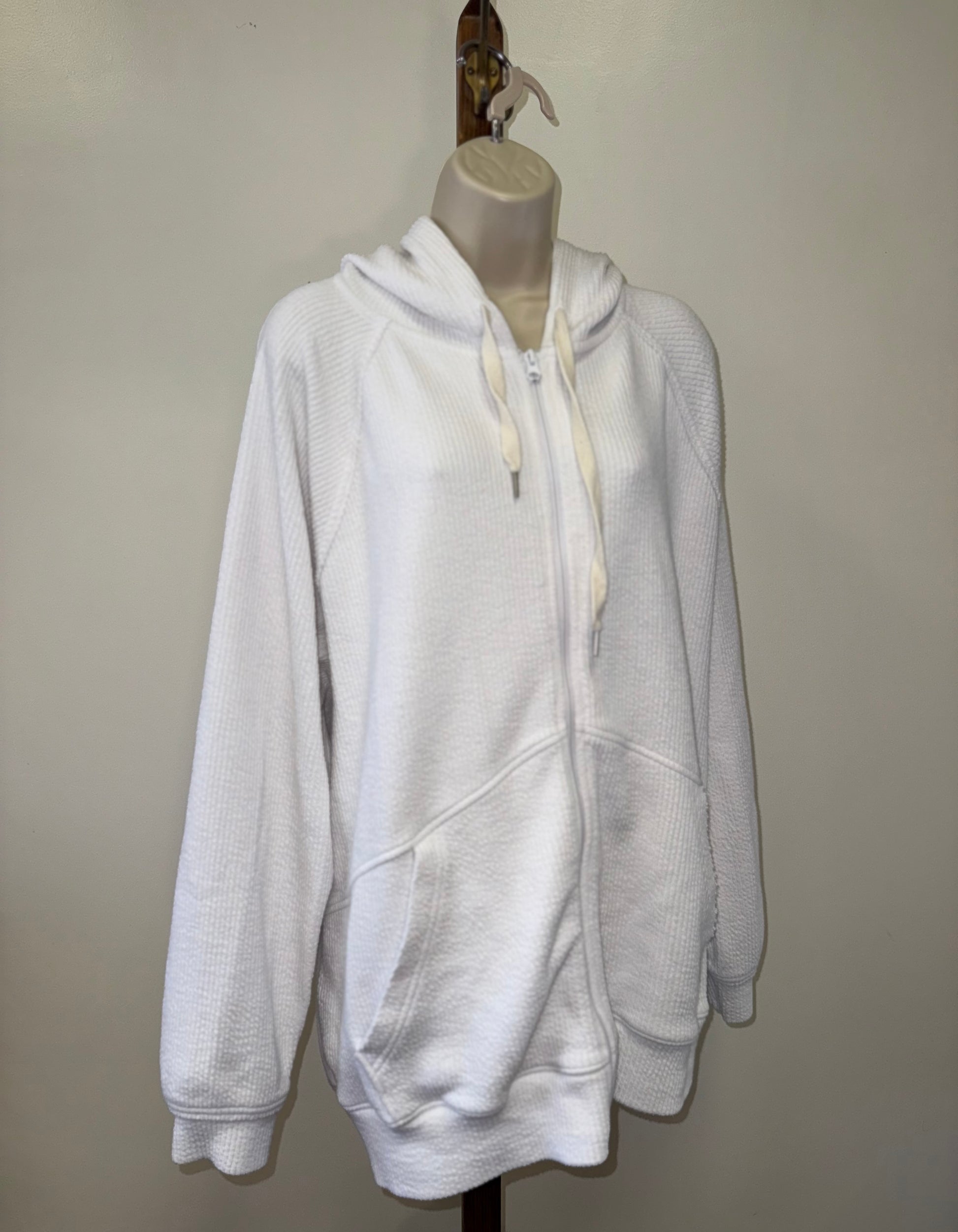 Aerie (XL) White Waffle Knit Full Zip Up Jacket