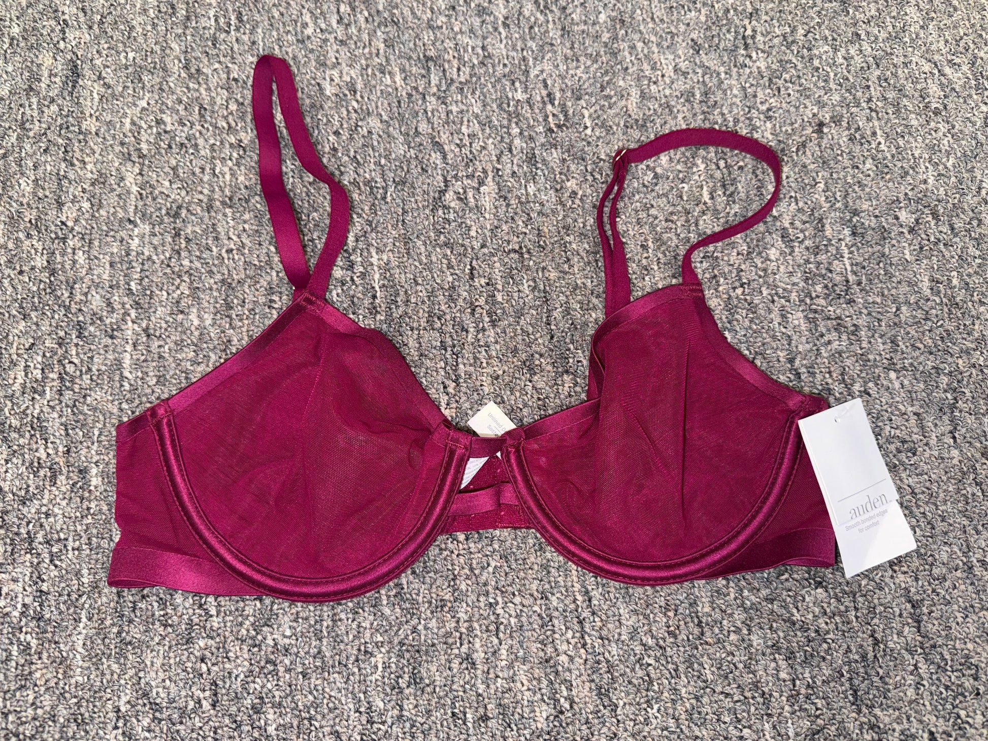 NWT Auden (32B) Brand New Maroon Sheer Demi Bra