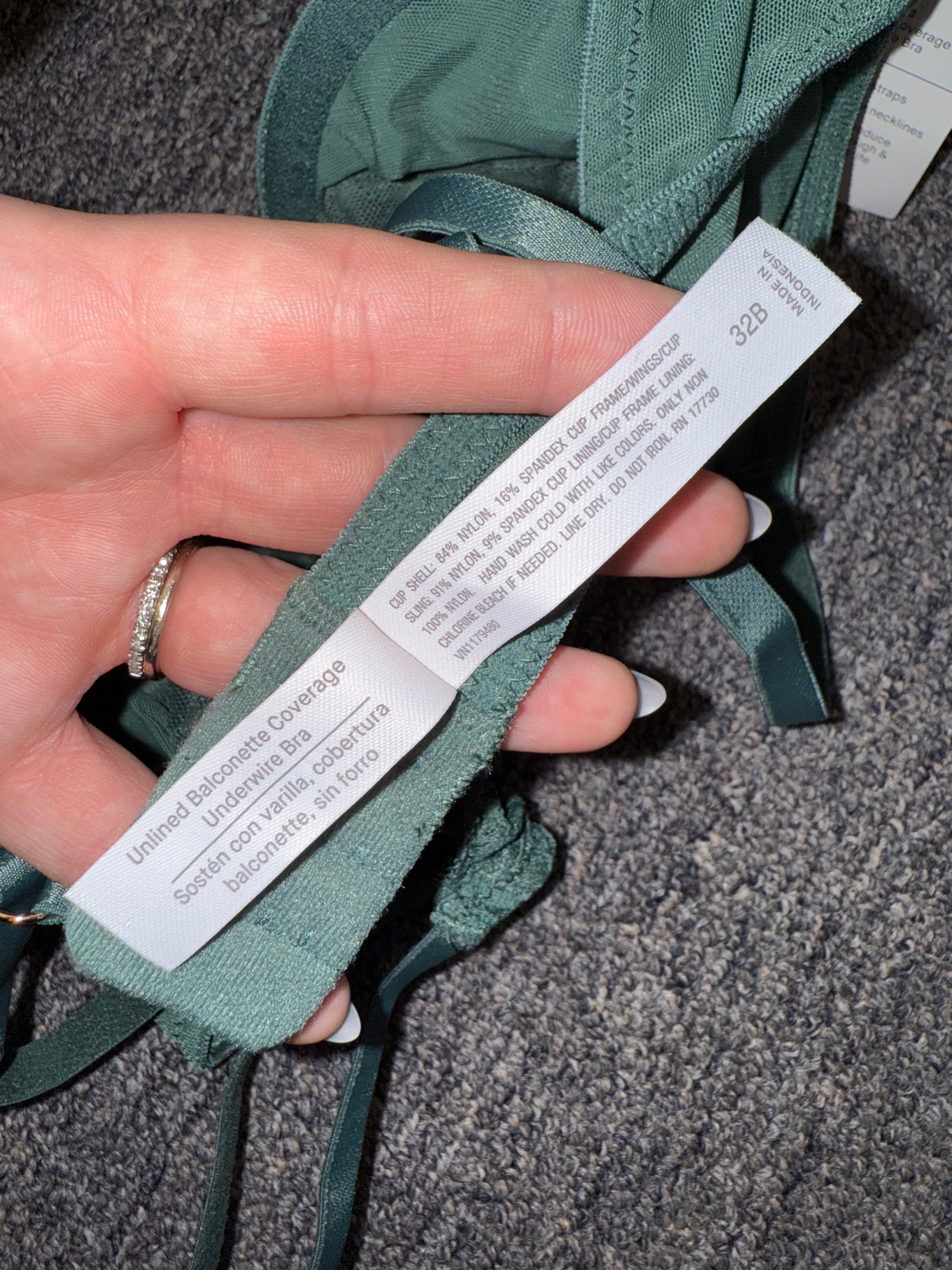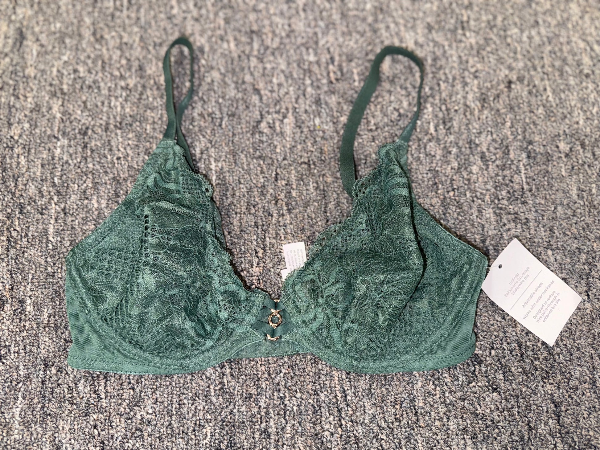 NWT Auden (32B) Brand New Green Lace//Sheer Balconette Bra