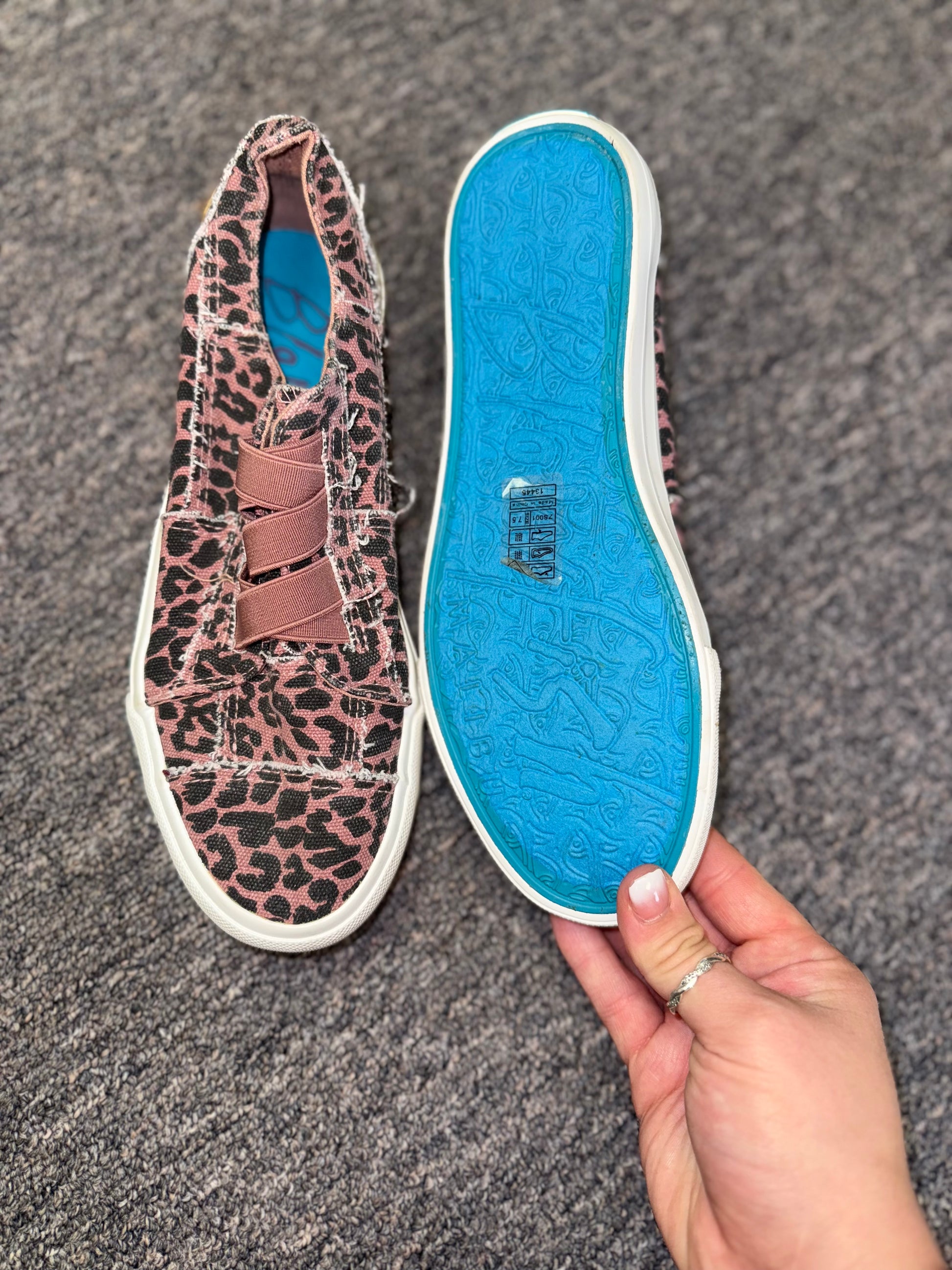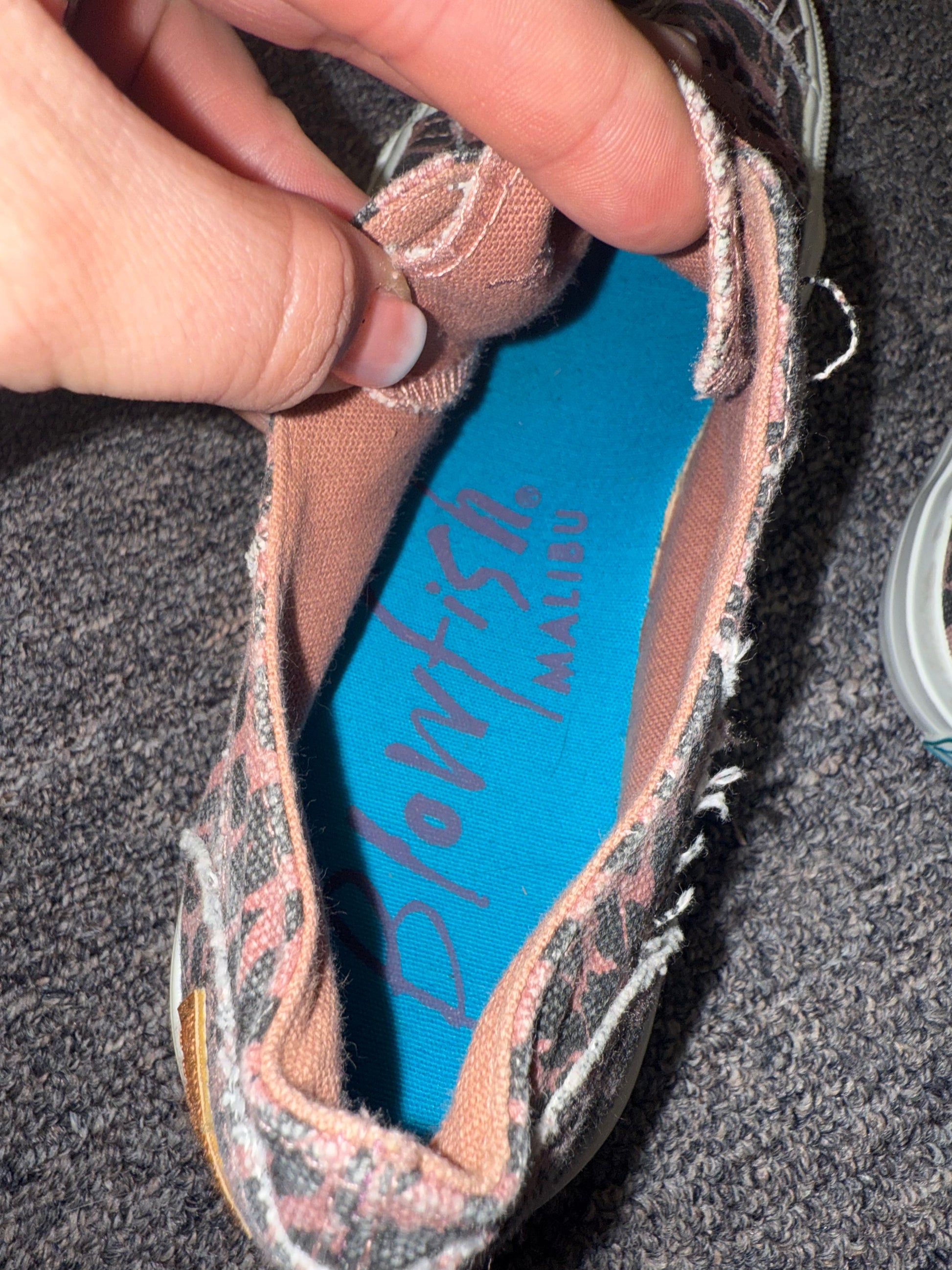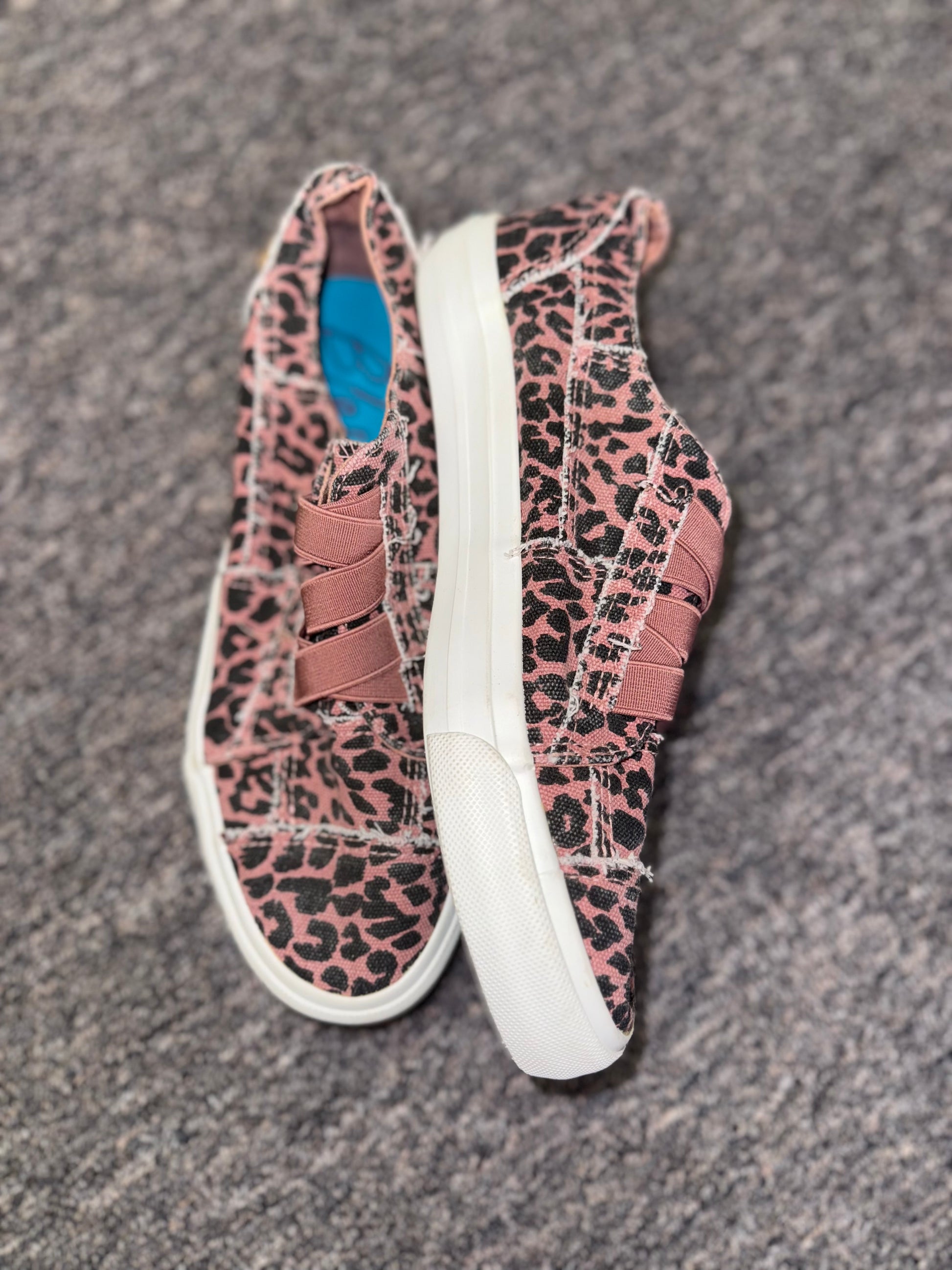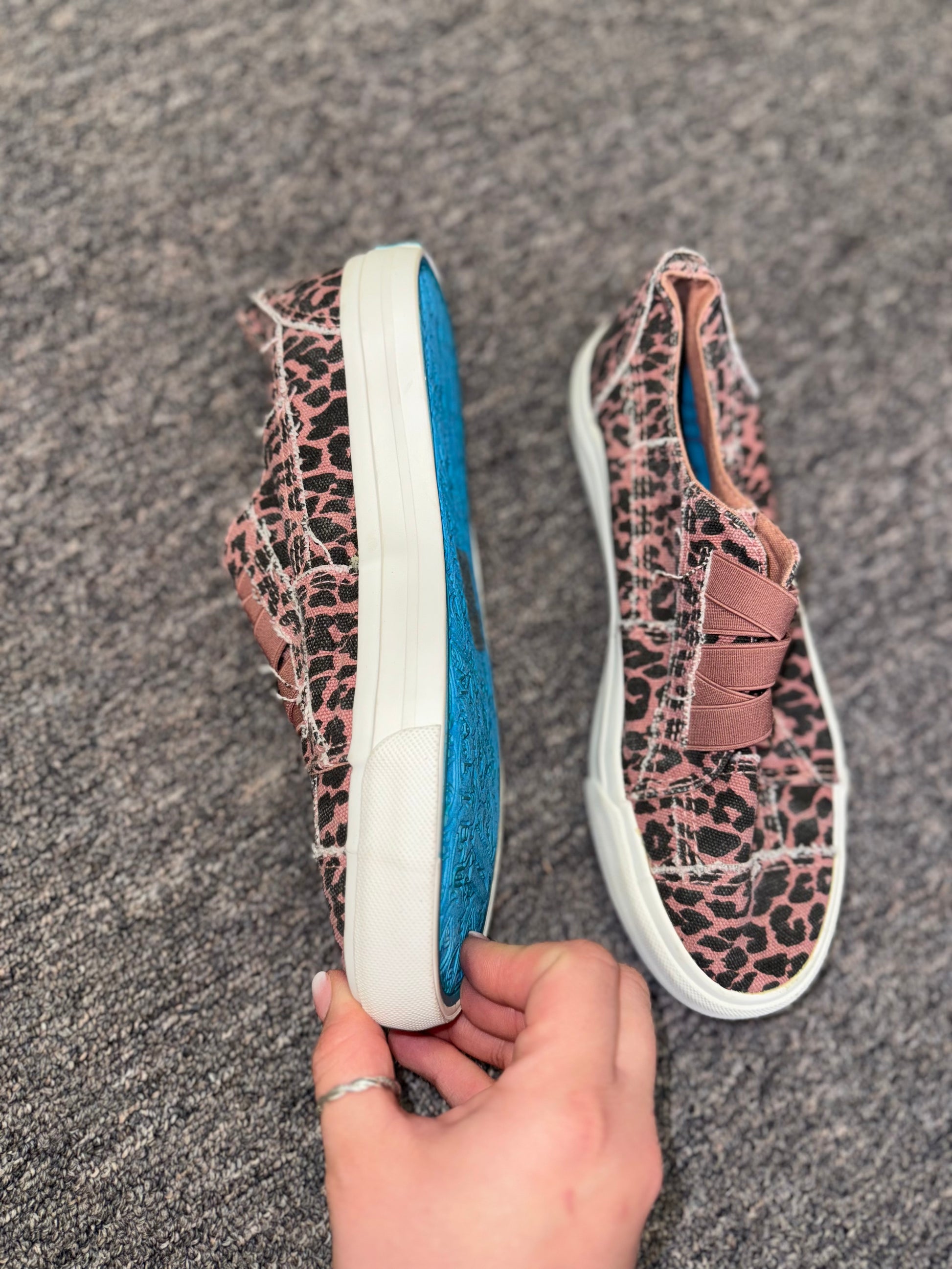 Blowfish (7.5) Pink/Black Cheetah Print Slip On Sneakers with Elastic Straps