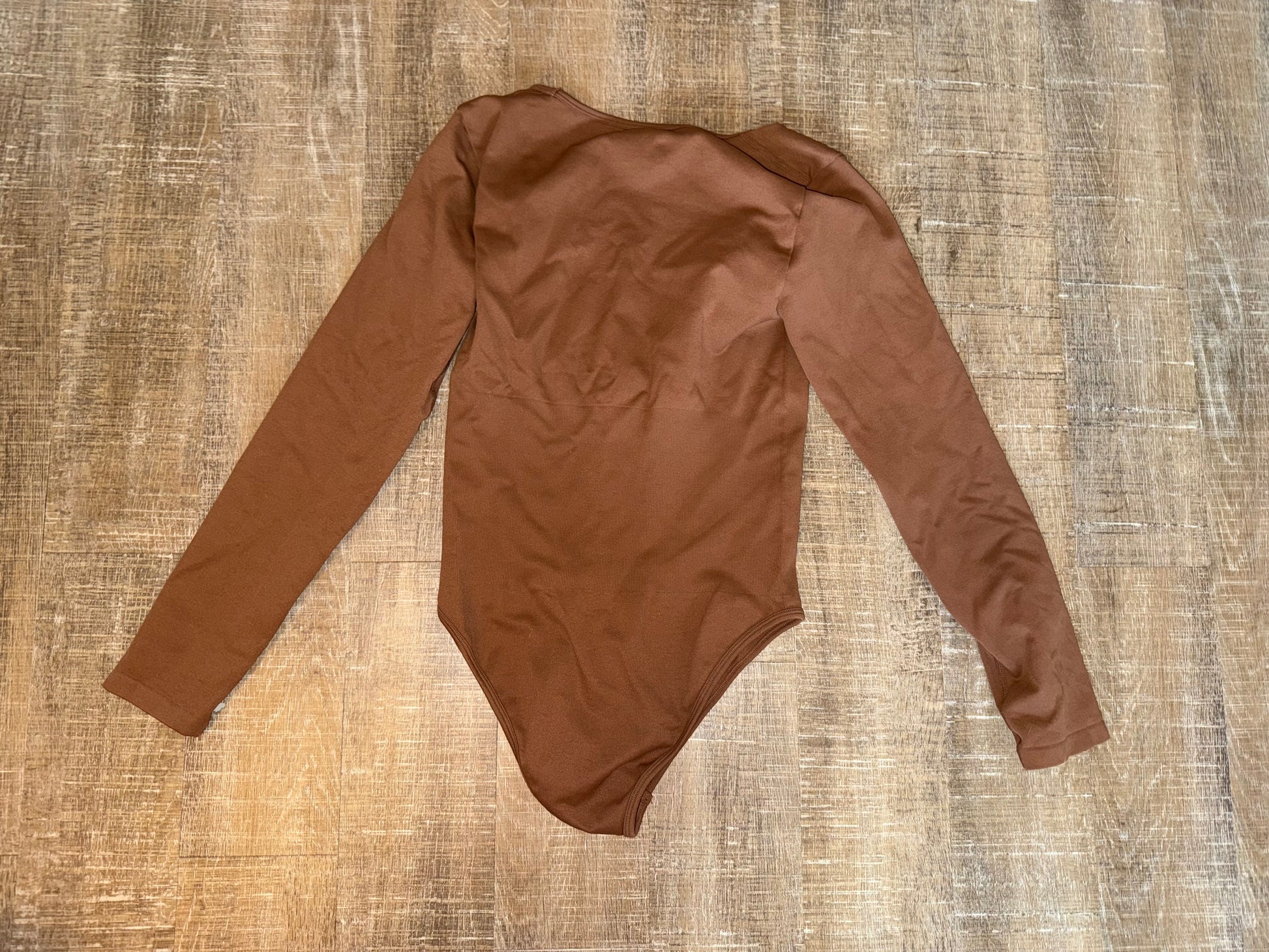 OQQ (Large) Brown Long Sleeve Bodysuit with Square Neck