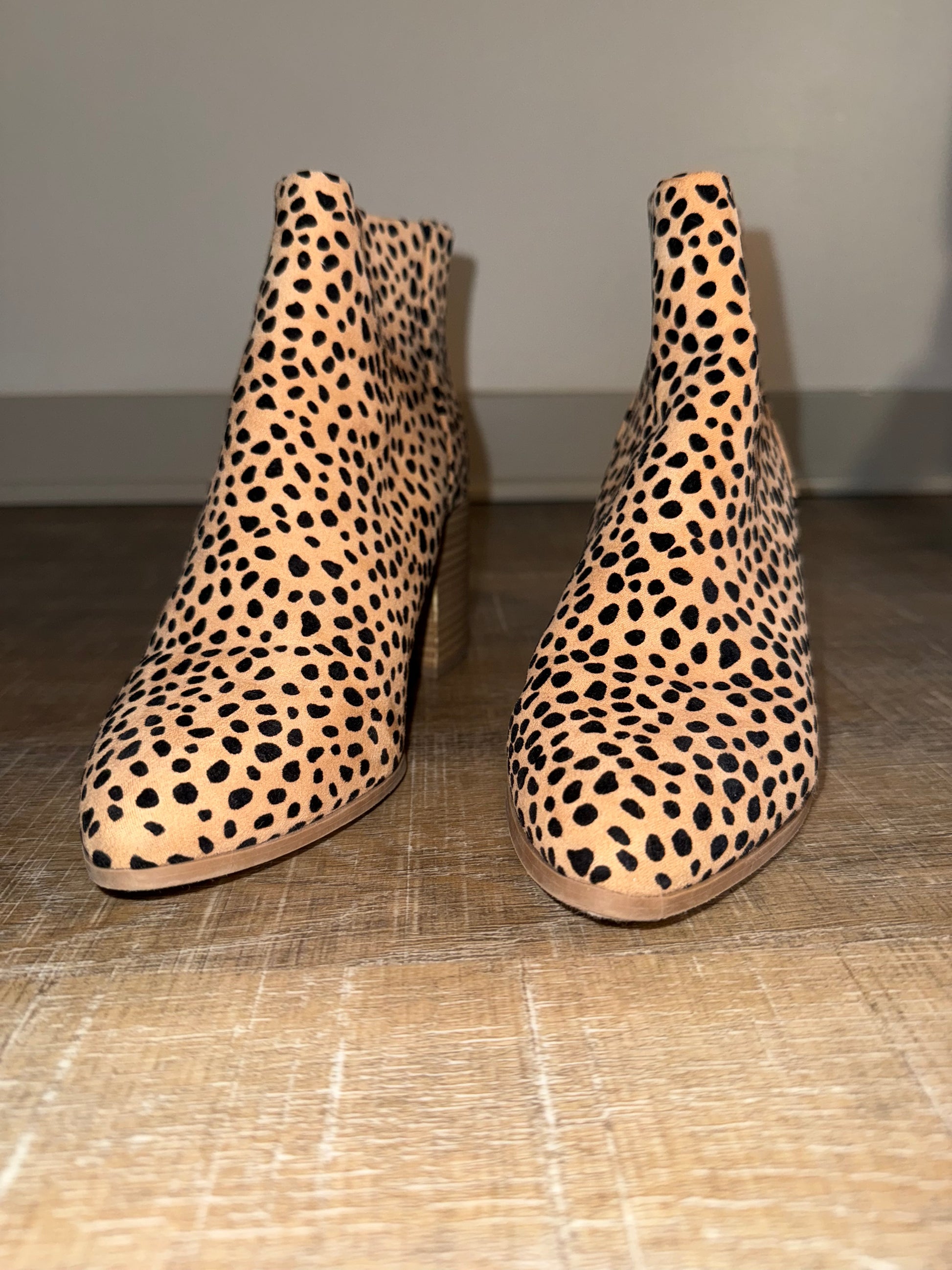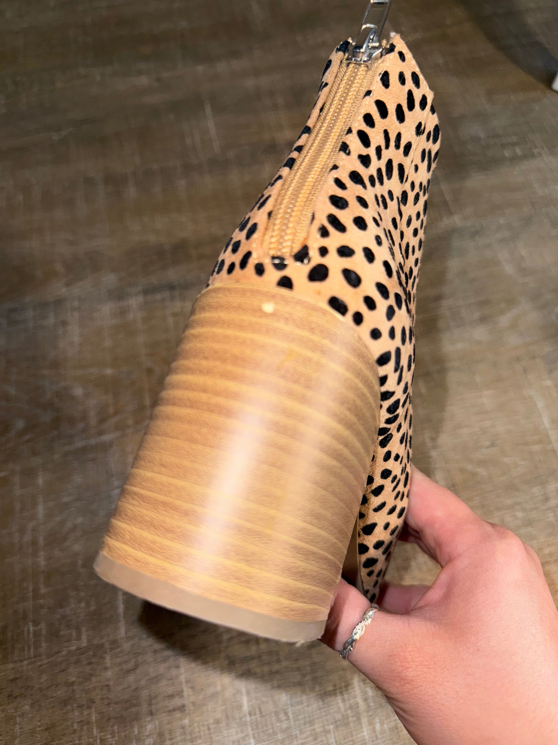 (7.5) Neutral Cheetah Print Heel Ankle Boots