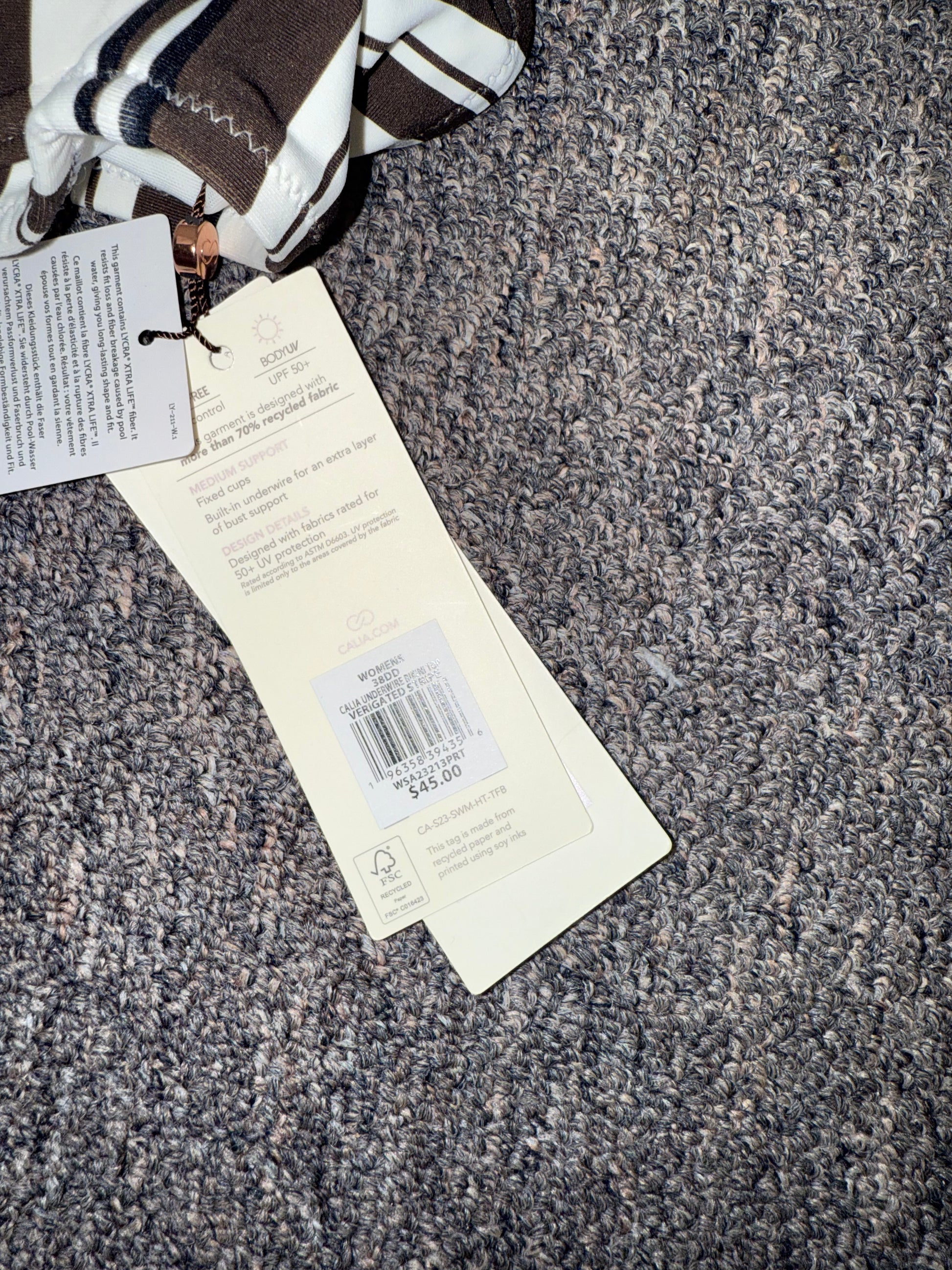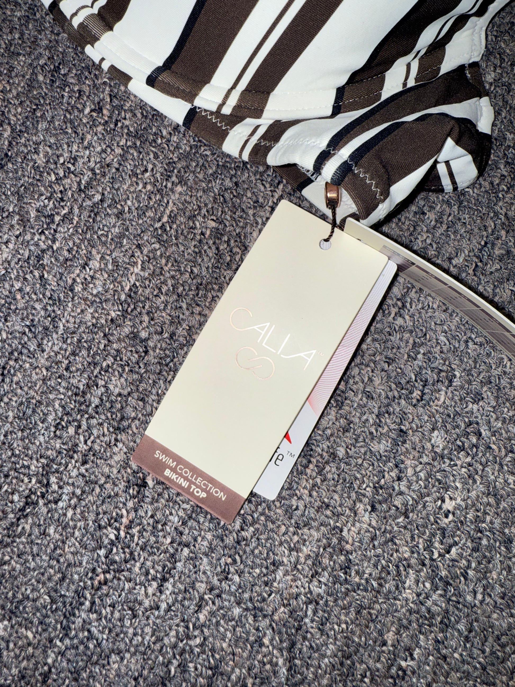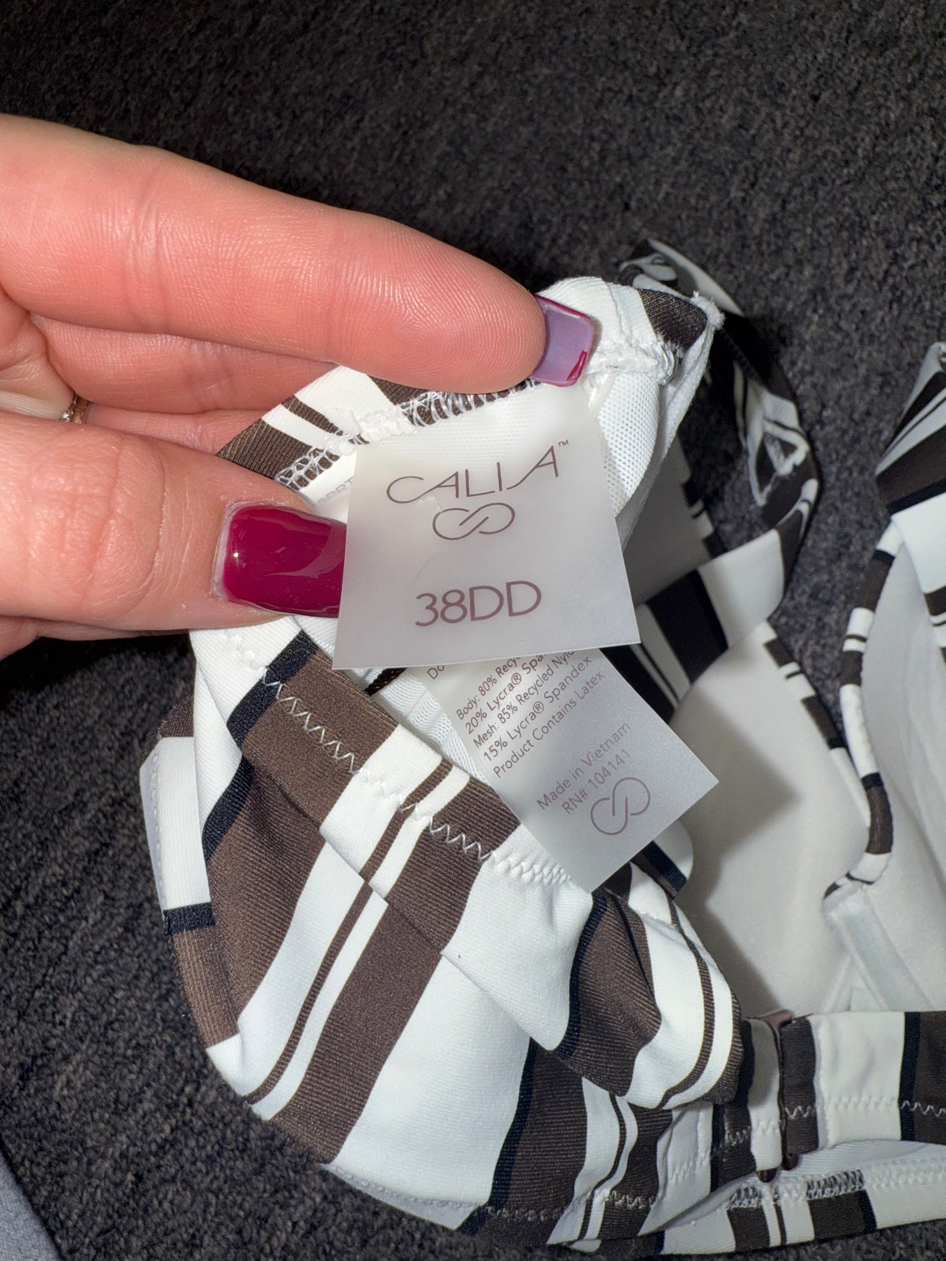 NWT Calia (38DD) Brand New Brown and White Striped Bikini Bathing Suit Top