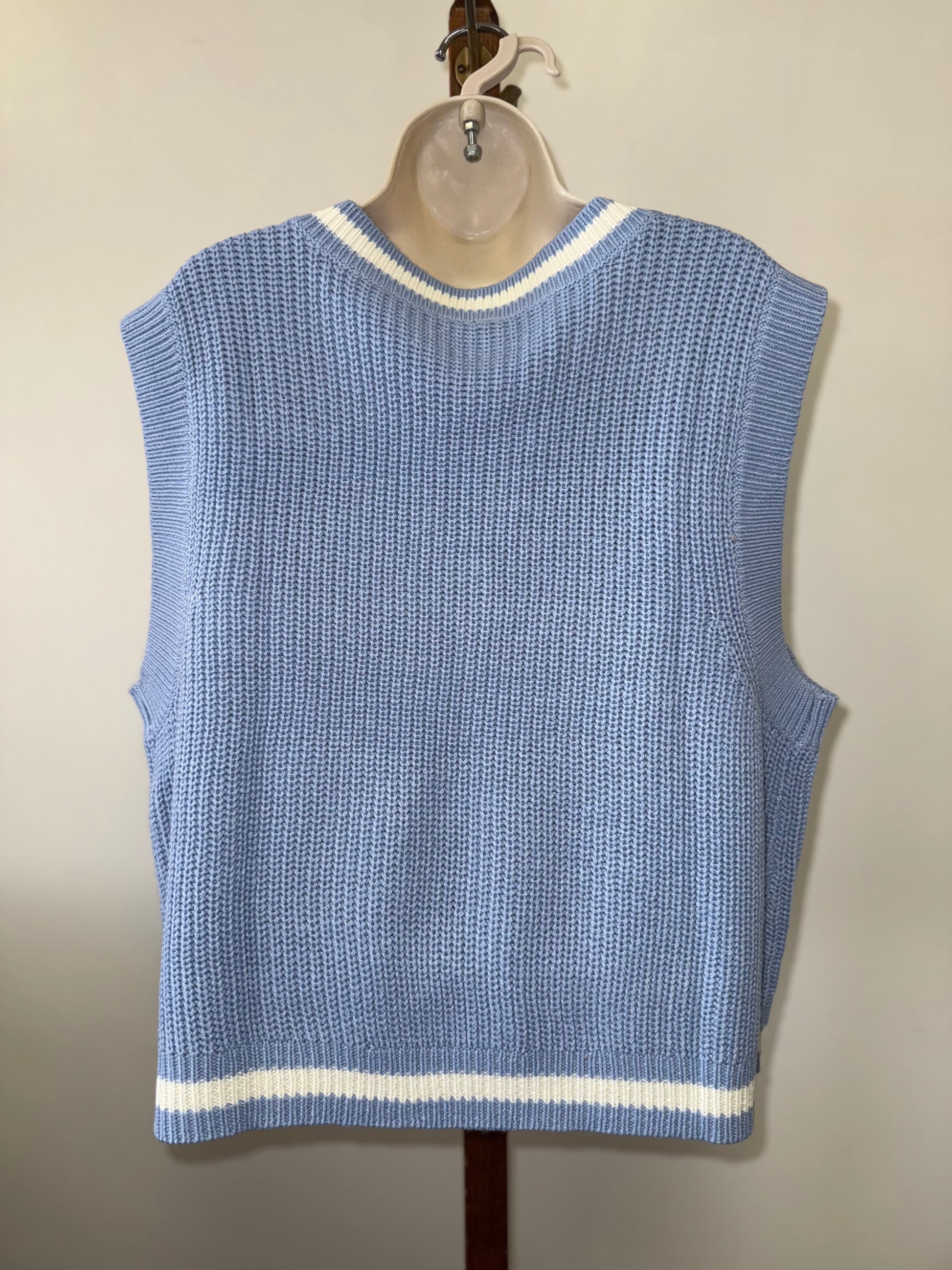 Divided (Large) Blue and White Knit V-Neck Sleeveless Sweater Vest