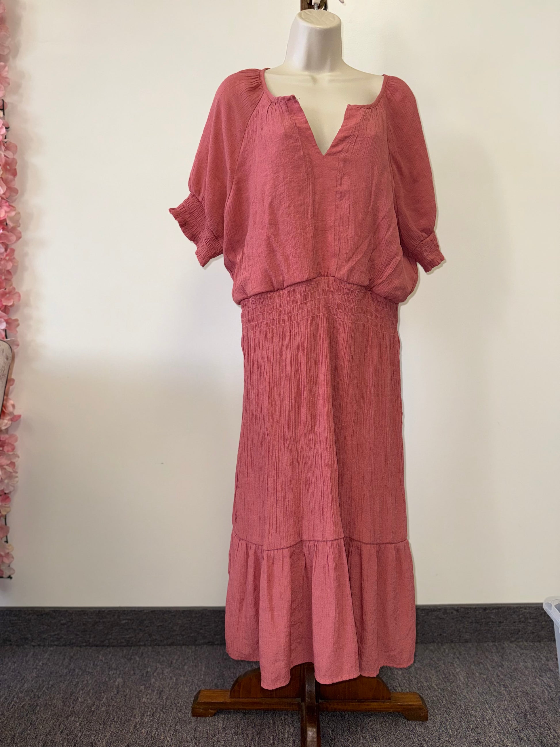 Luxology (XL) Pink Maxi Dress with Smocked Waist