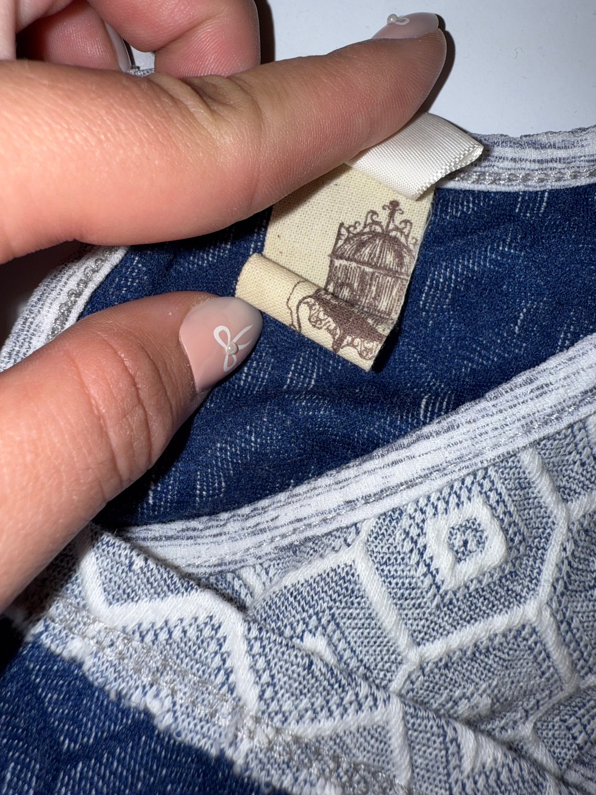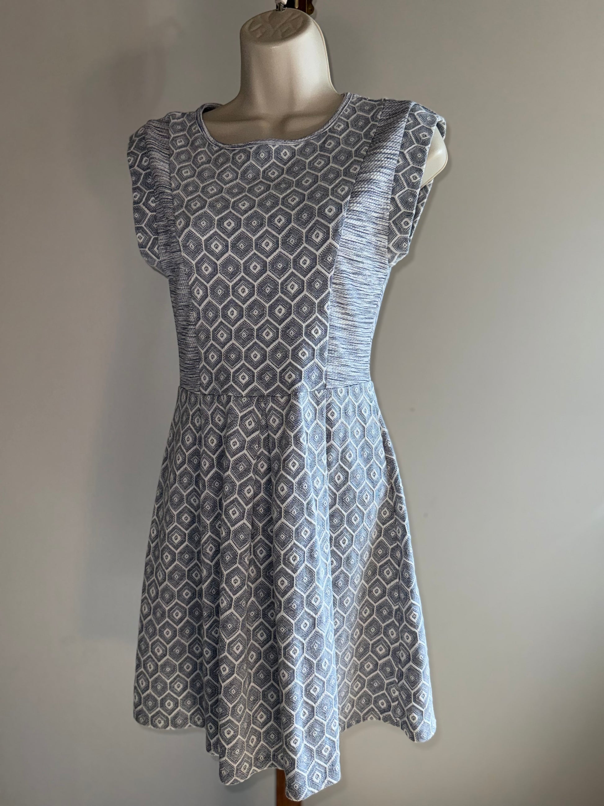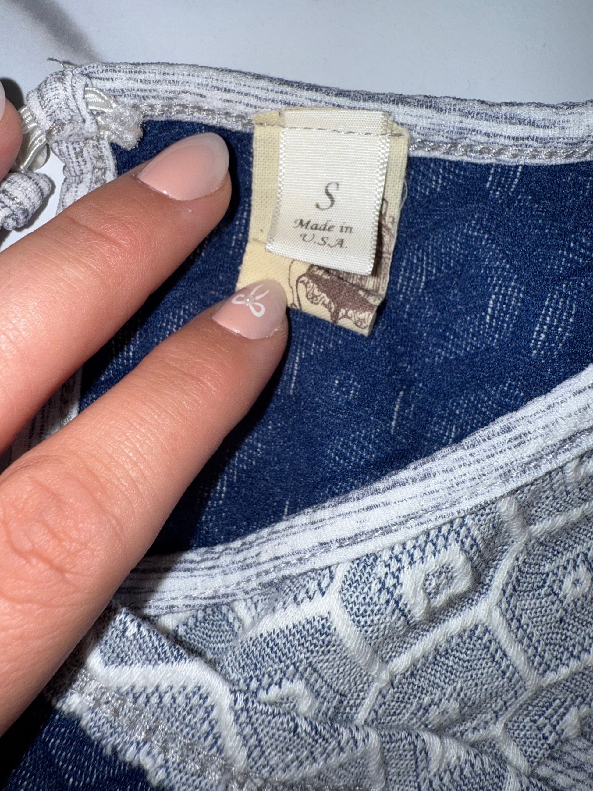 Francesca's (Small) Blue & White Lace Short Sleeve Midi Dress