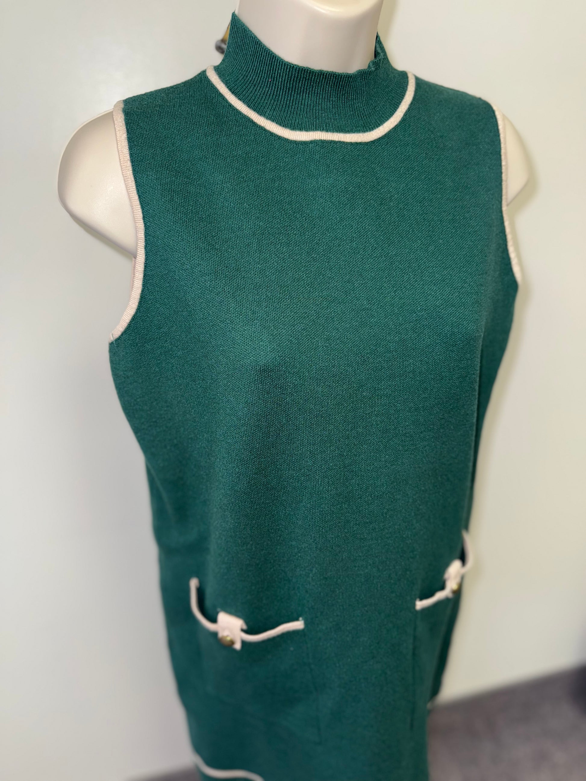 Entro (Medium) Green Sleeveless Turtleneck Soft Knit Sweater Dress w Pockets
