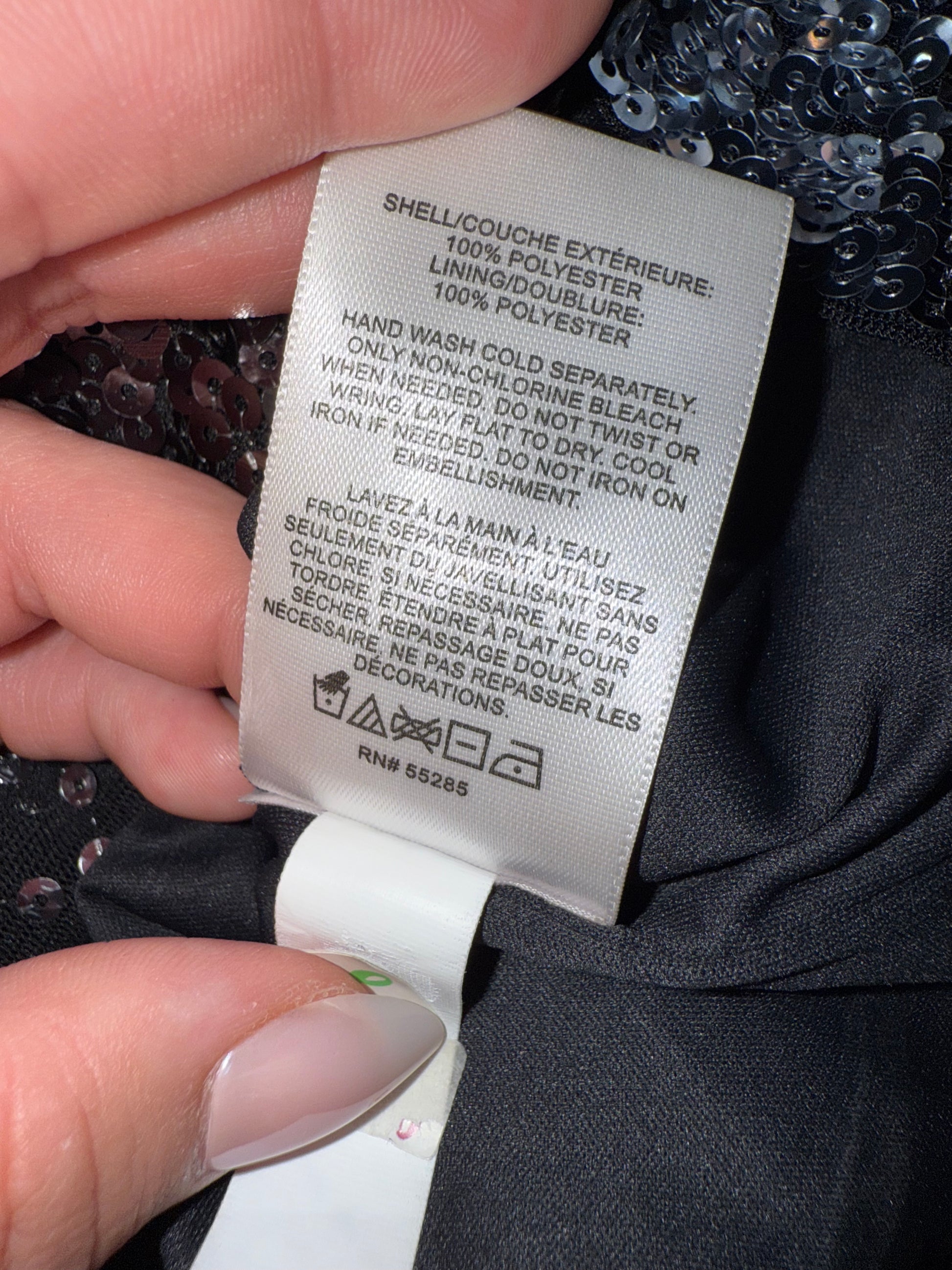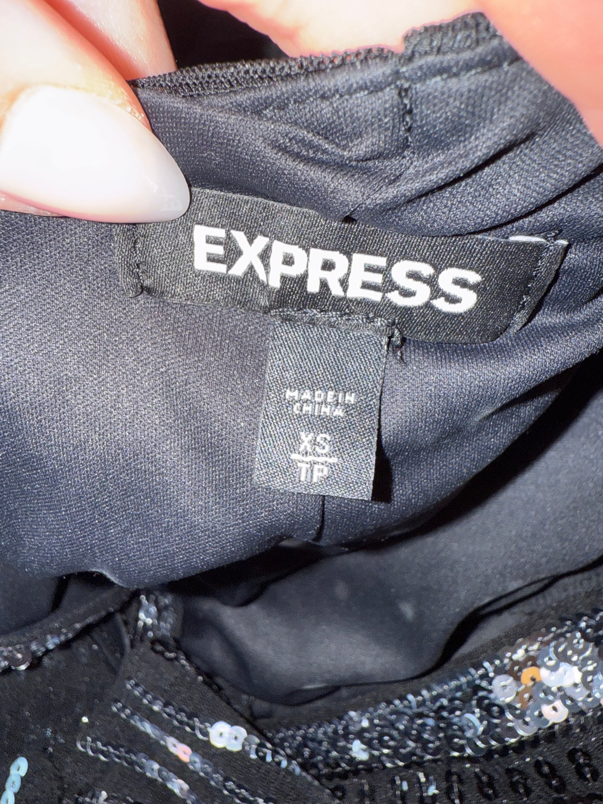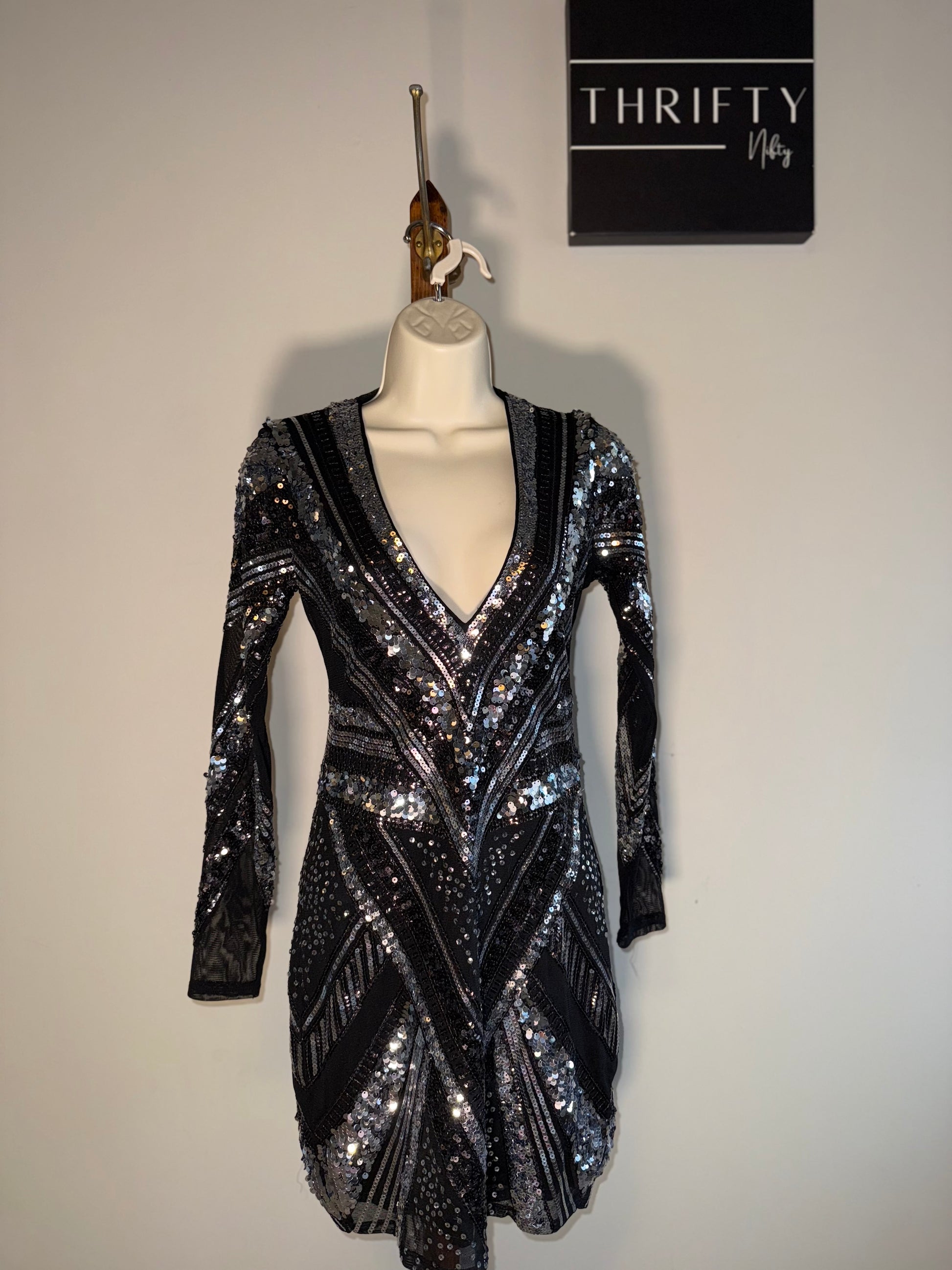 Express (XS) Black/Silver Sequin V-Neck Long Sleeve Midi Dress