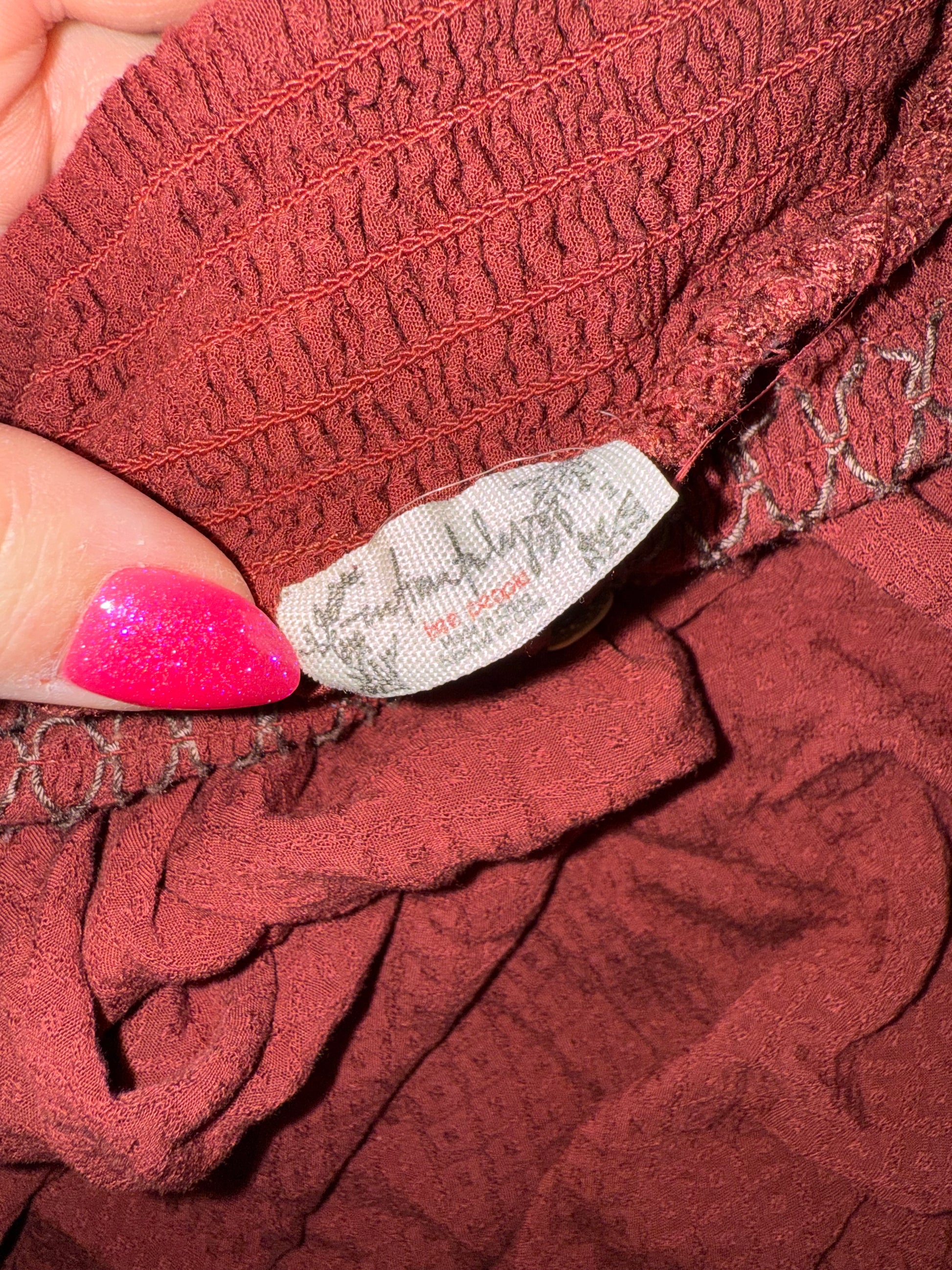 Free People (Medium) Maroon Flowy Romper with Tied Strap Shoulders