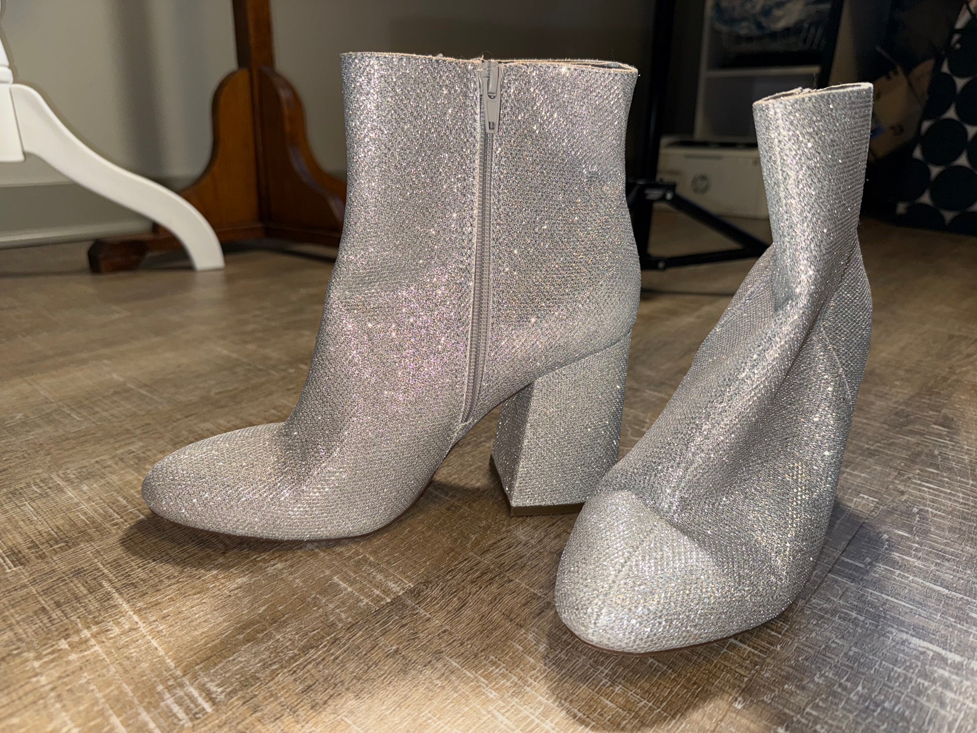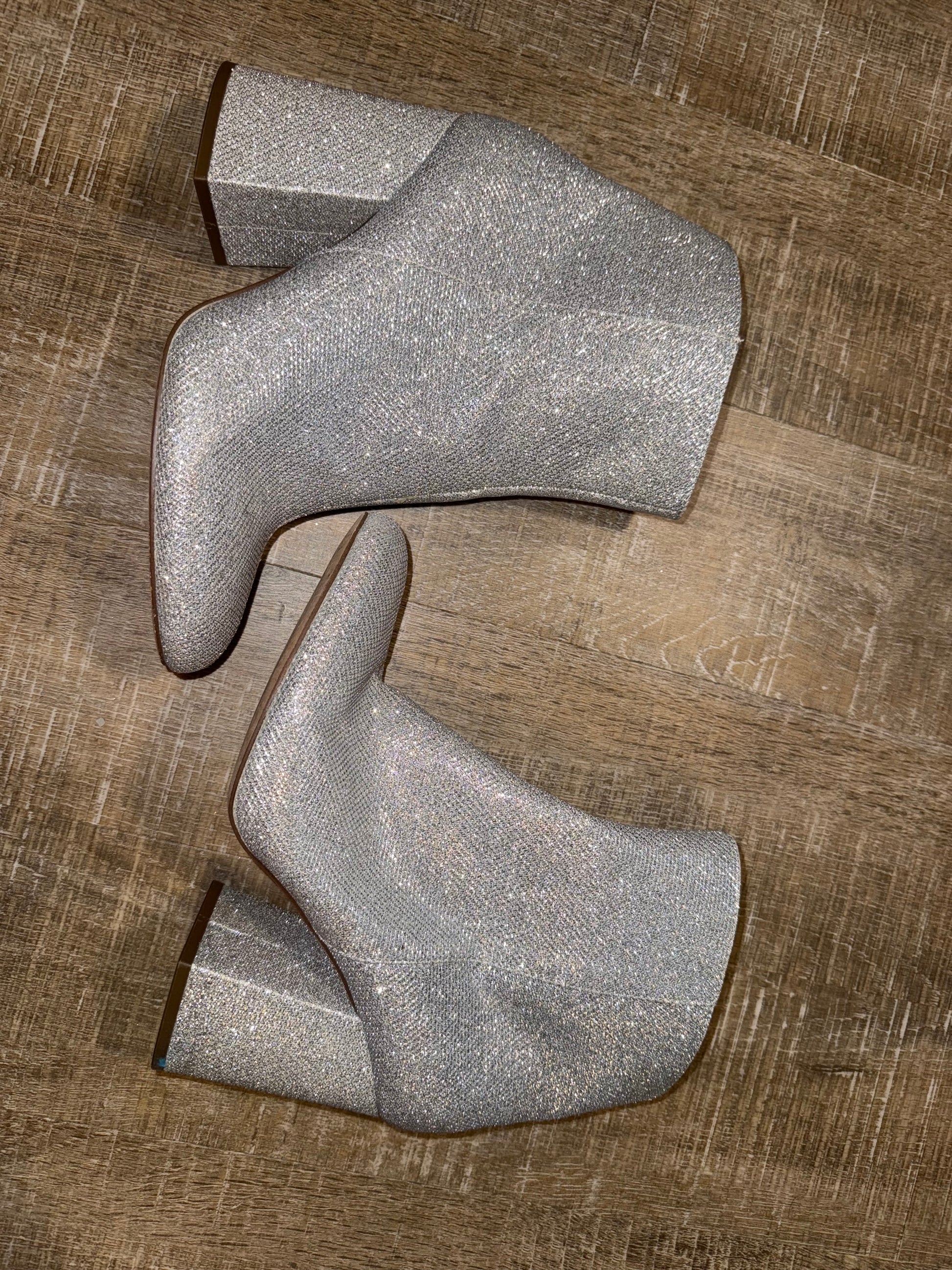 Madden Girl (9) Silver Glitter Heeled Ankle Boot