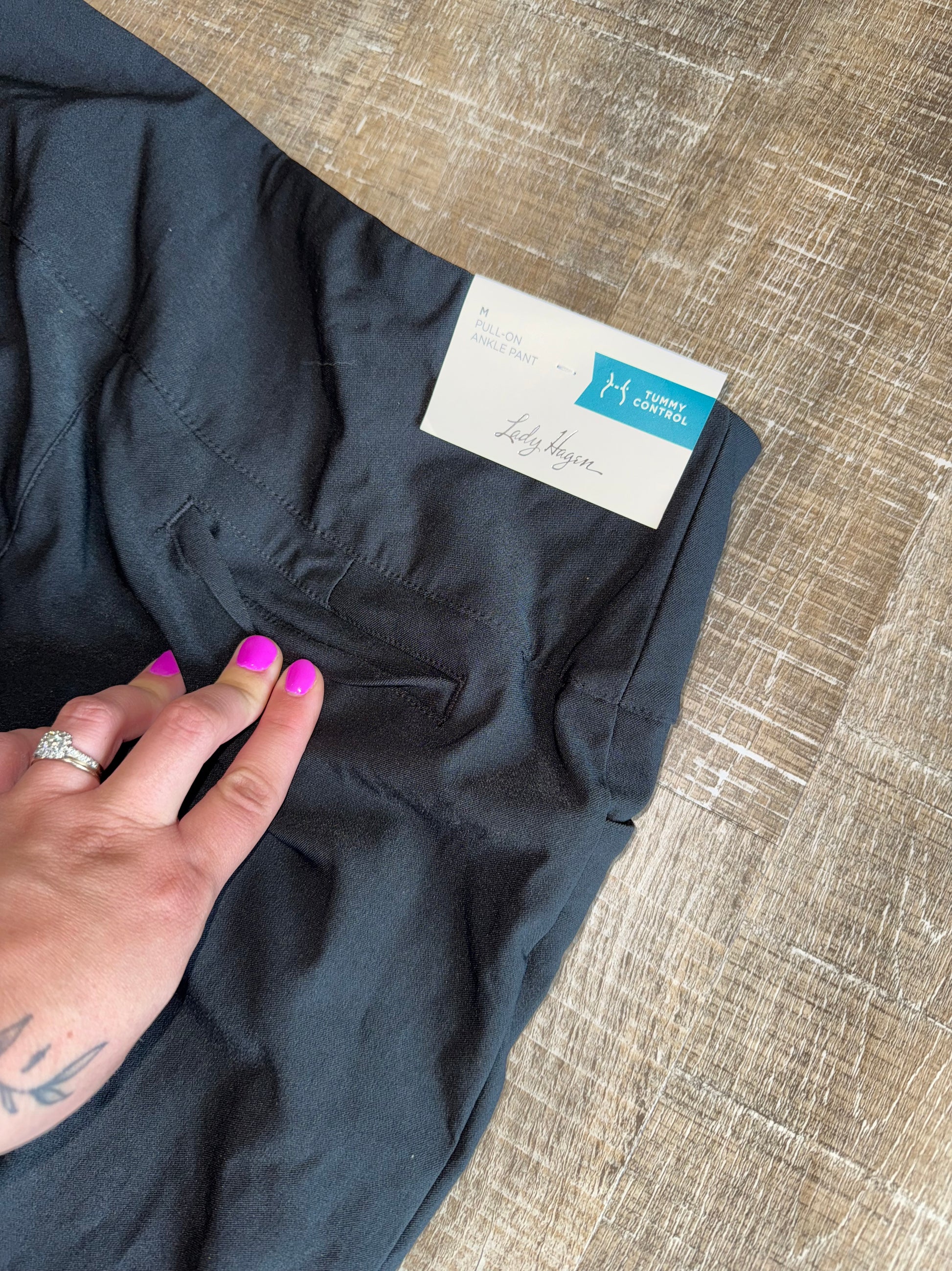 NWT Lady Hagen (Medium) Brand New Black Tummy Control Pull On Ankle Pants