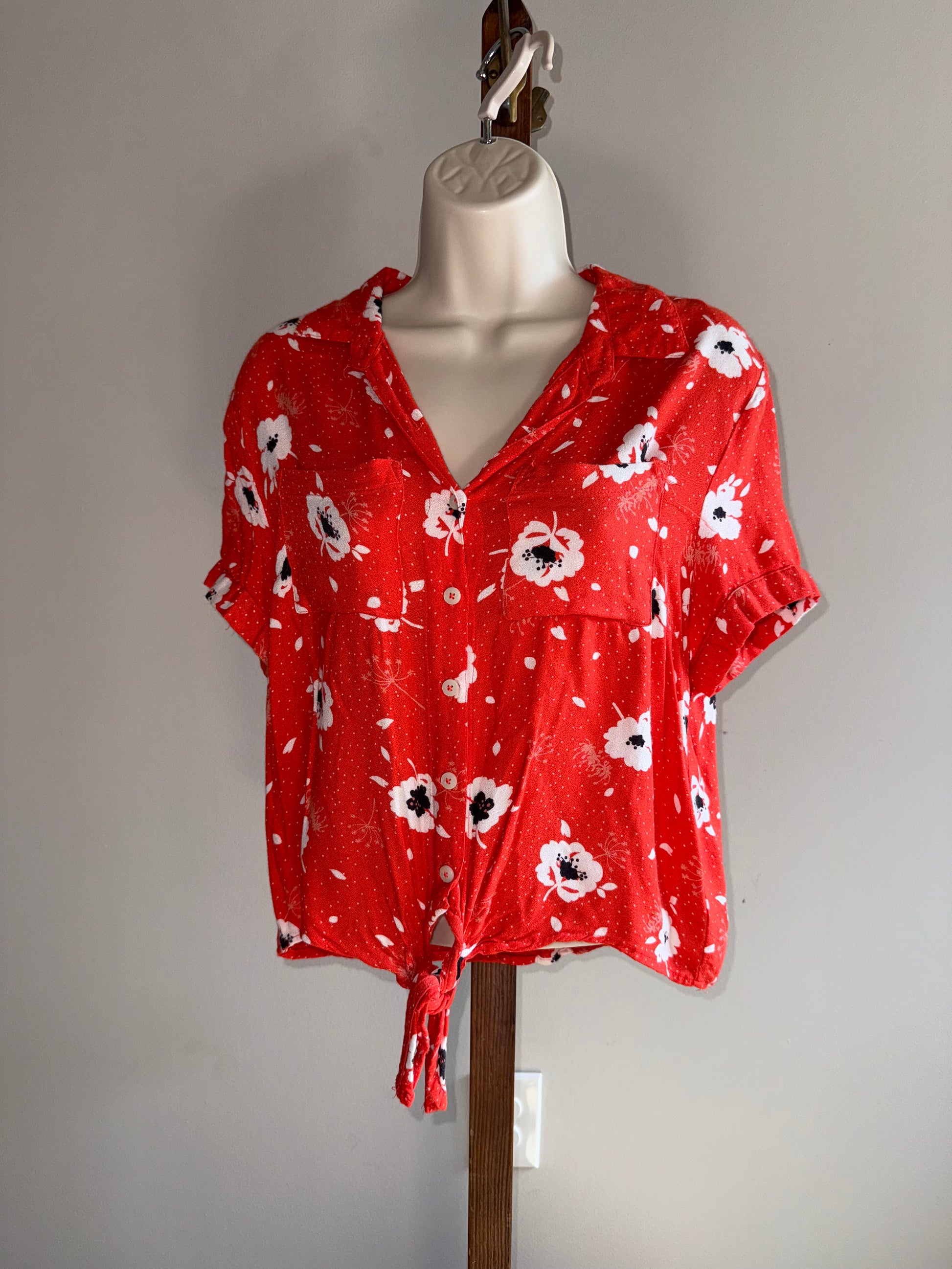 Harper Heritage (Medium) Orange Button Up Floral Blouse