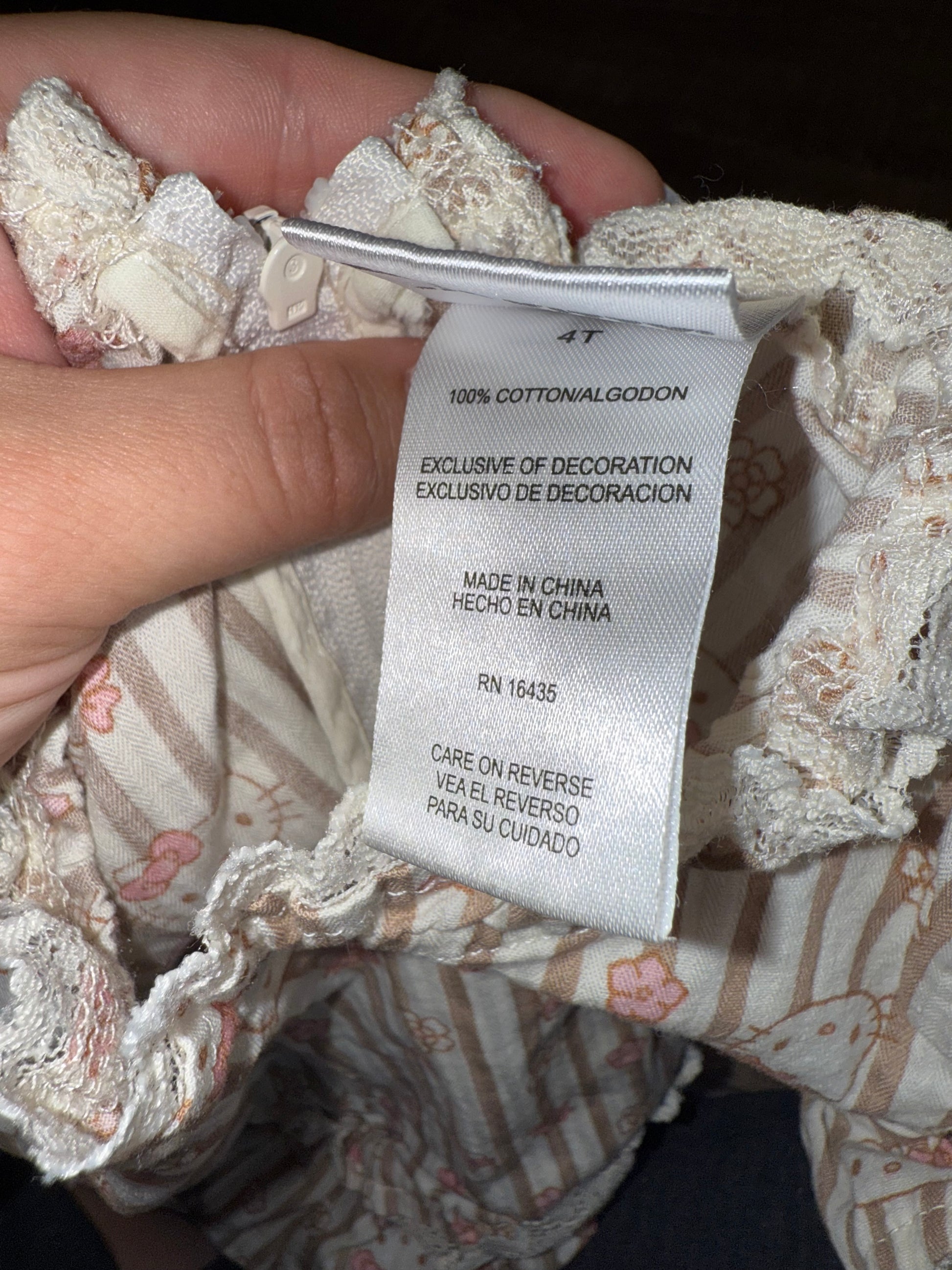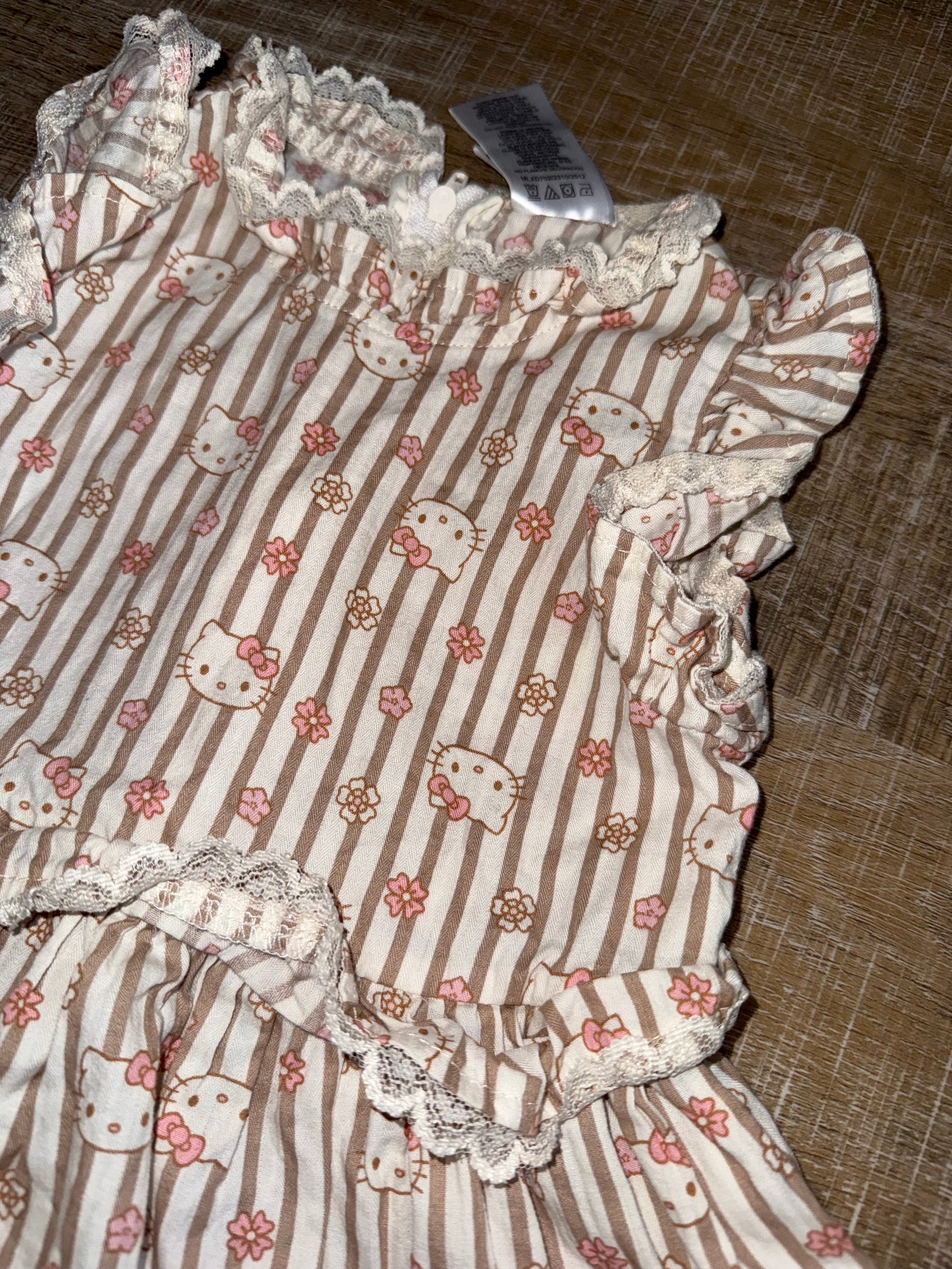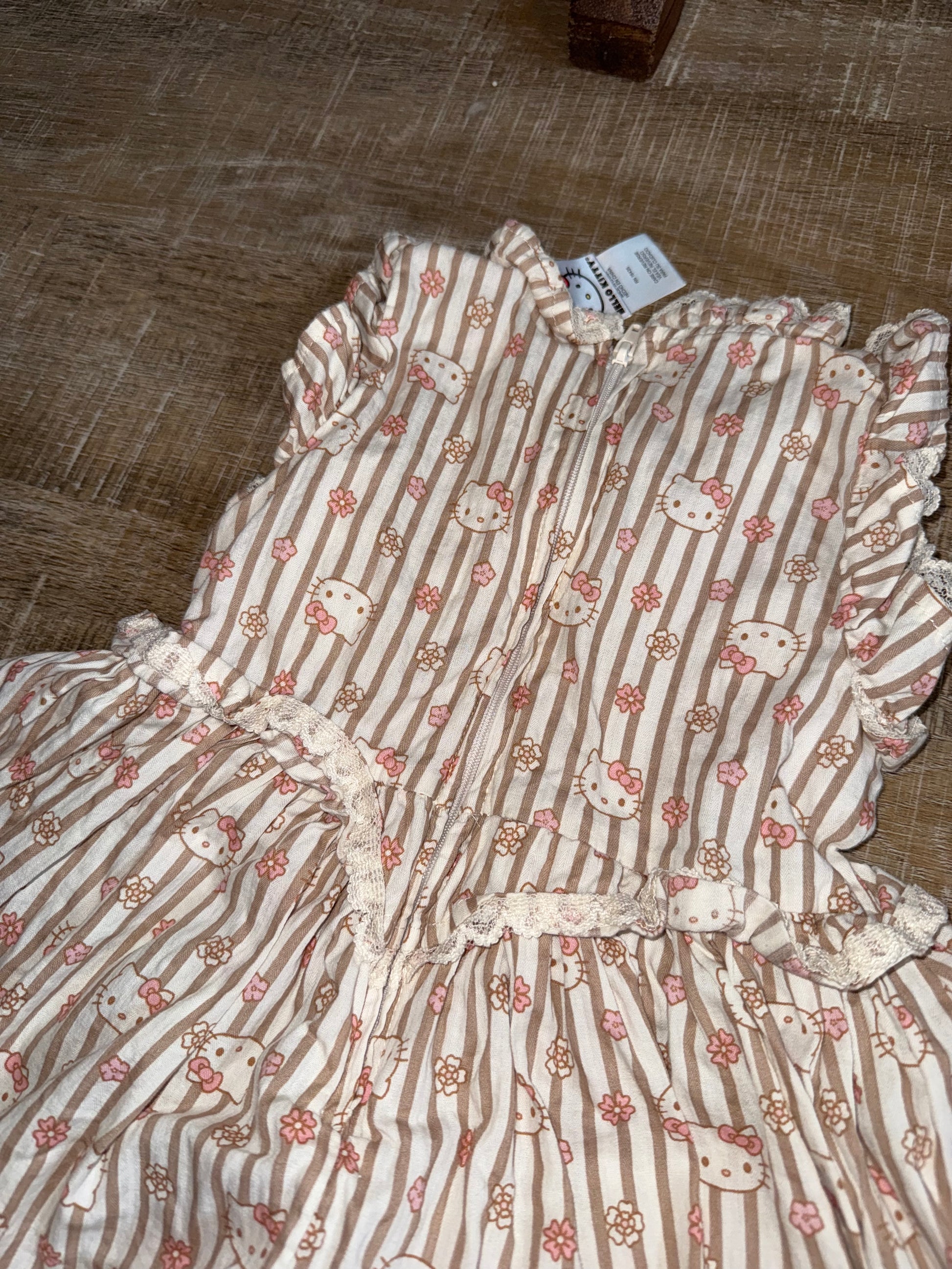 Hello Kitty (4T) Neutral Striped Floral Hello Kitty Pattern Dress with Lace