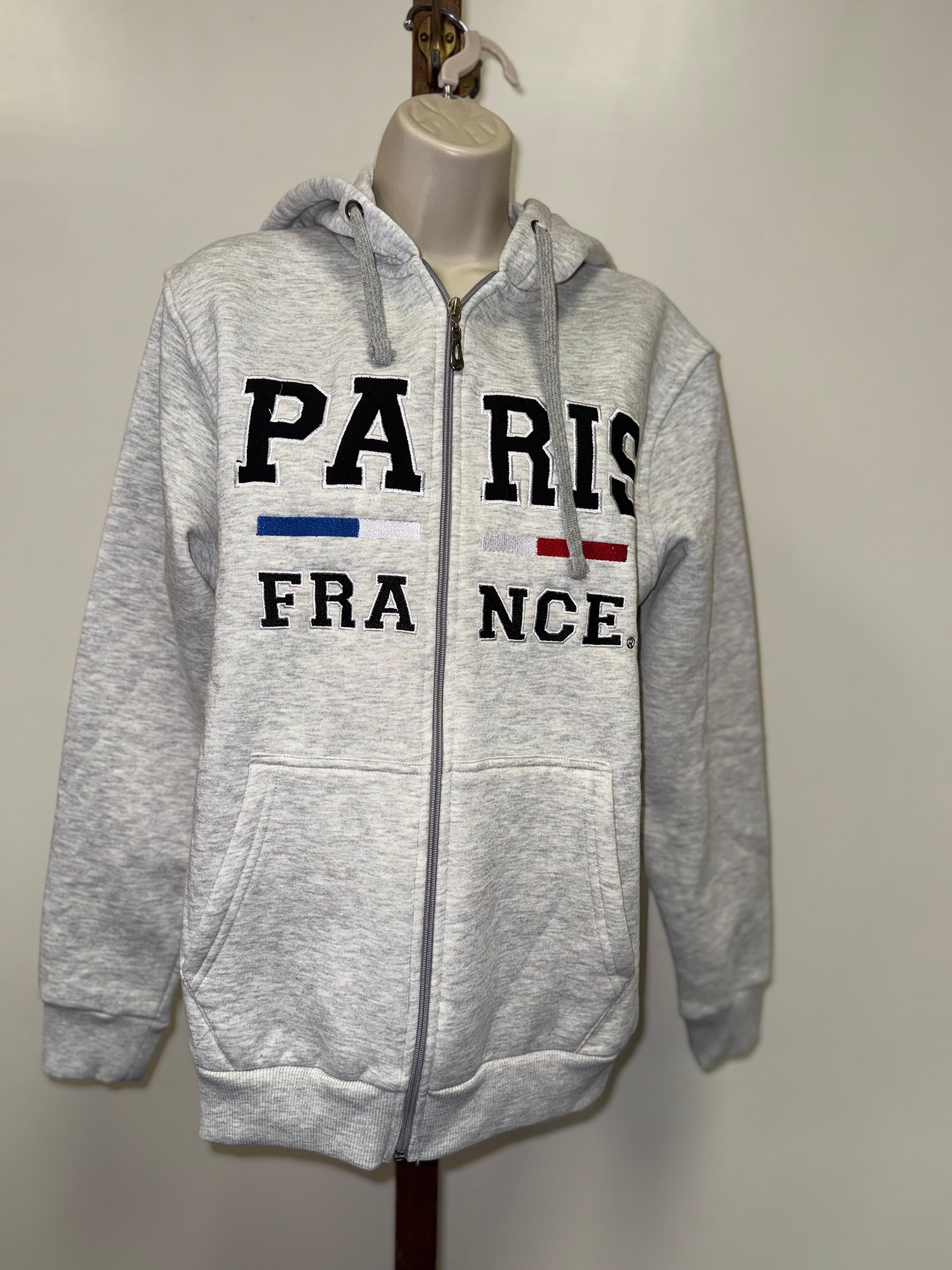 Sanex Textile France (Small) Grey 'Paris France' Zip Up Hooded Sweatshirt