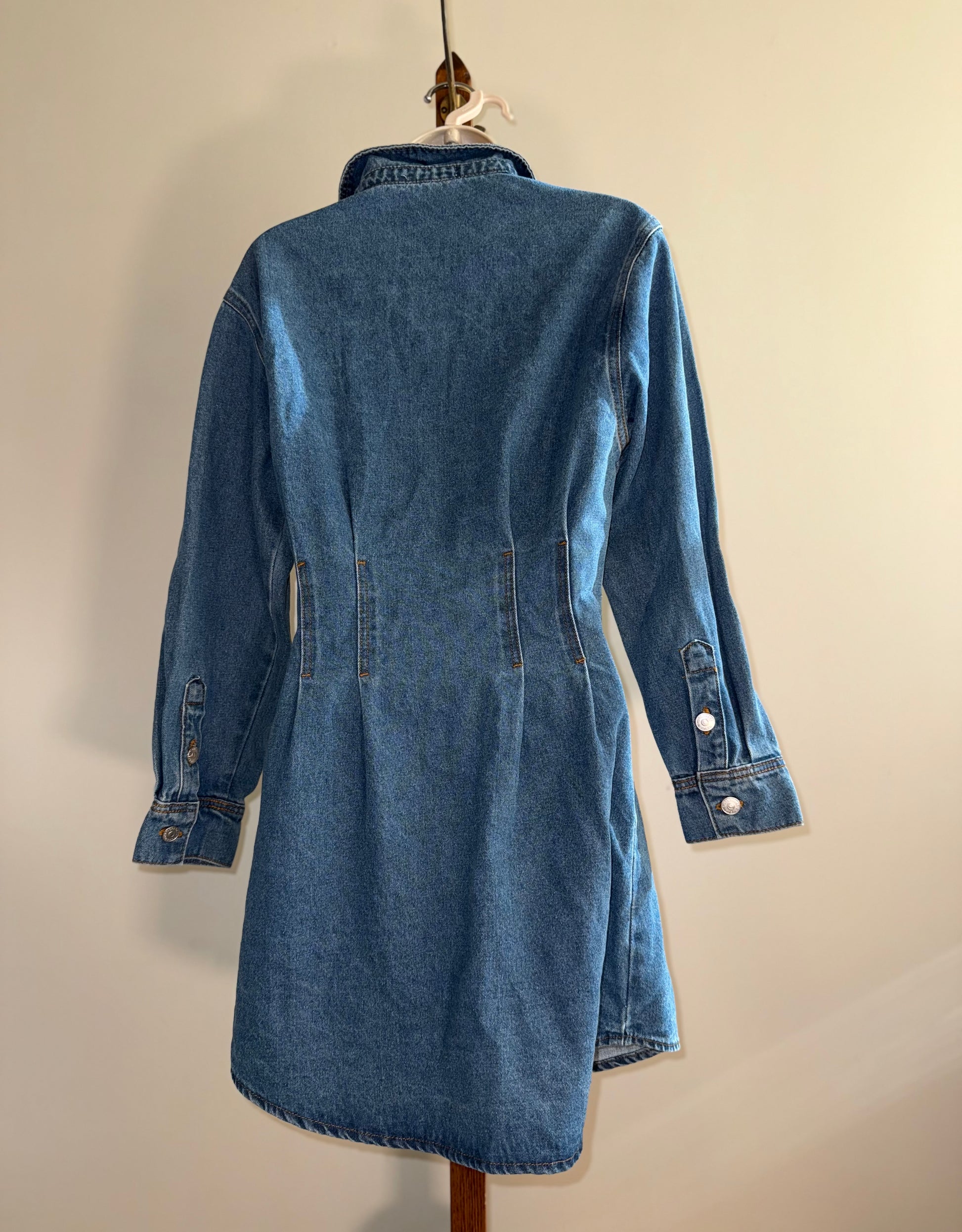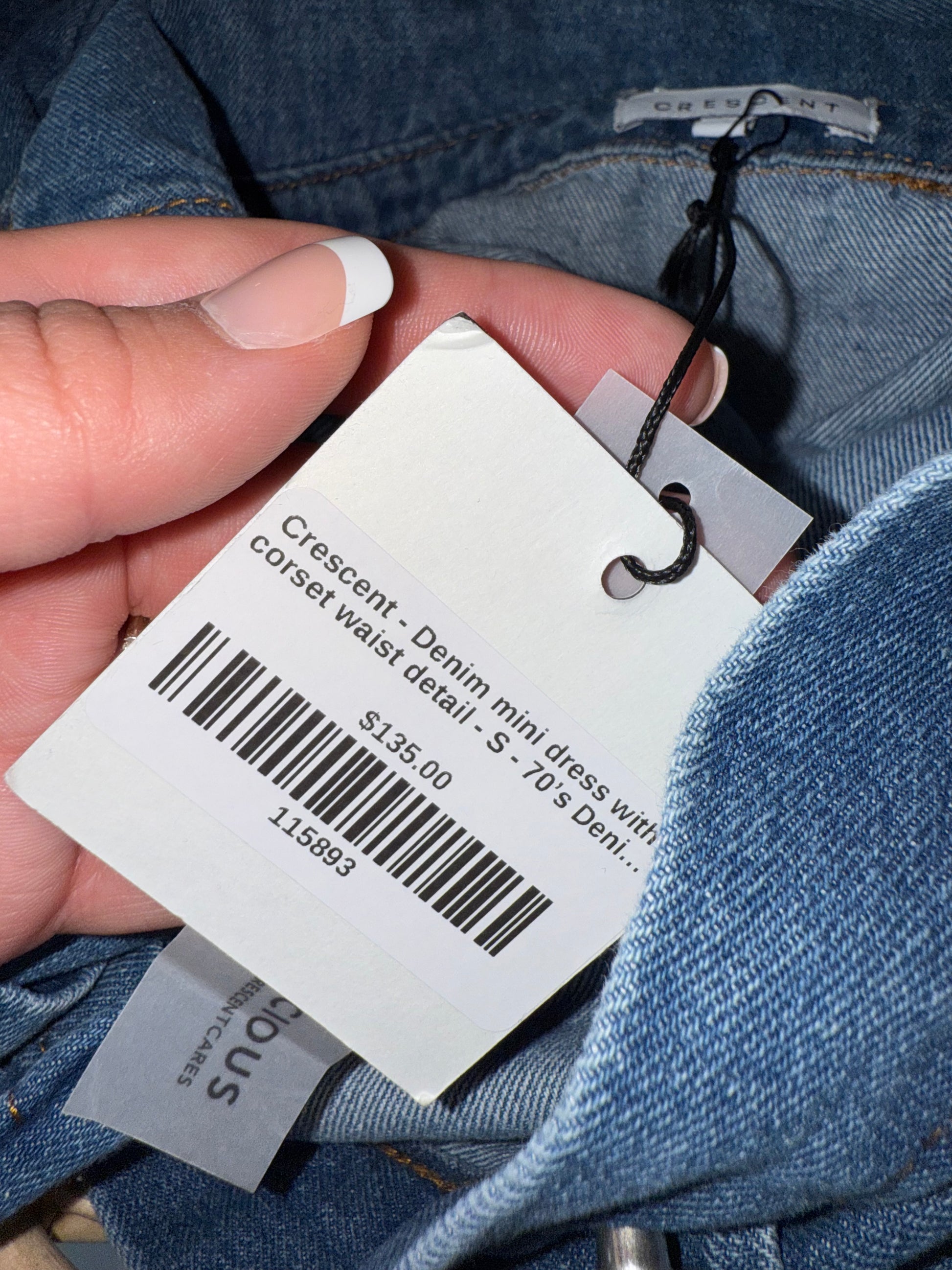 NWT Crescent (Small) Brand New Blue Denim Button Up Dress with Corset Waist