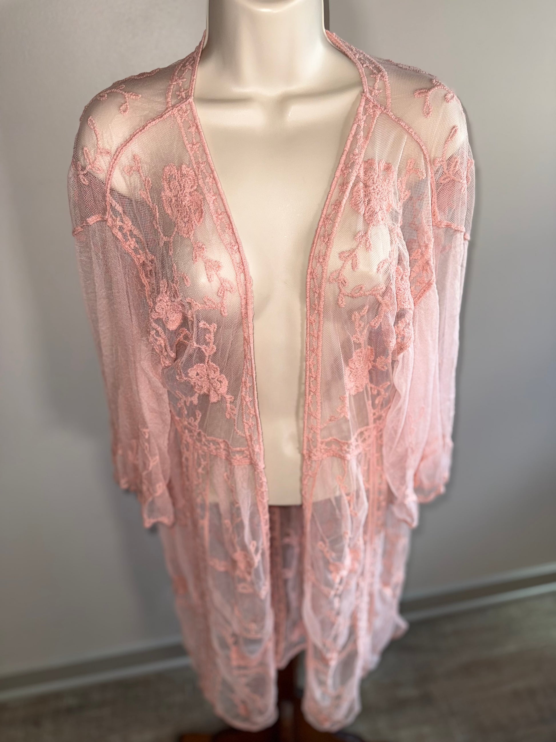 Lauren Conrad (OS) Pink Sheer Embroidered Cover Up
