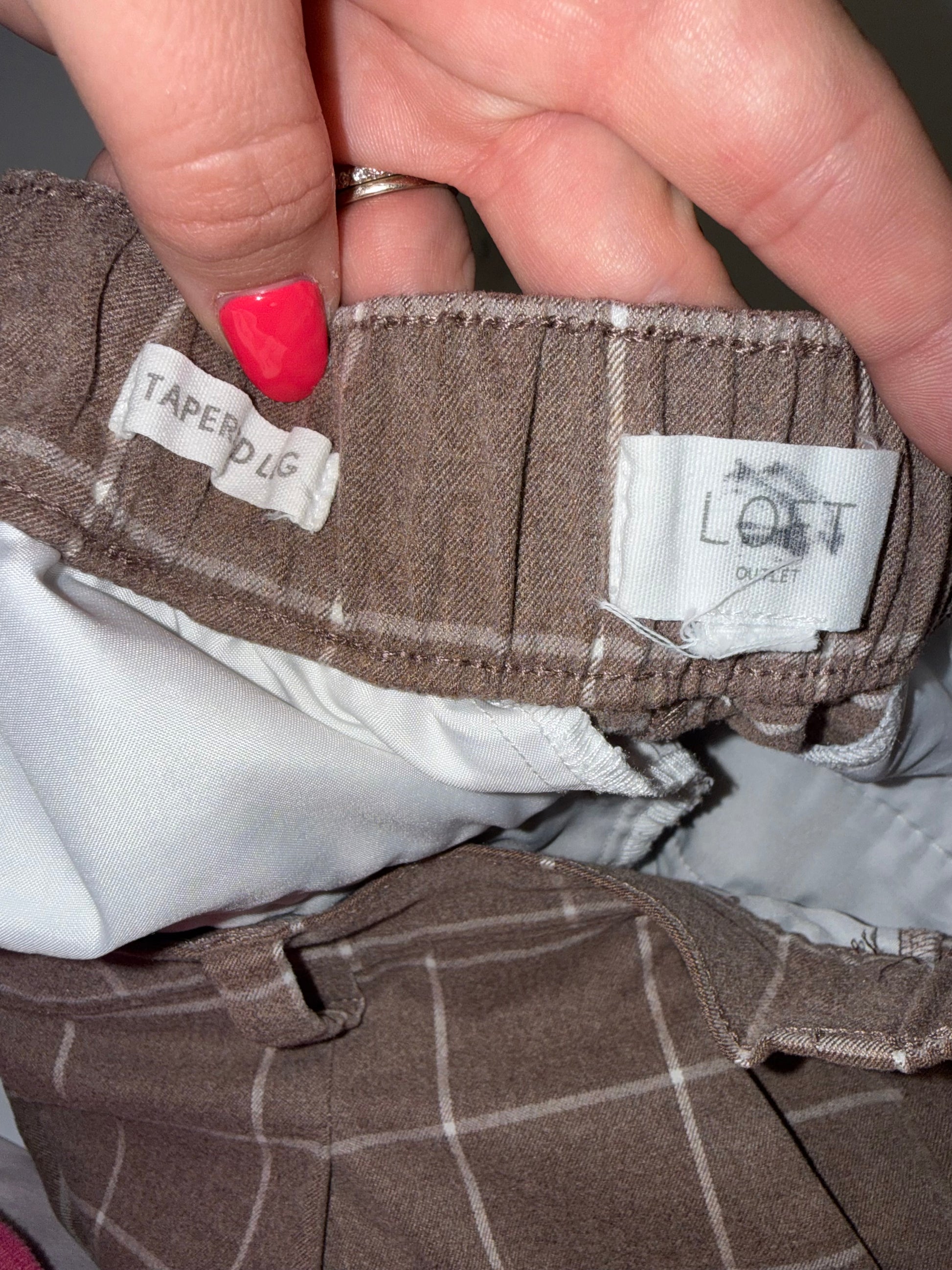 LOFT Brown Plaid Tapered Leg Pants