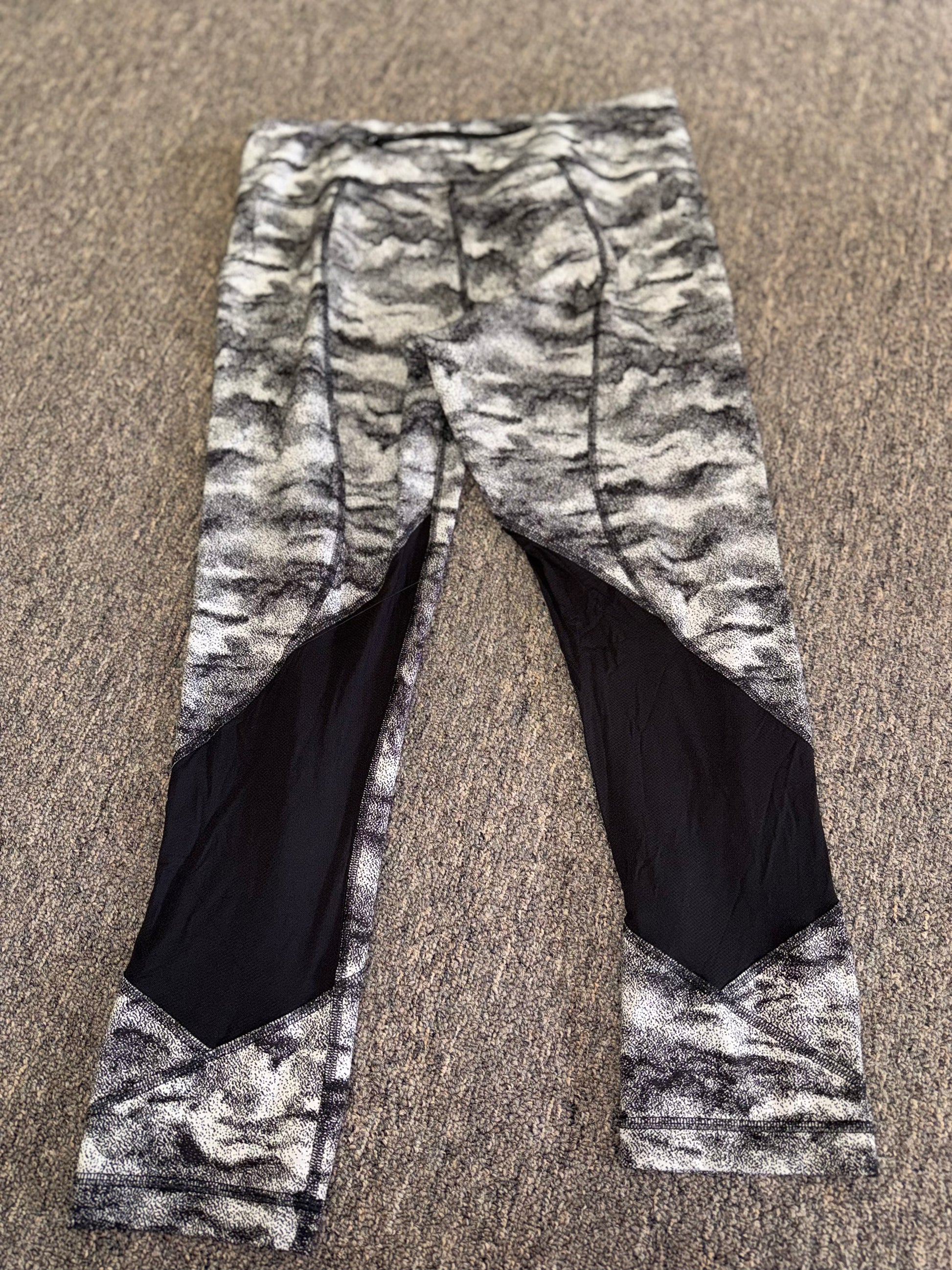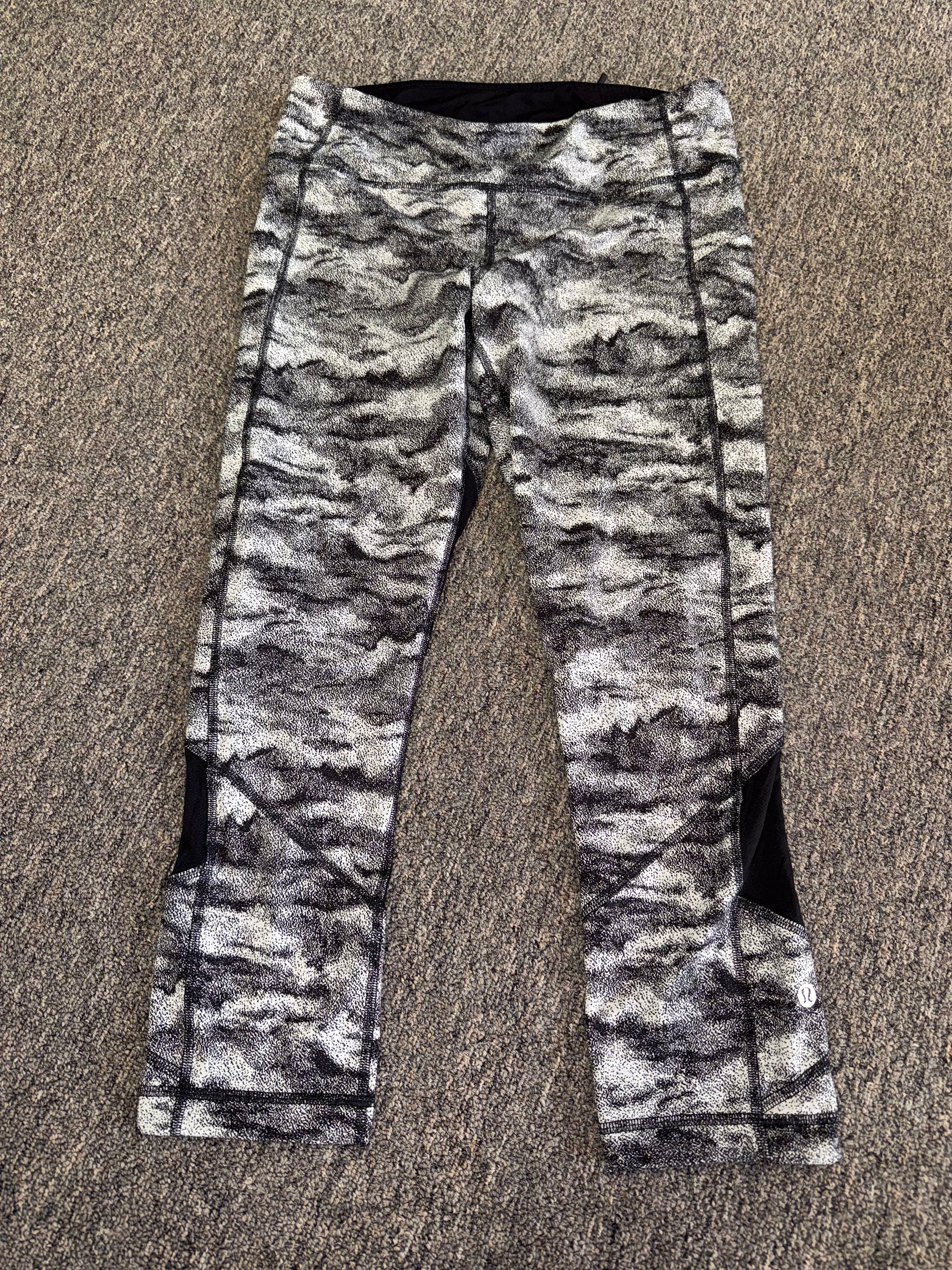 lululemon (8) Black & Grey Pattern Cropped Meshed Leggings with Zipped Pocket