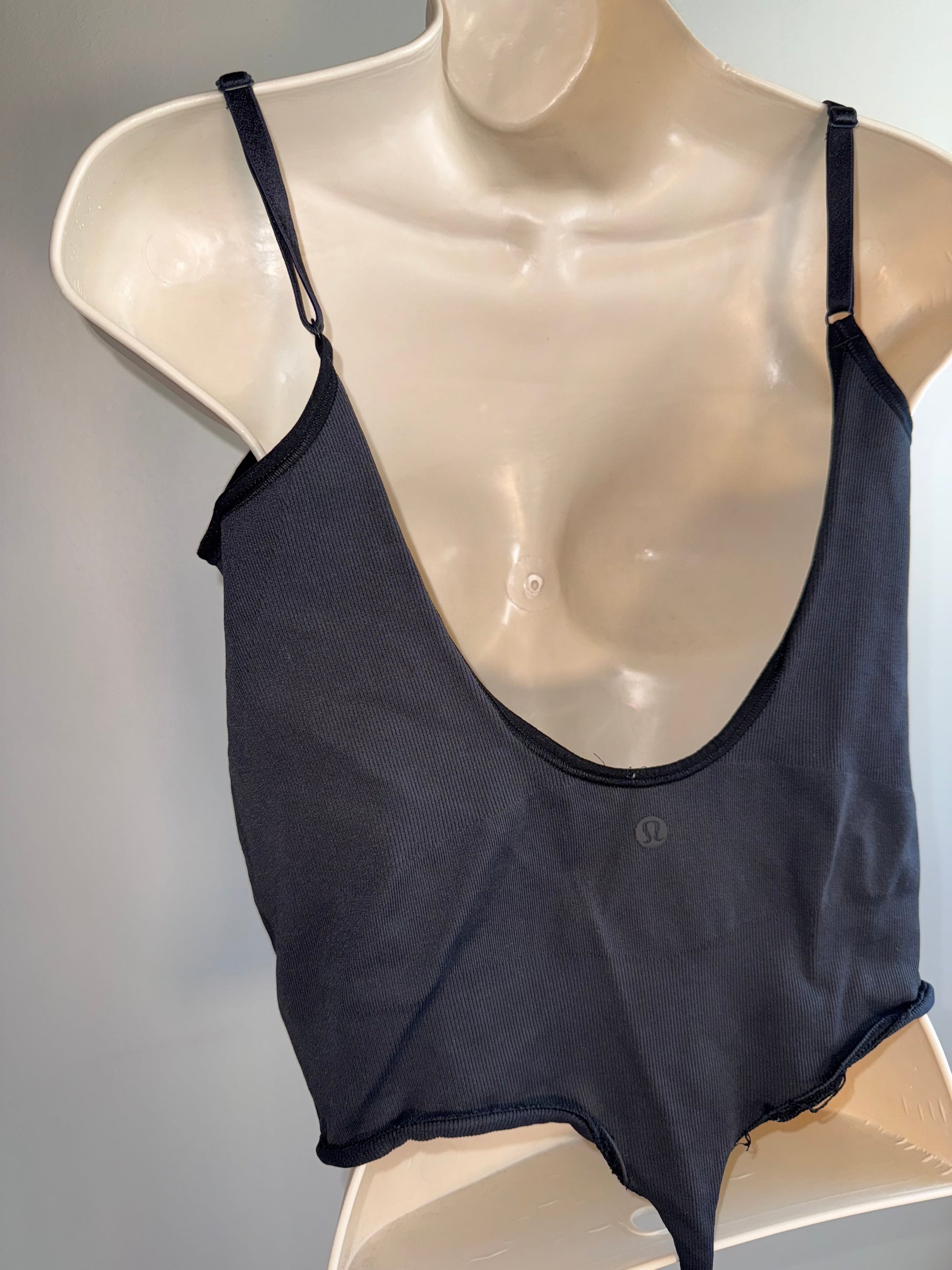 lululemon Black Ribbed Thong Bodysuit with Open Back