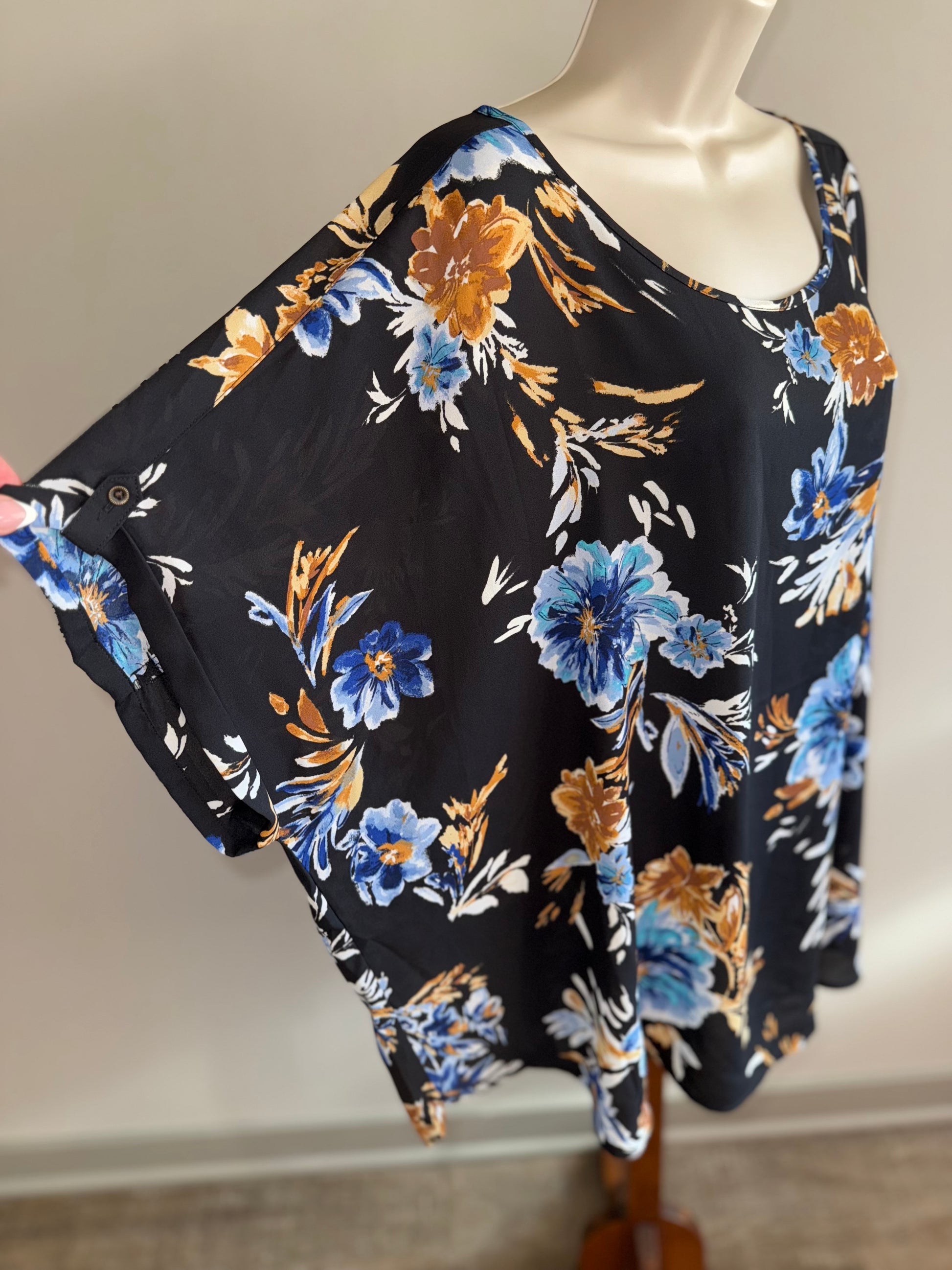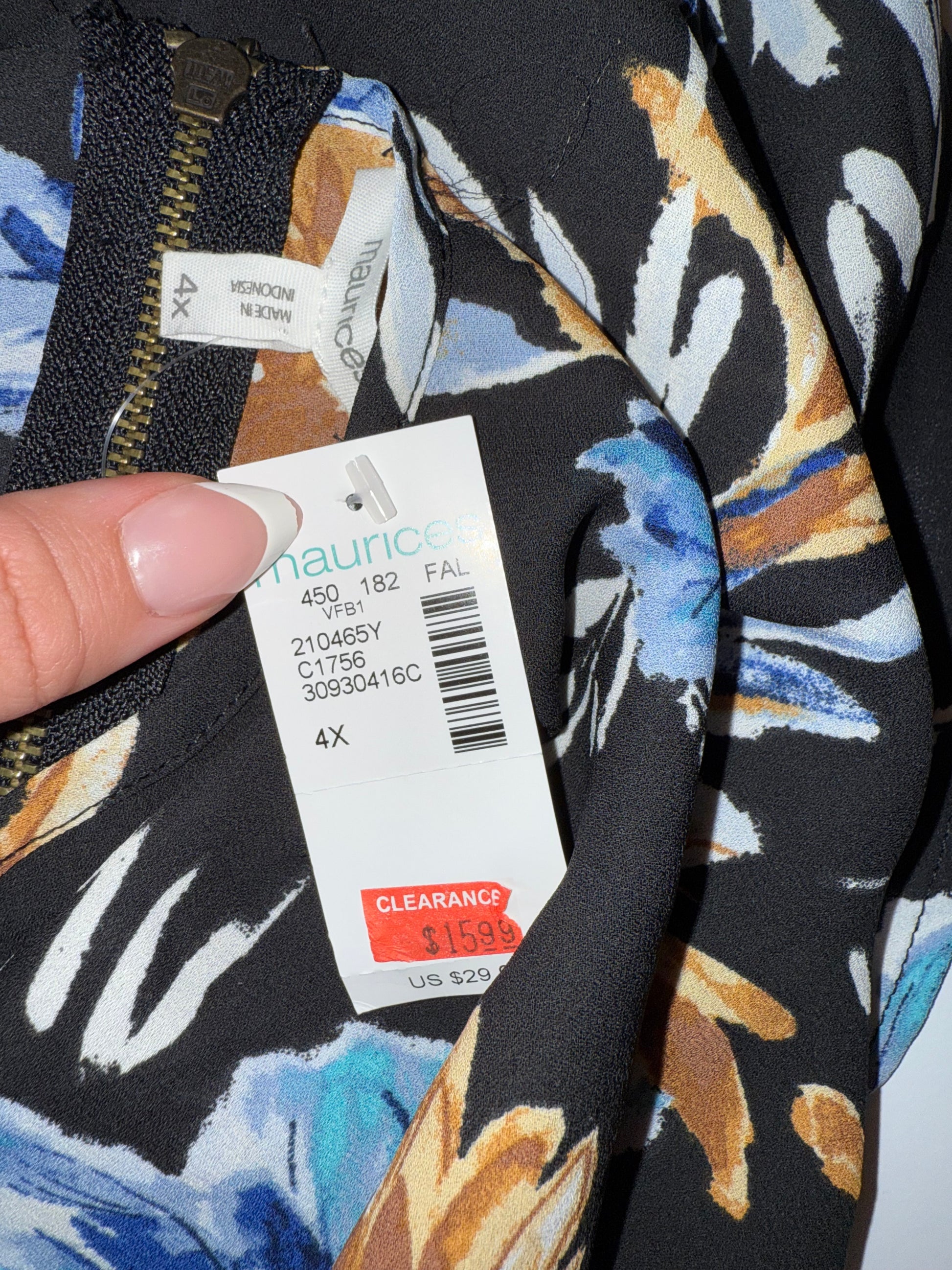 NWT Maurices (4X) Brand New Black Floral Flowy Blouse with Zipped Back