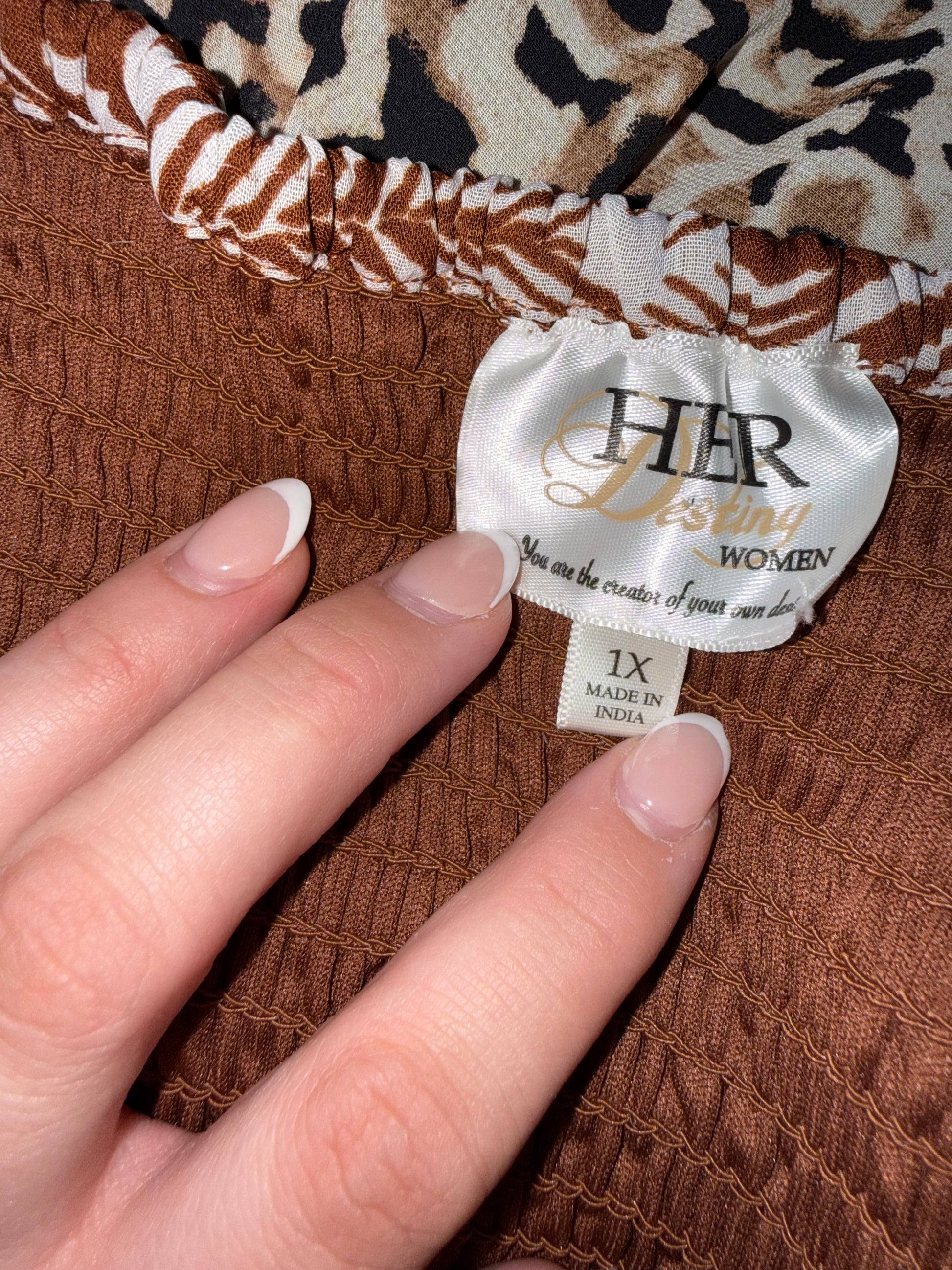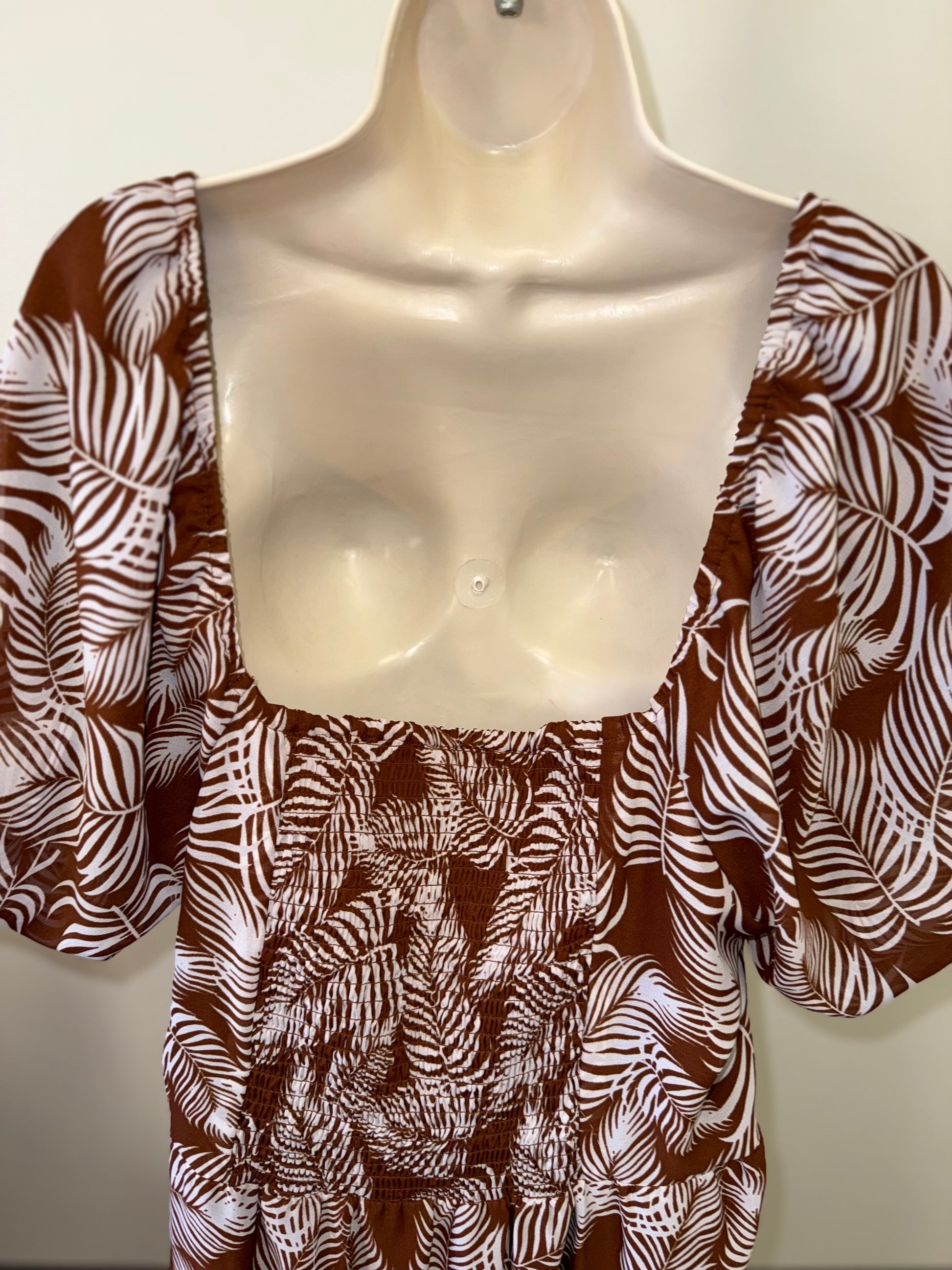 HER Destiny (1X) Brown & White Leaf Pattern Maxi Dress