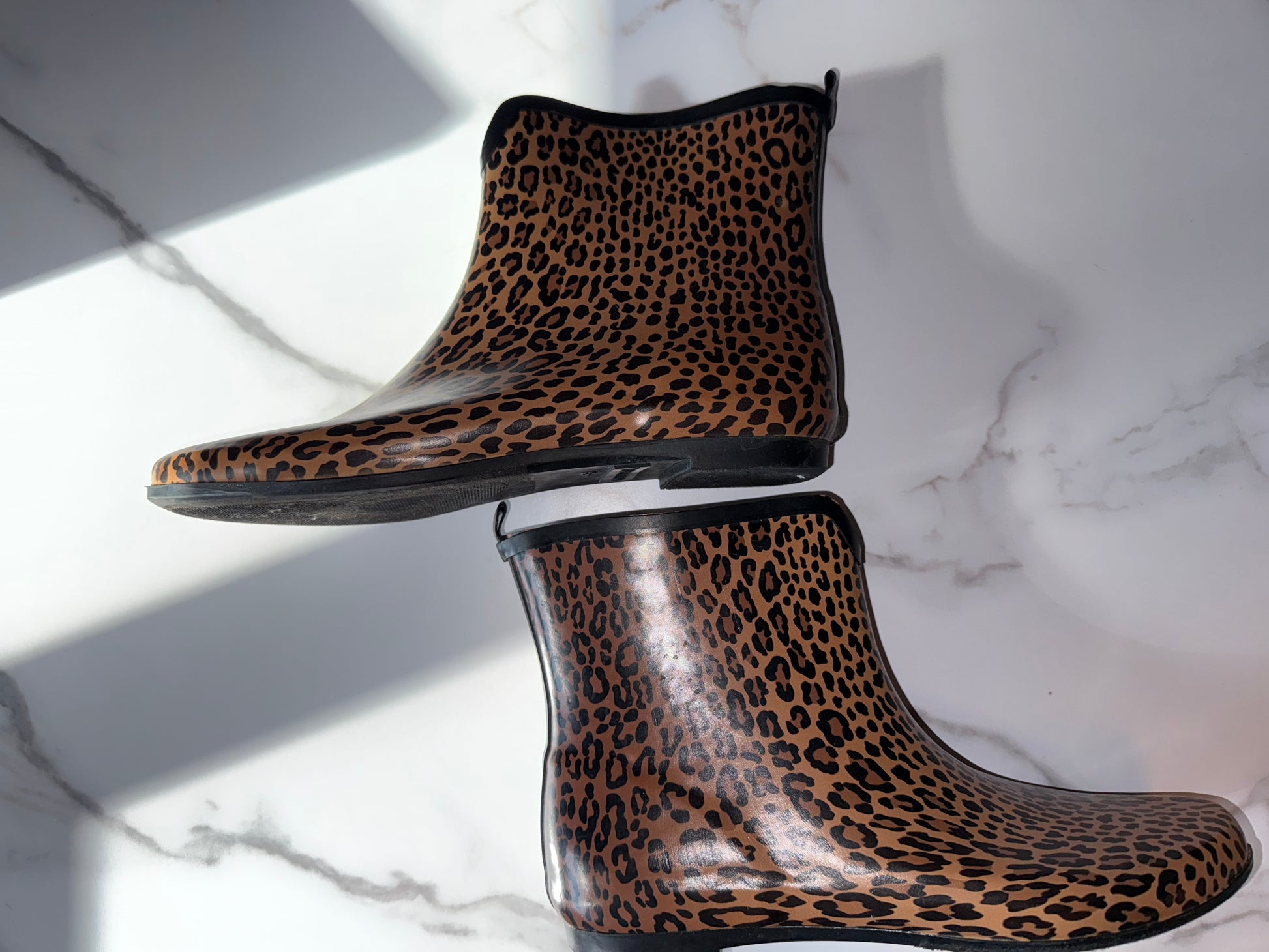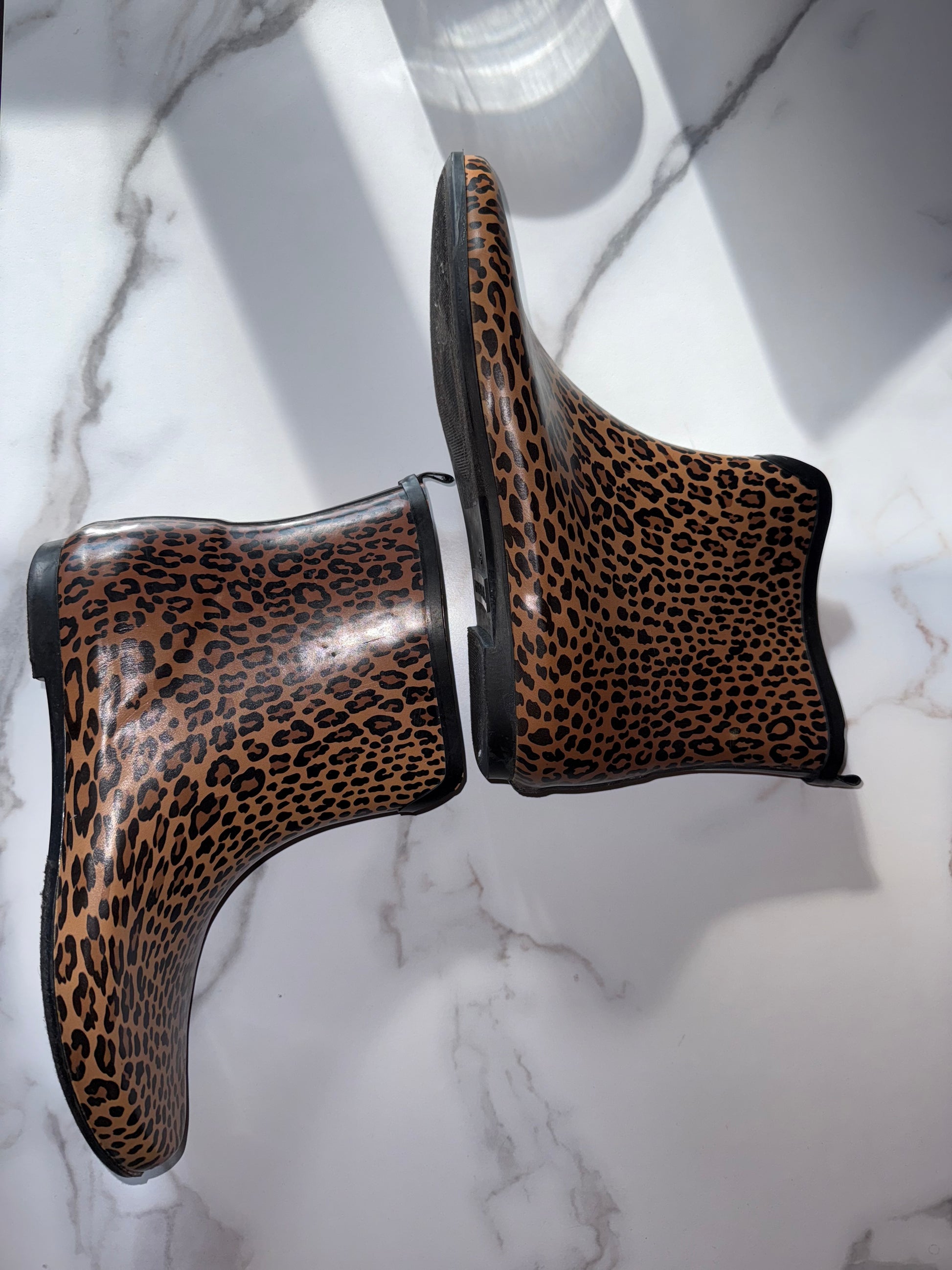 Merona (8) Neutral Cheetah Print Ankle Rain Boots