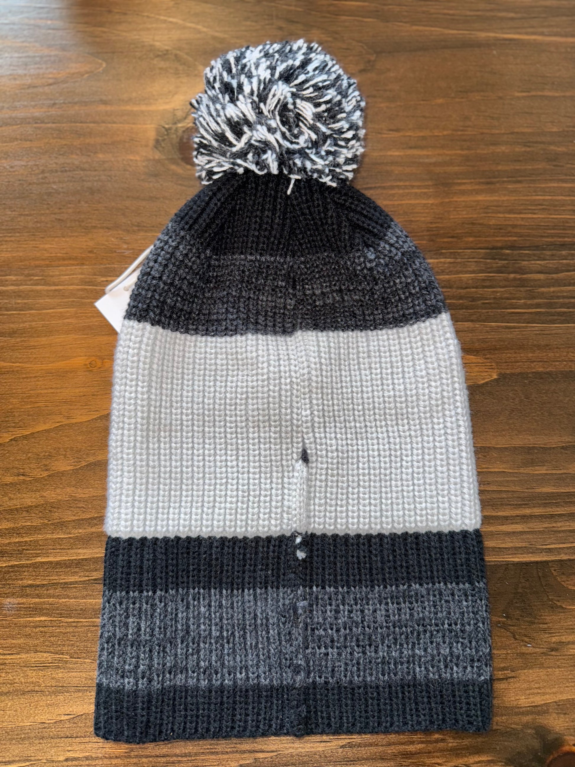 NWT Obermeyer (OS) Brand New Striped Black & Grey Oakland Pom Knit Beanie