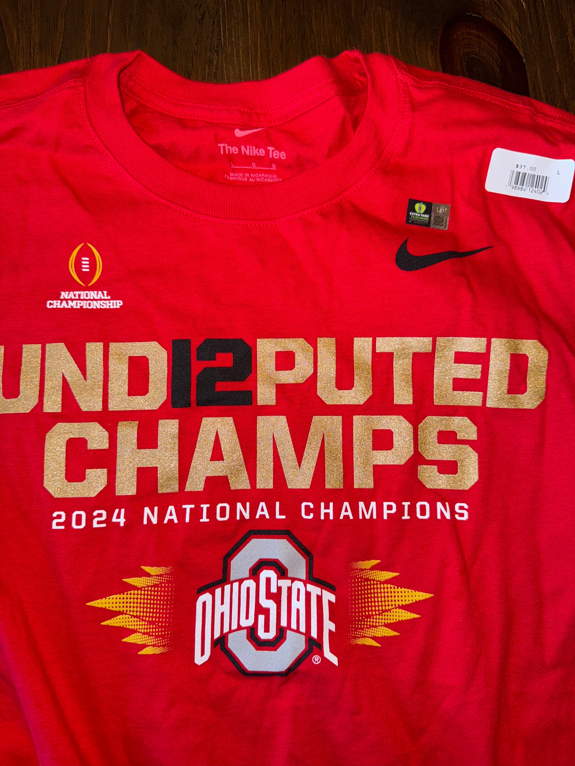 NWT Nike (L) Brand New Red 'Und12Puted 2024 National Champs' Red Ohio State Tee