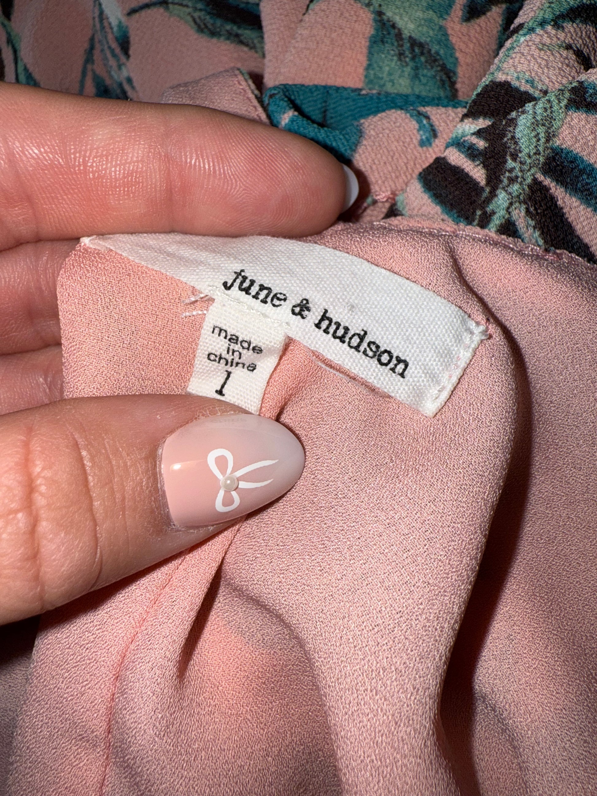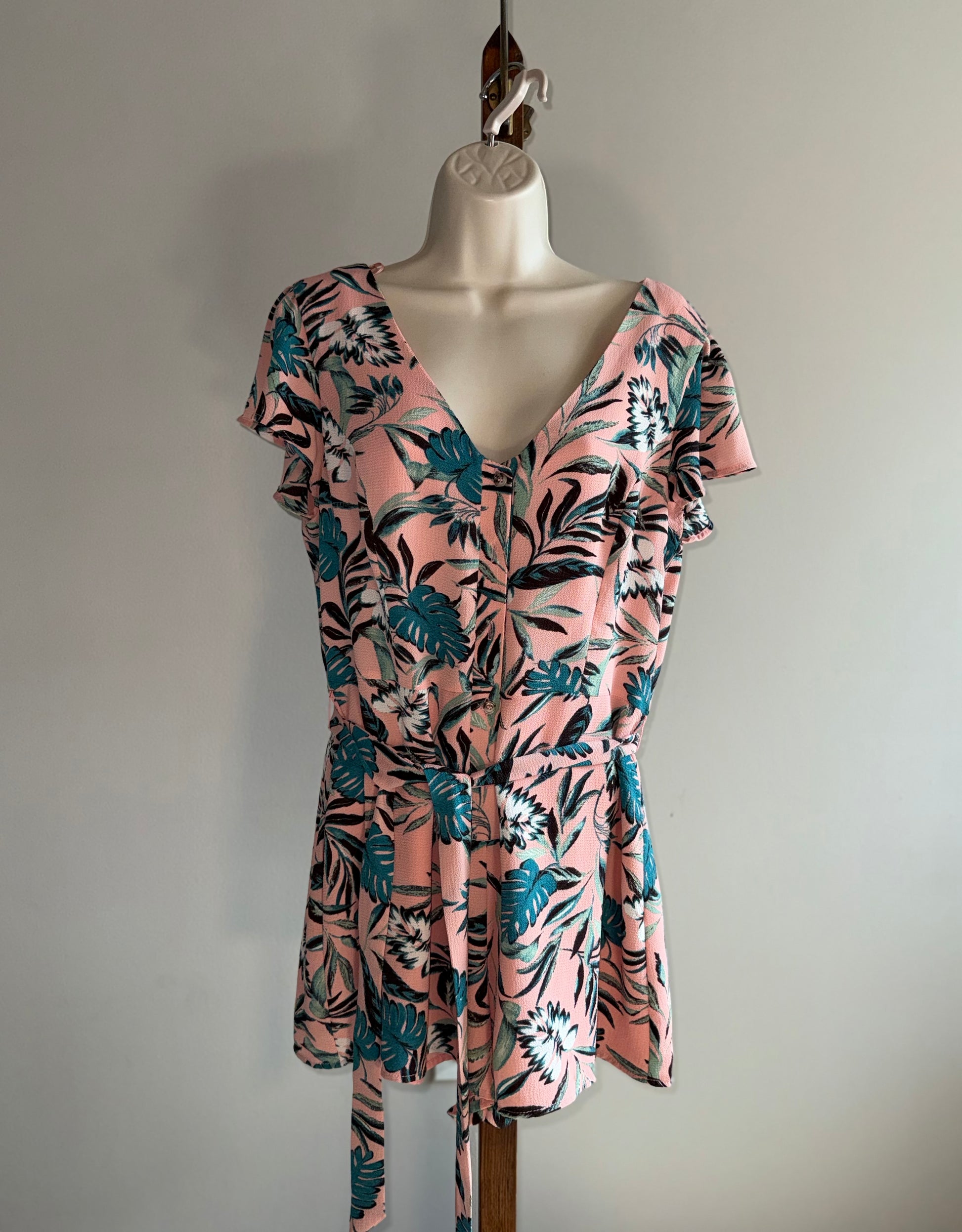 June & Hudson (Large) Pink Floral Leaf Pattern Short Sleeve Buttoned Romper