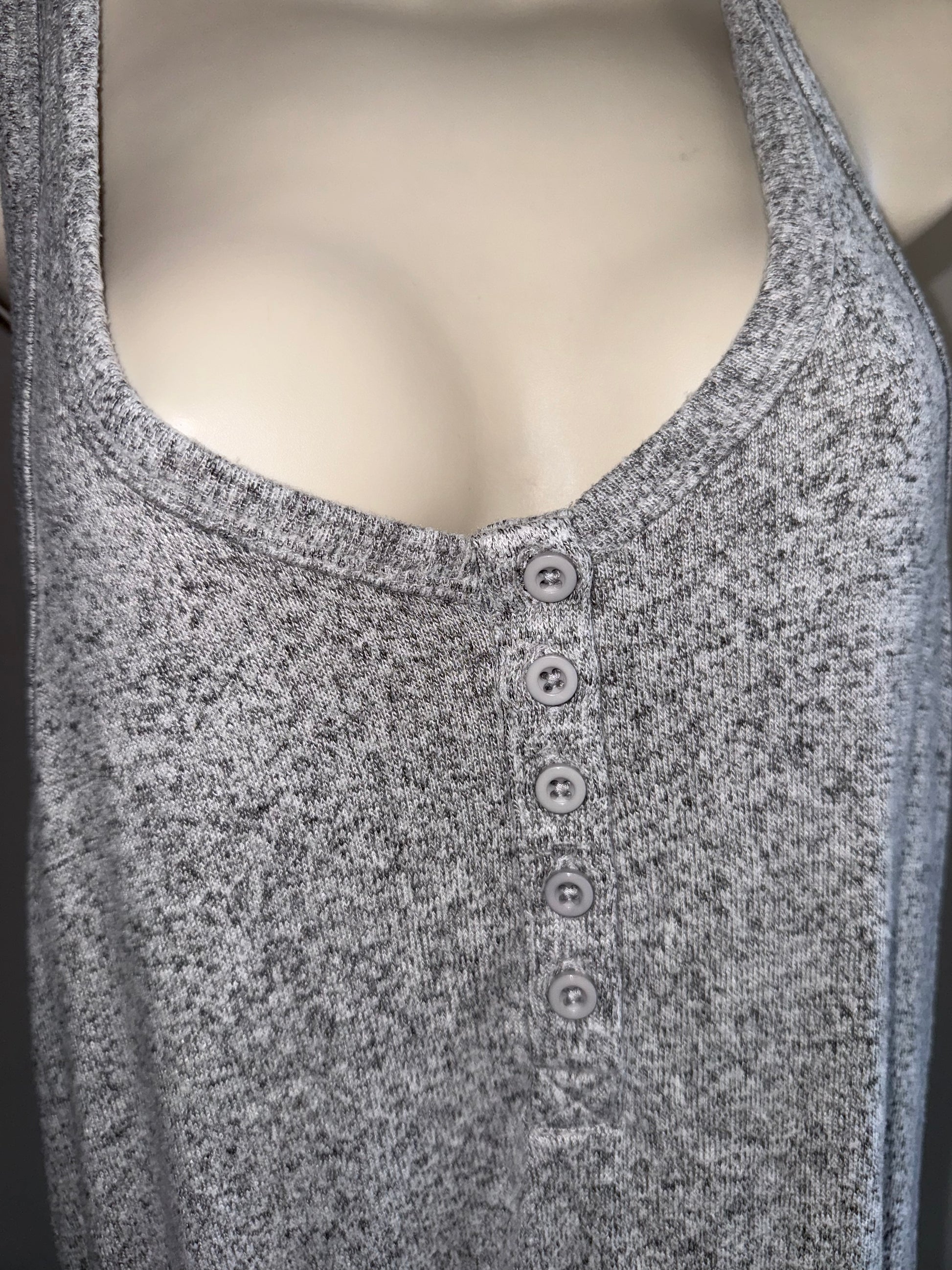 Serra (Medium) Grey V-Neck 3/4 Button Up Sleeveless Romper