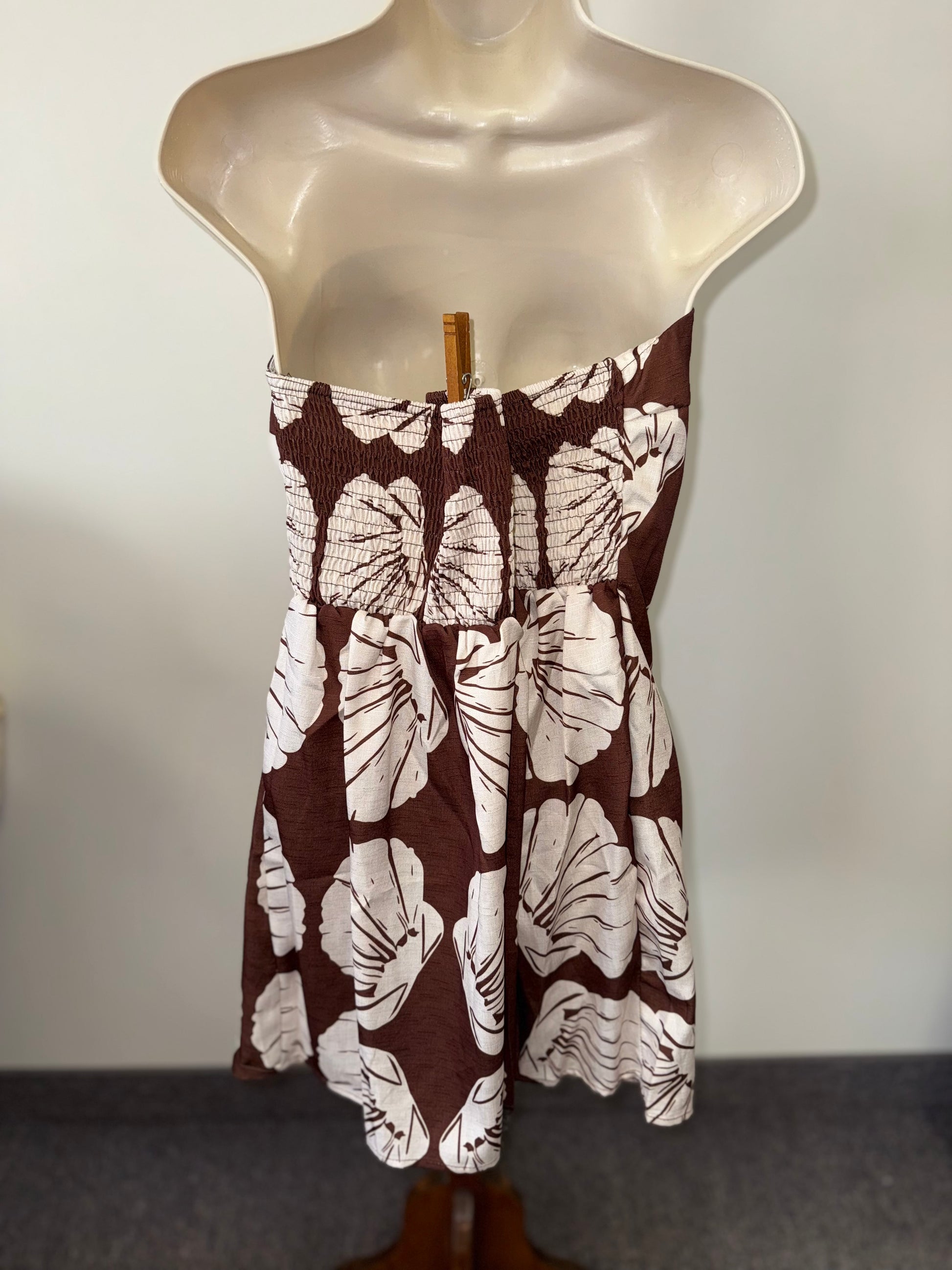 (XL) Brown and White Sea Shell Pattern Strapless Midi Dress
