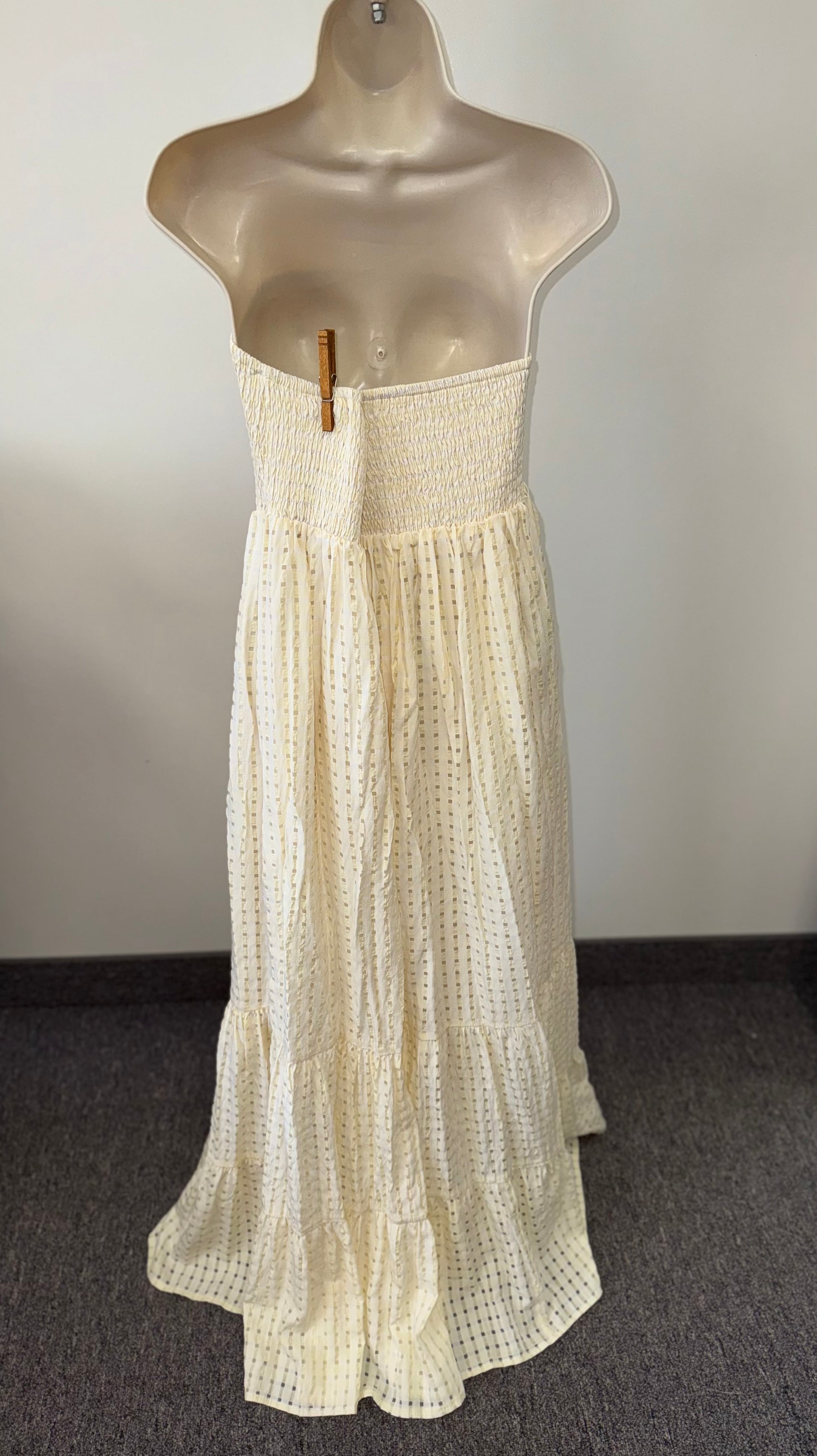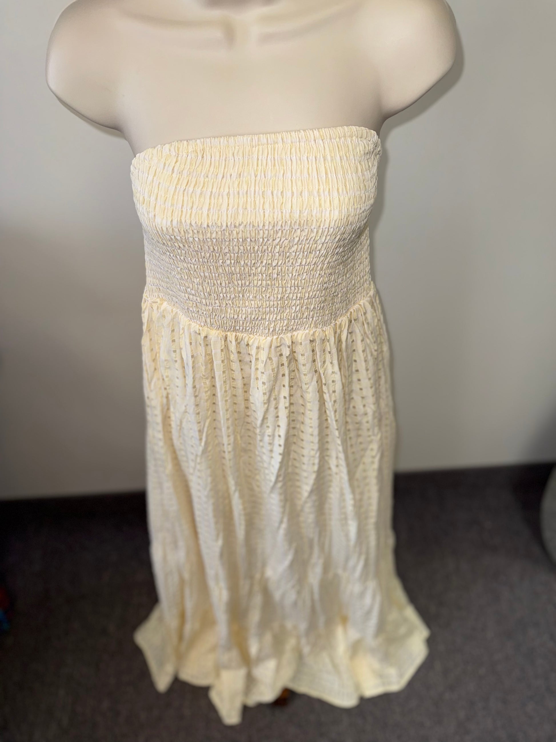 (0XL) Yellow Strapless Flowy Maxi Dress