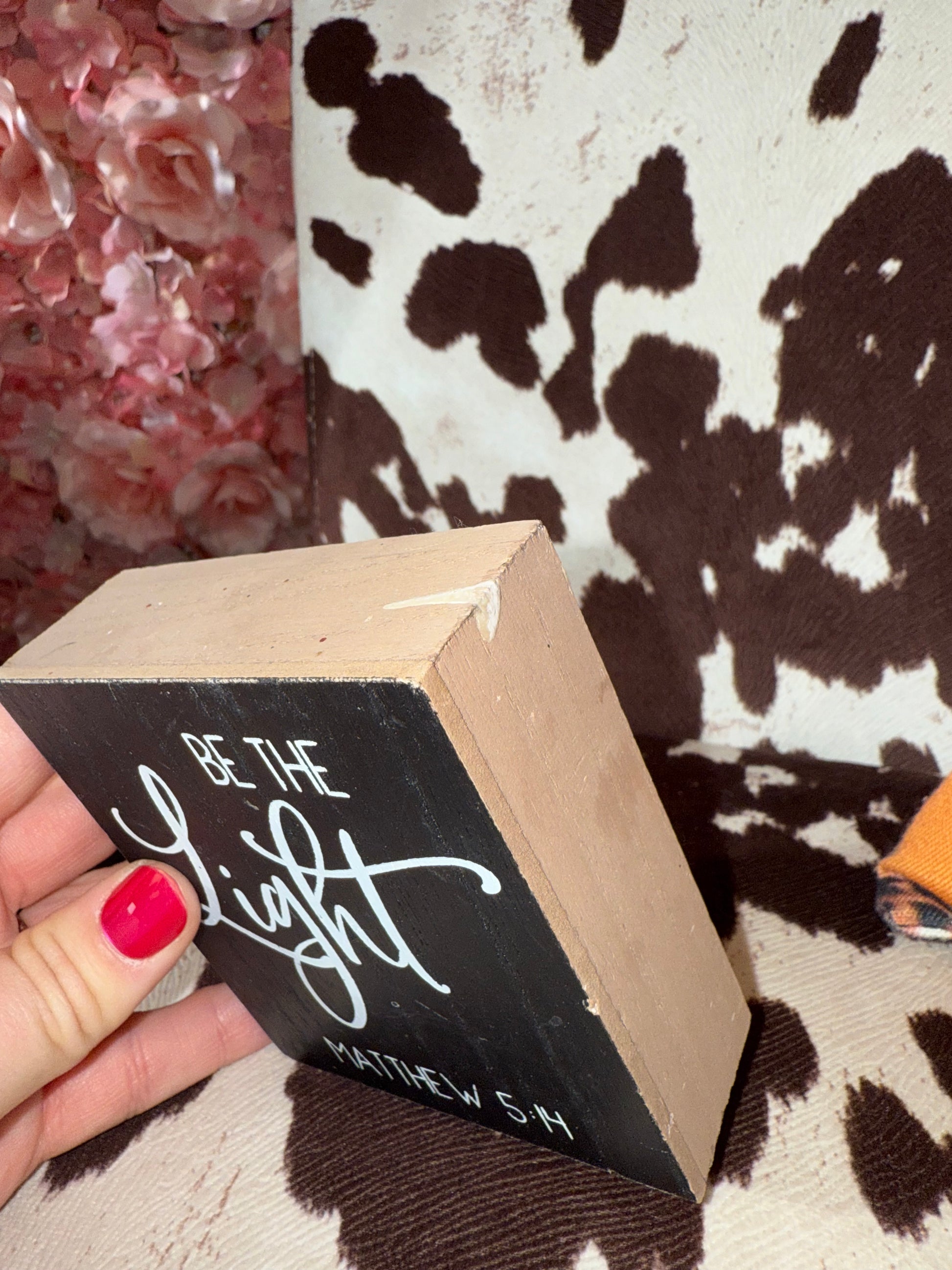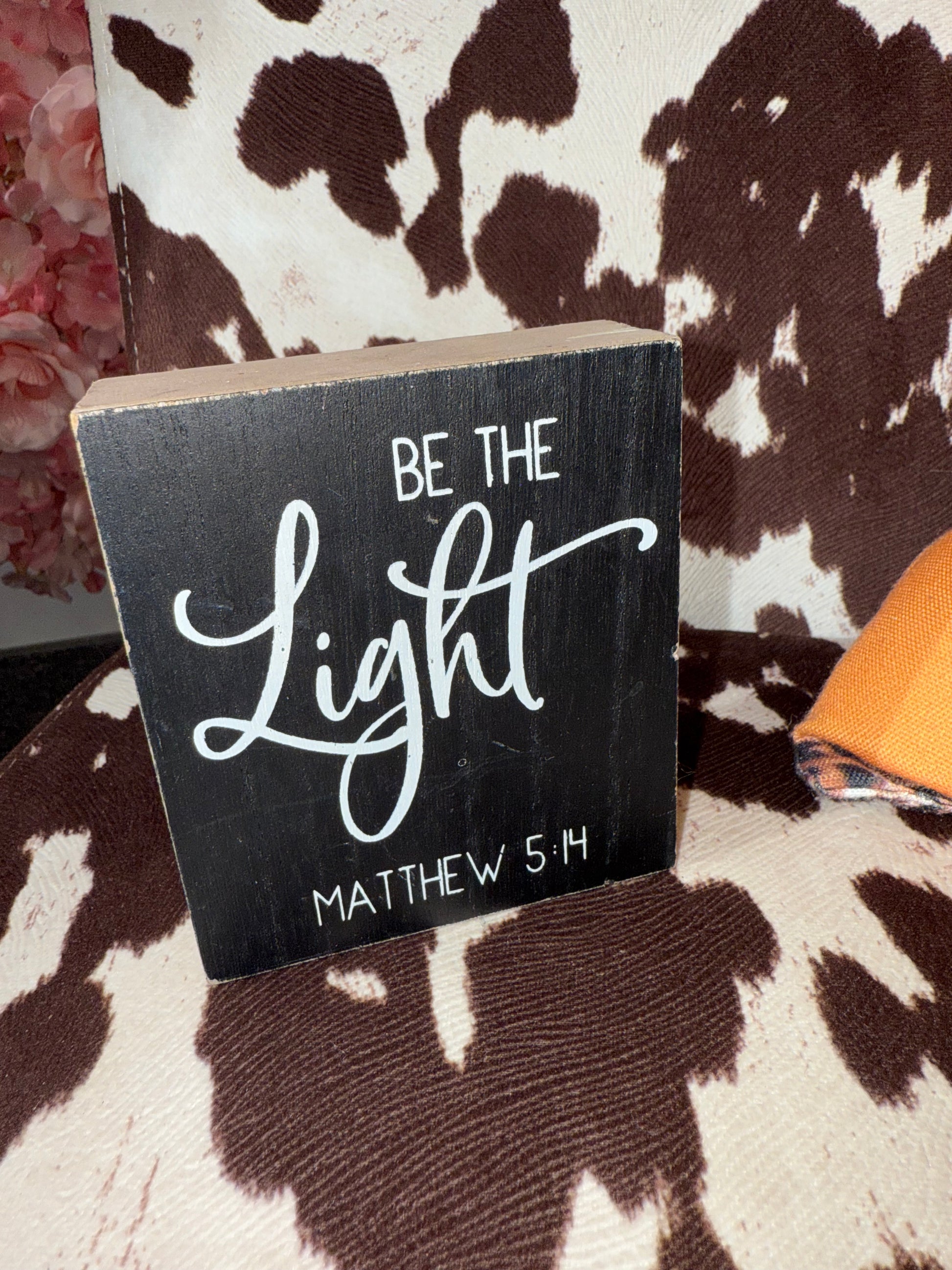 'Be The Light Matthew 5:14' Bible Verse Wooden Block Sign