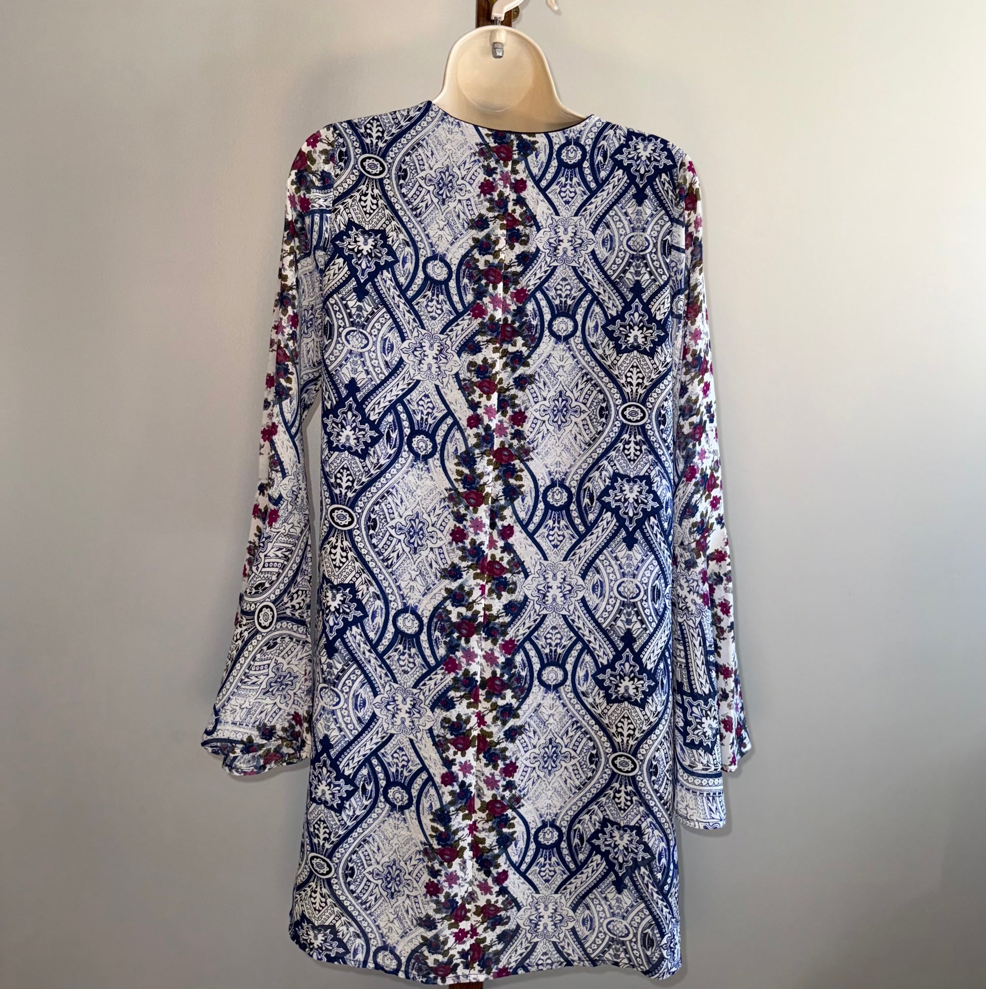 Speechless (Small) Blue Pattern Flowy Long Sleeve Midi Dress