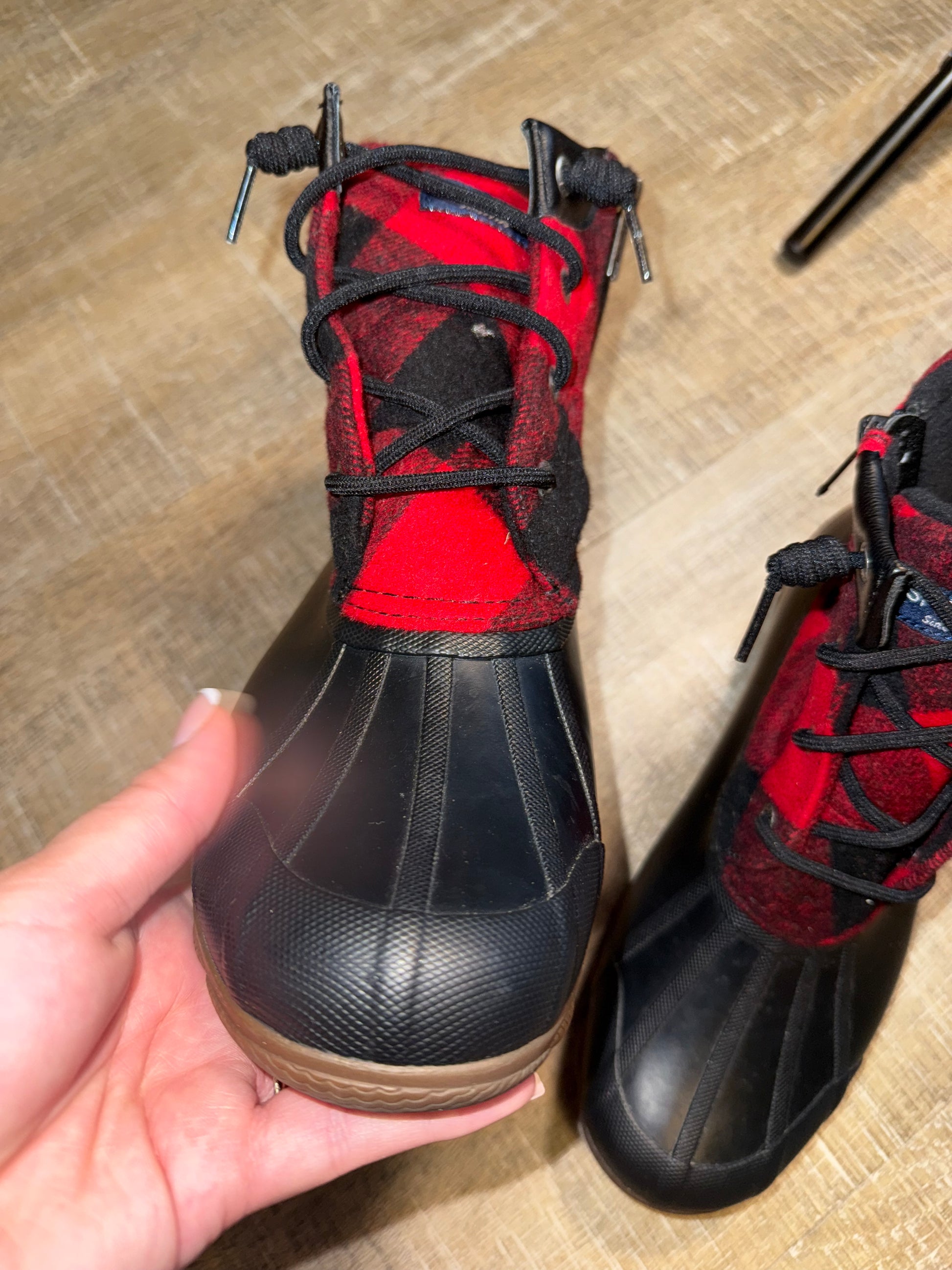 Sperry (7.5) Red Plaid Winter Ankle Boots