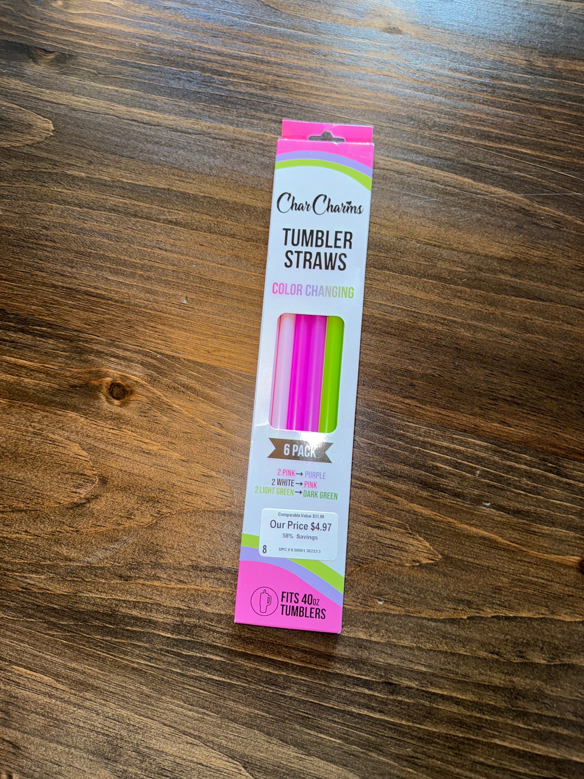 Char Charms (6 Pack) Brand New Color Changing Colorful Tumbler Straws