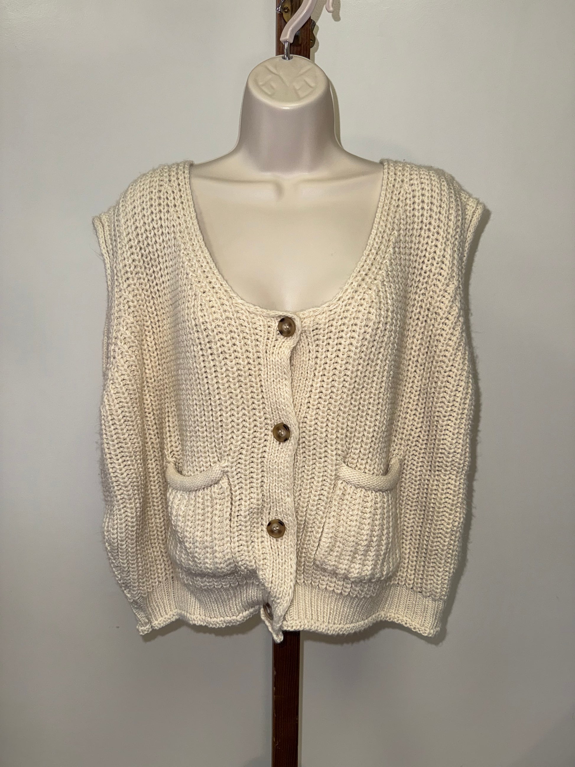 BaeVely (3XL) Cream Knit Sleeveless Button Up Sweater Vest