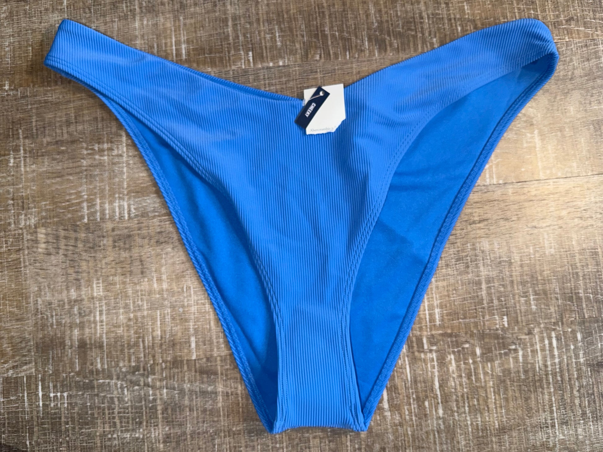 NWT Abercrombie & Fitch (XL) Brand New Blue Ribbed Cheeky Bikini Bottoms