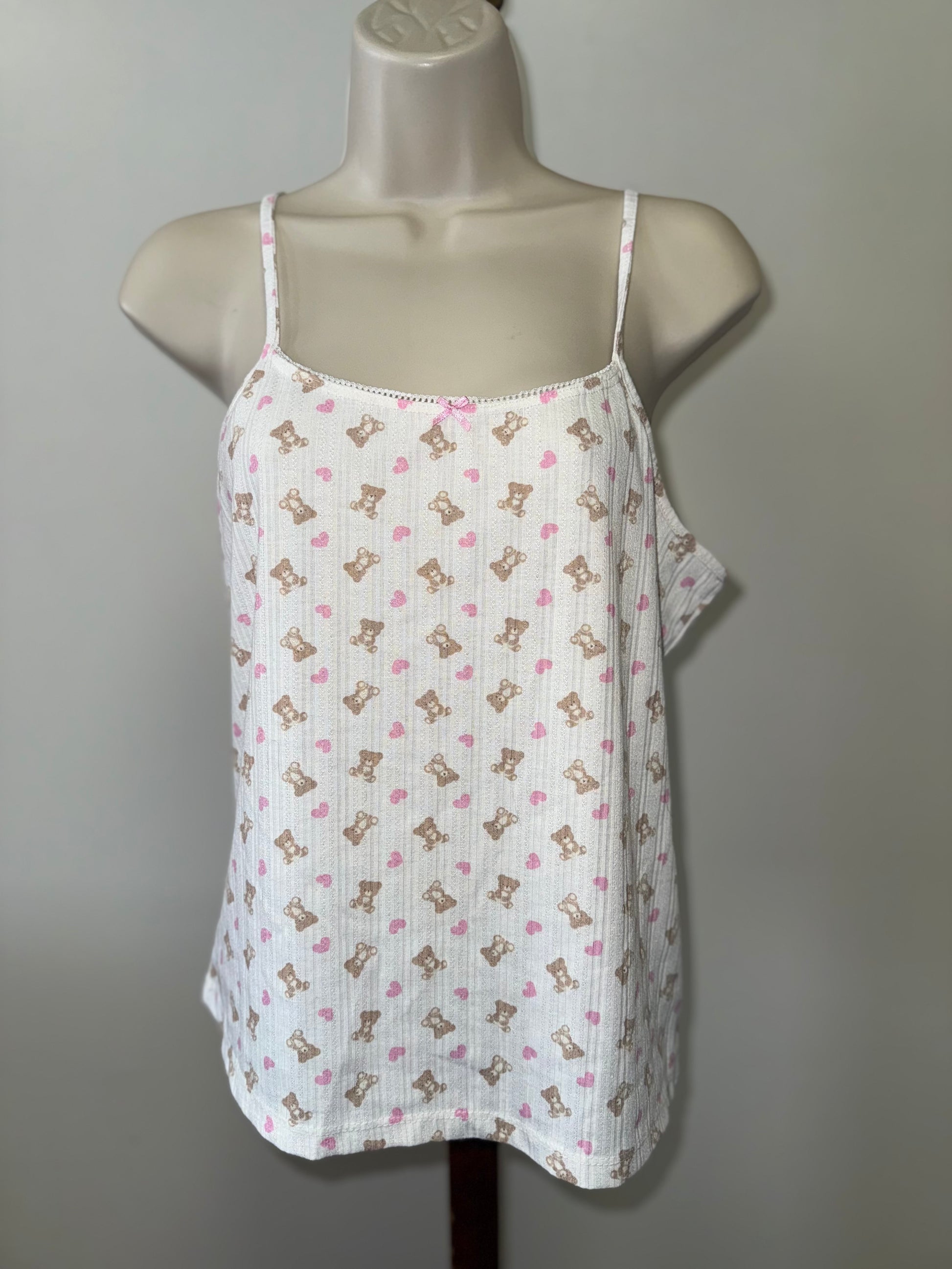 Better Together (Medium) White Tank with Teddy Bears and Heart Pattern PJ Top