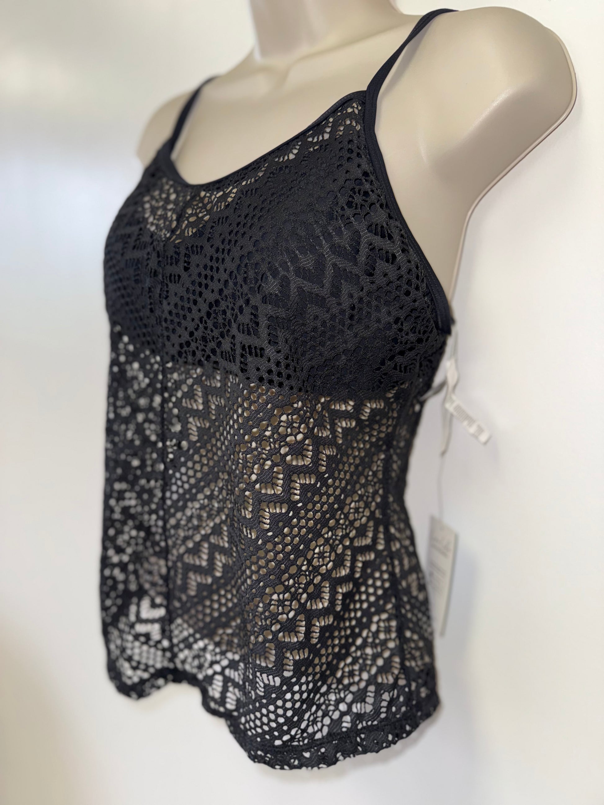 NWT CUPSHE (Small) Brand New Full Coverage Black Lace Tankini Swim Top