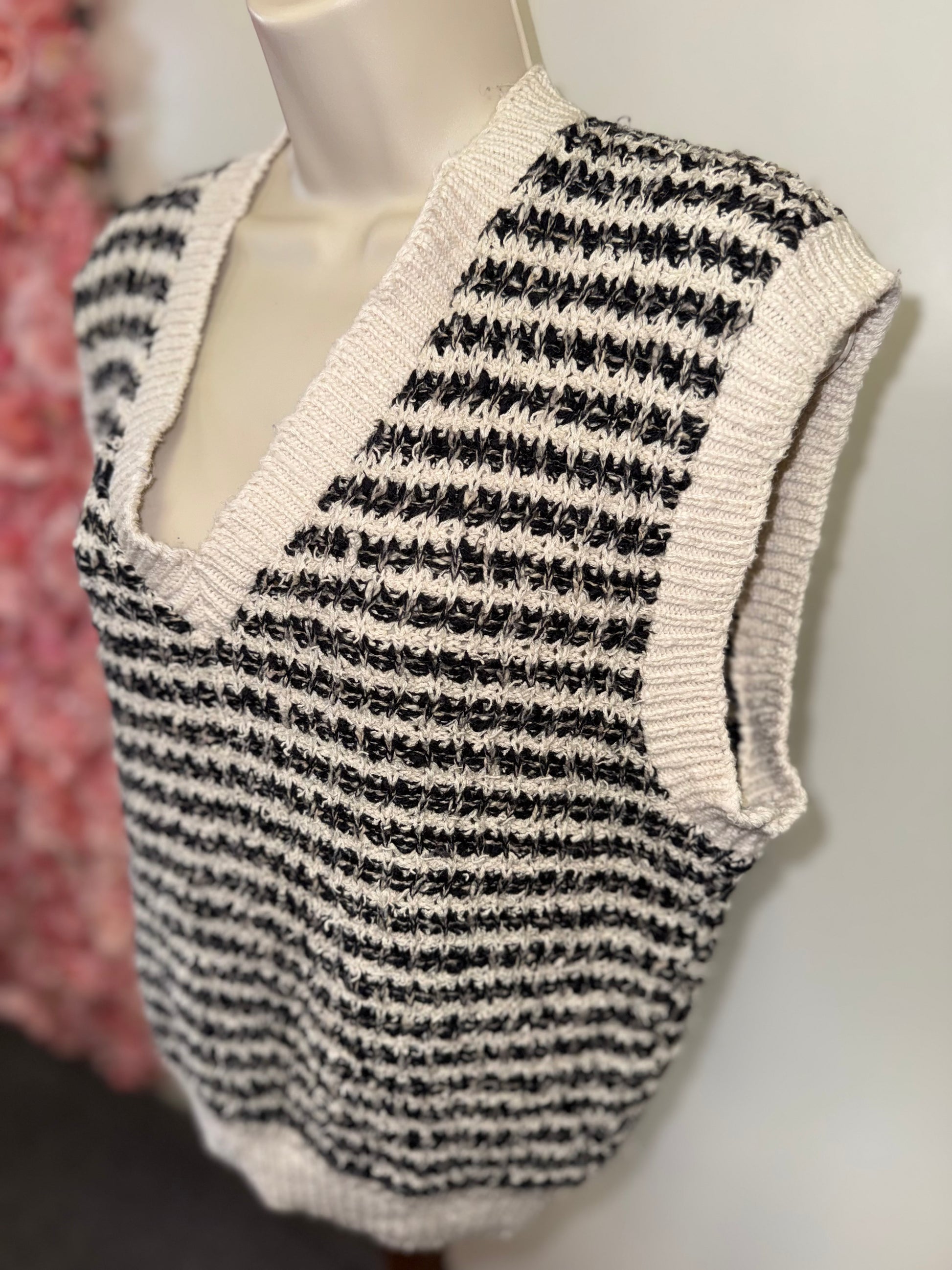 Tony Lambert (Large) Vintage Neutral Striped V-Neck Sleeveless Knit Sweater Vest