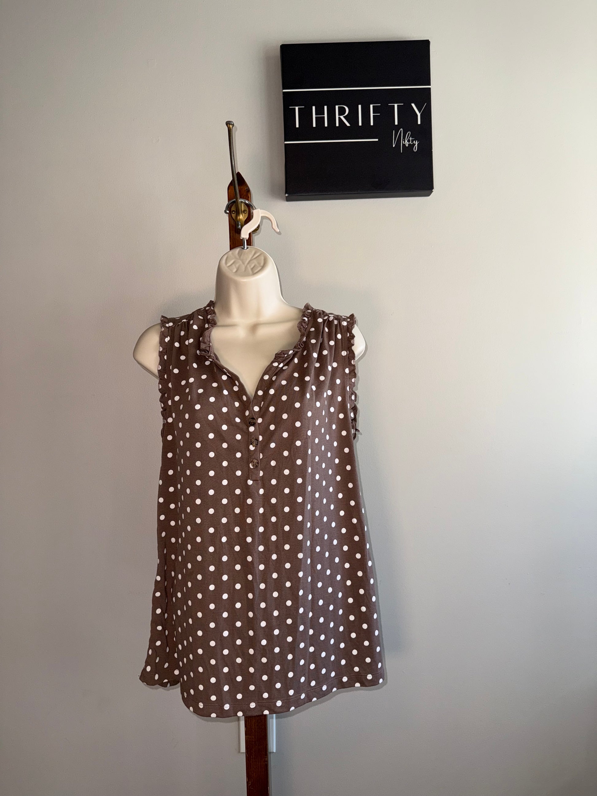 Lascana Venus (Large) Brown 3/4 Tank Top with White Polka Dotted Pattern