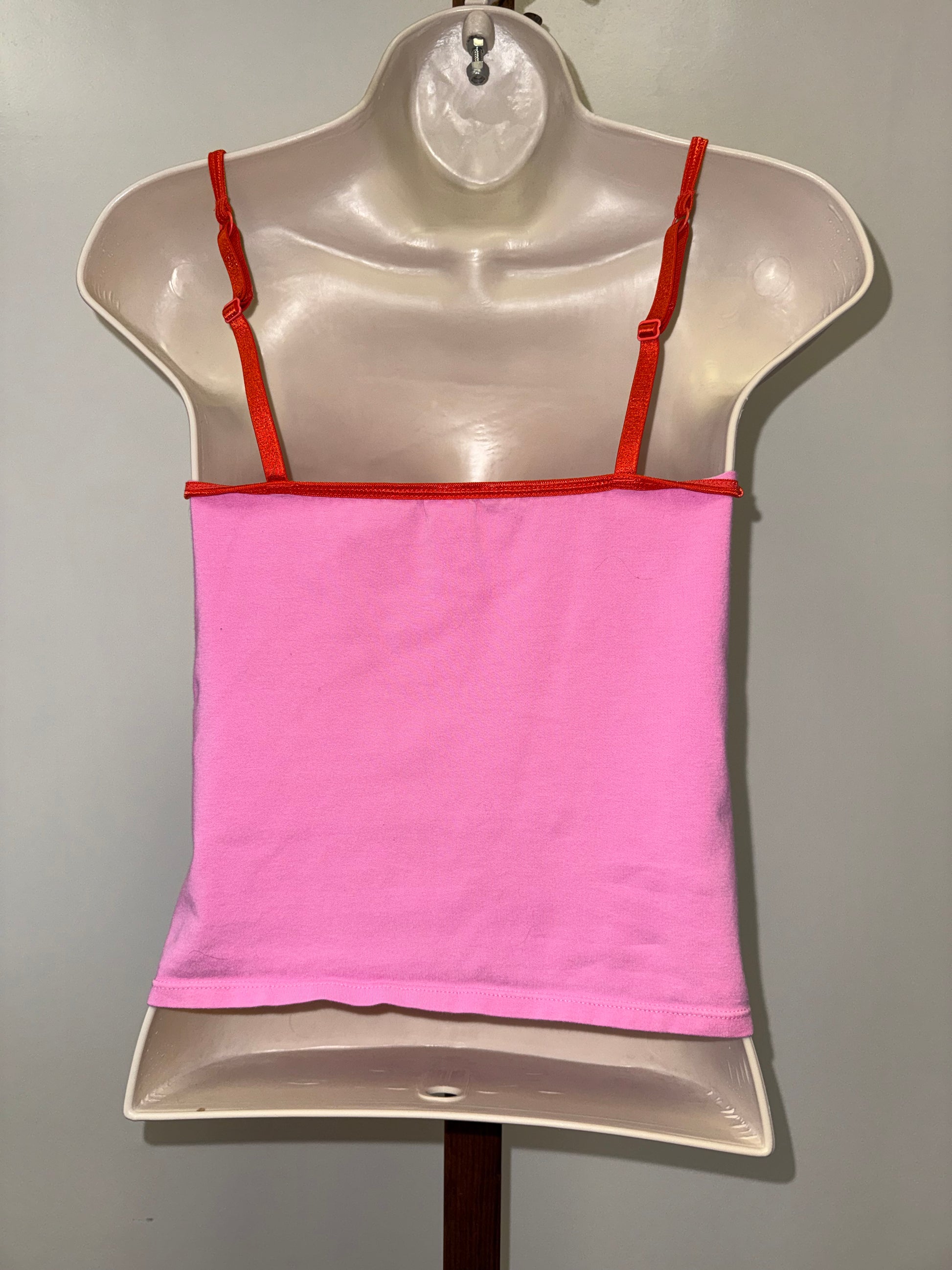 PINK Victoria's Secret (Small) Pink and Red Lace Cropped Sleepwear Tank Top