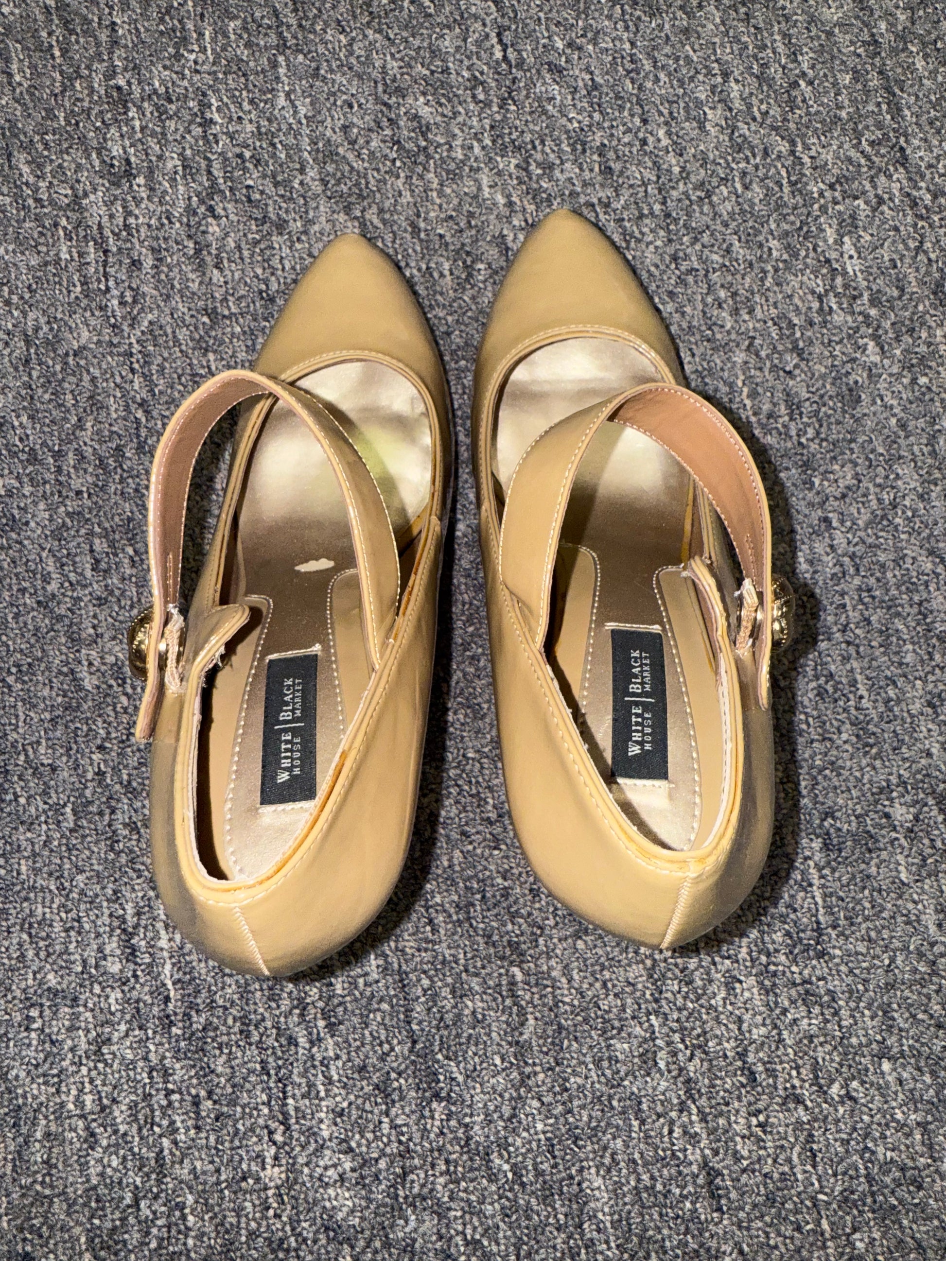 White House Black Market (7 1/2) Tan High Heels with Buckle Strap